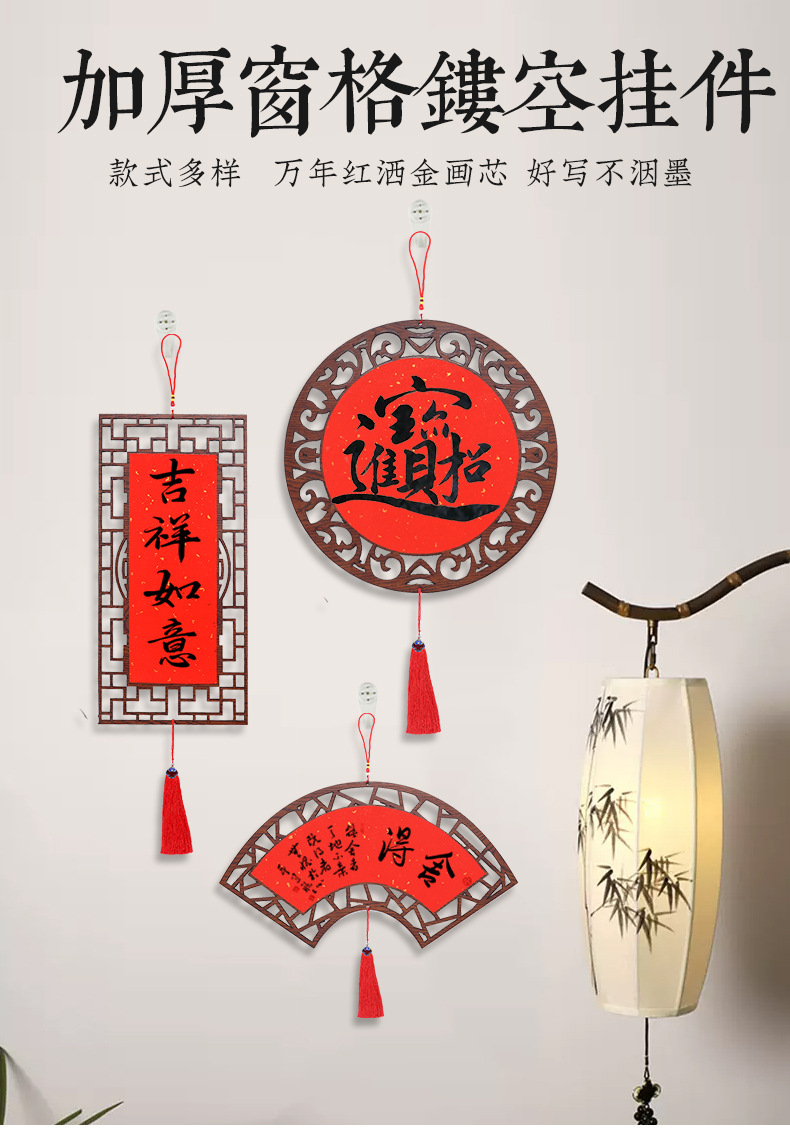金榜木质镂空万年红雕刻宣纸中国风仿古窗花挂件书法文创装饰福卡