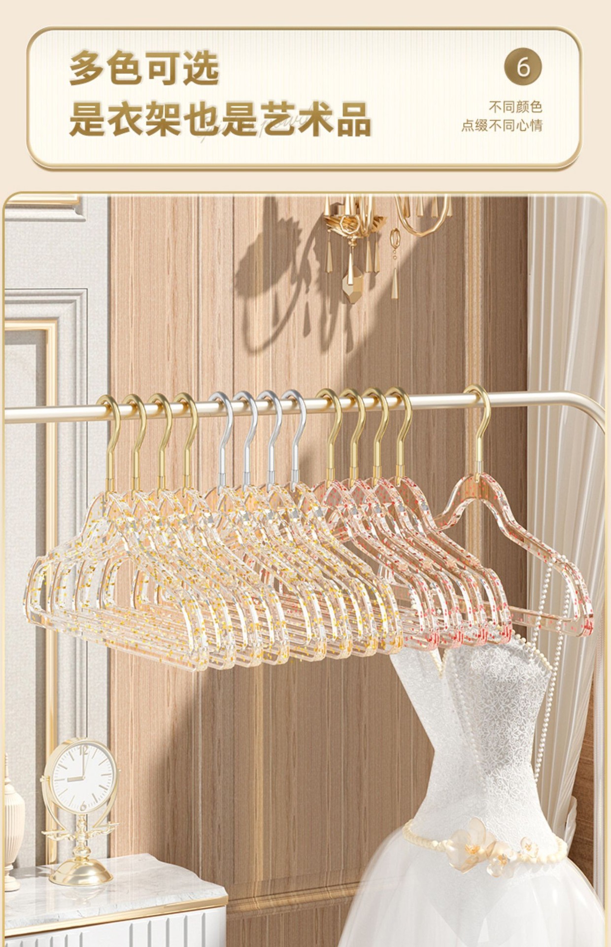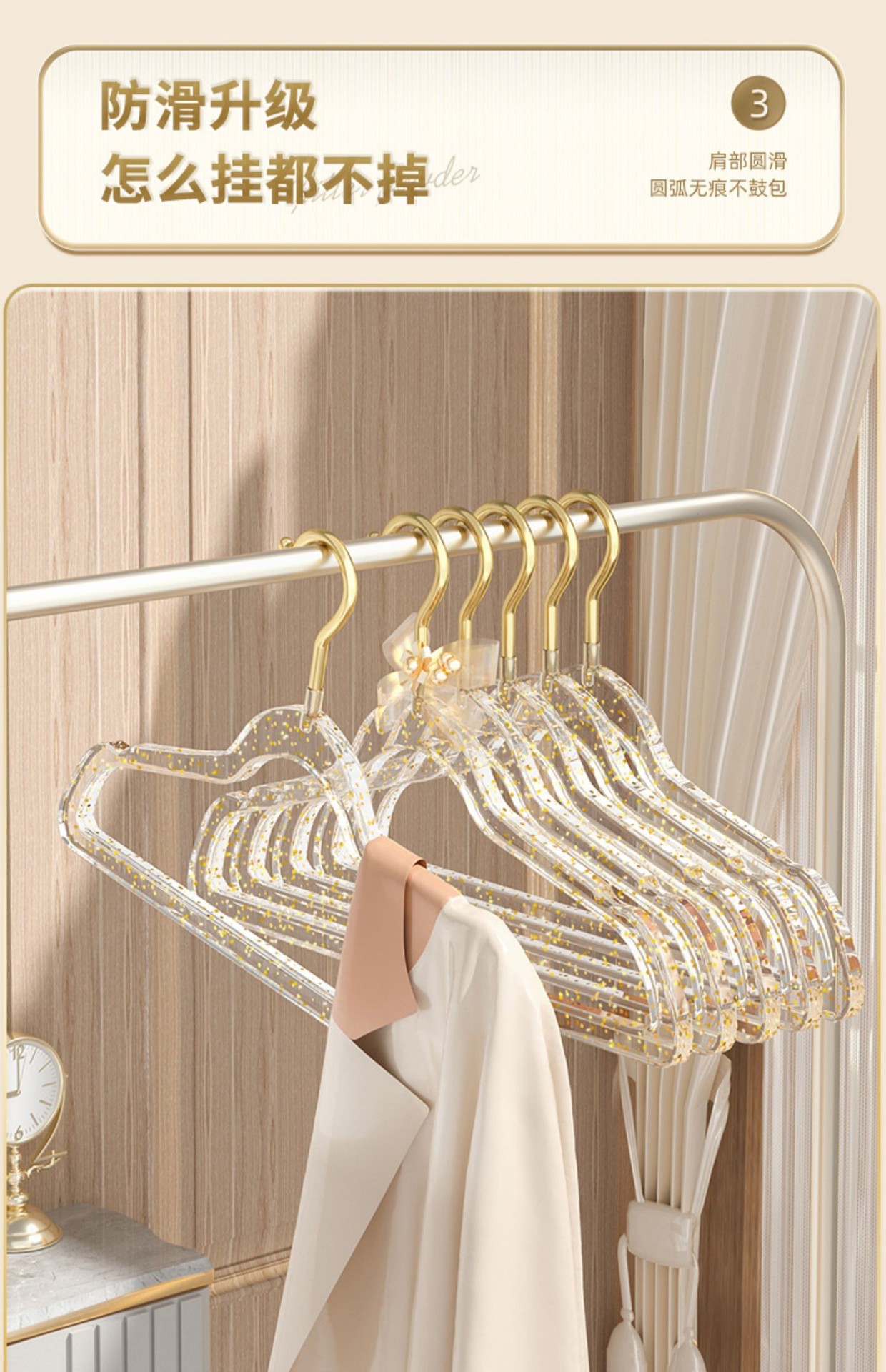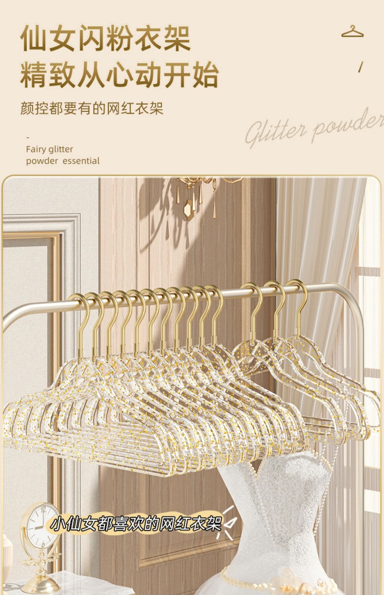 网红亚克力可爱水晶衣架女装无痕家用透明塑料服装店金粉晾衣架