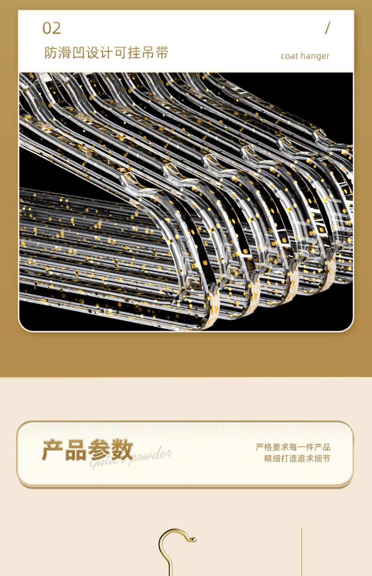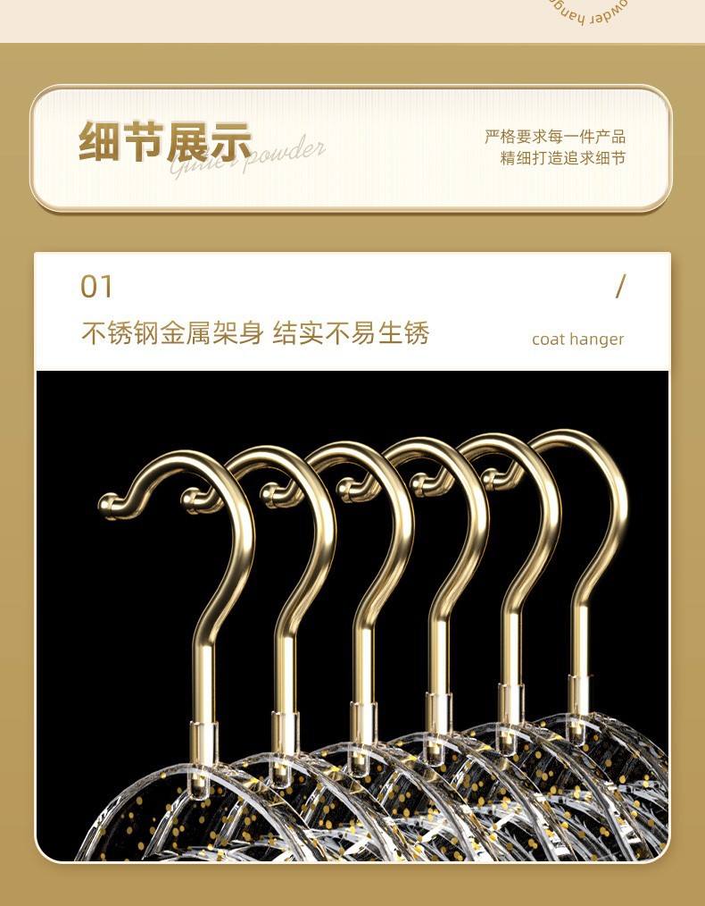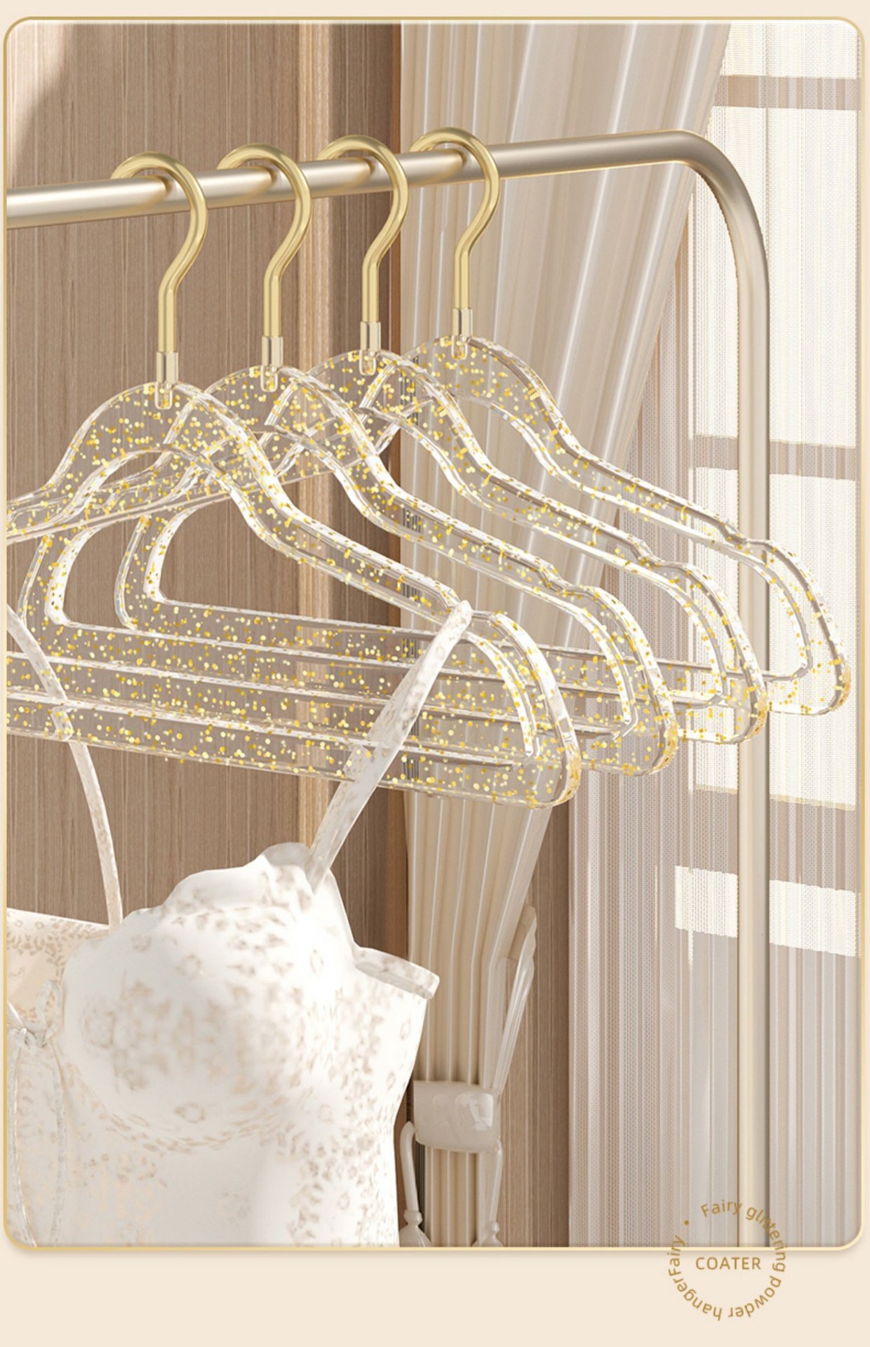 网红亚克力可爱水晶衣架女装无痕家用透明塑料服装店金粉晾衣架