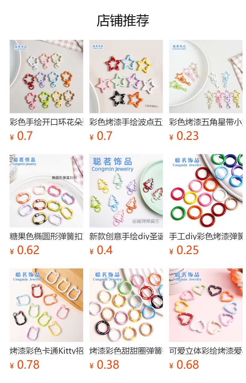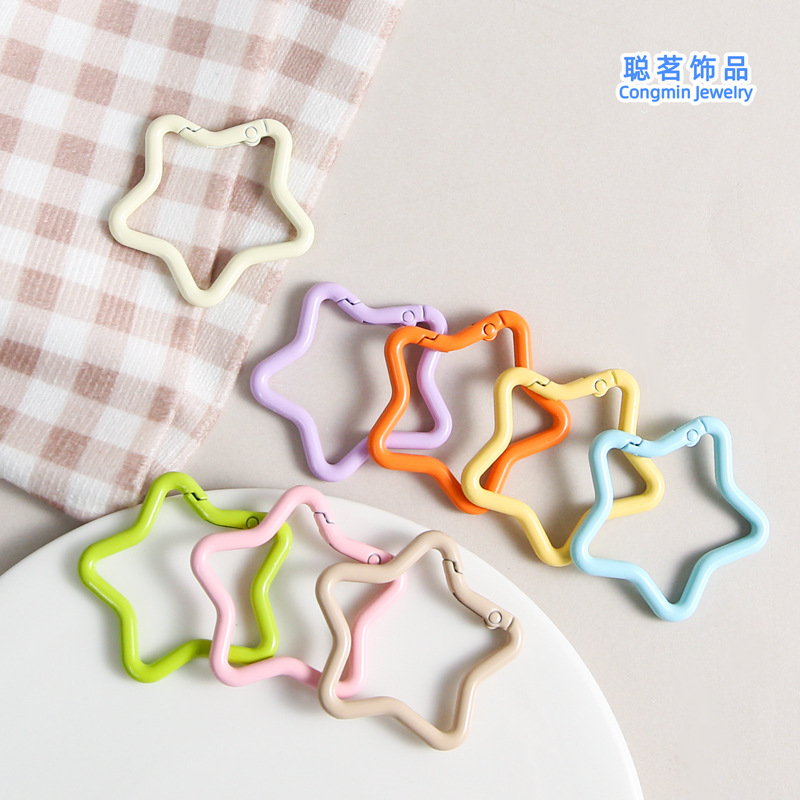 彩色五角星弹簧扣饰品diy钥匙扣配件简约百搭挂件开口环配饰批发