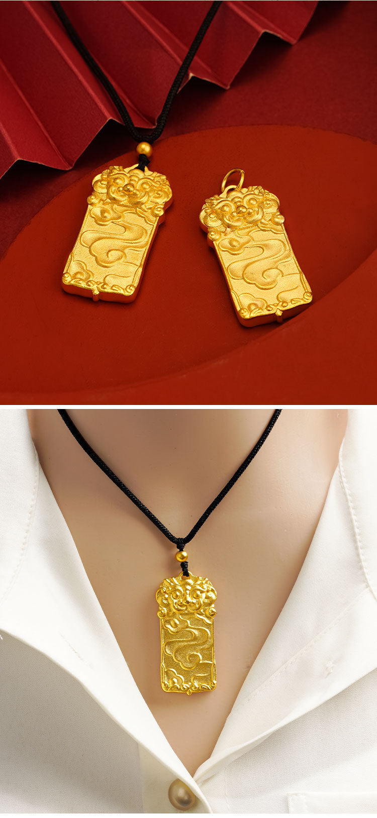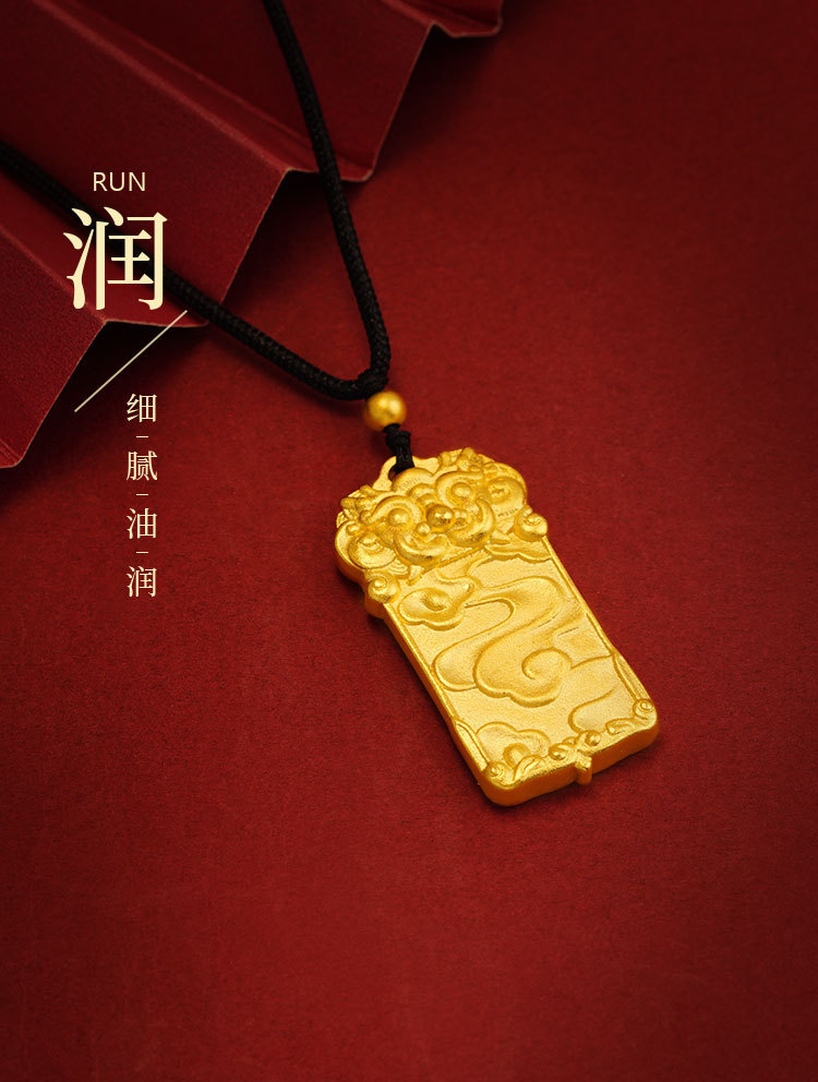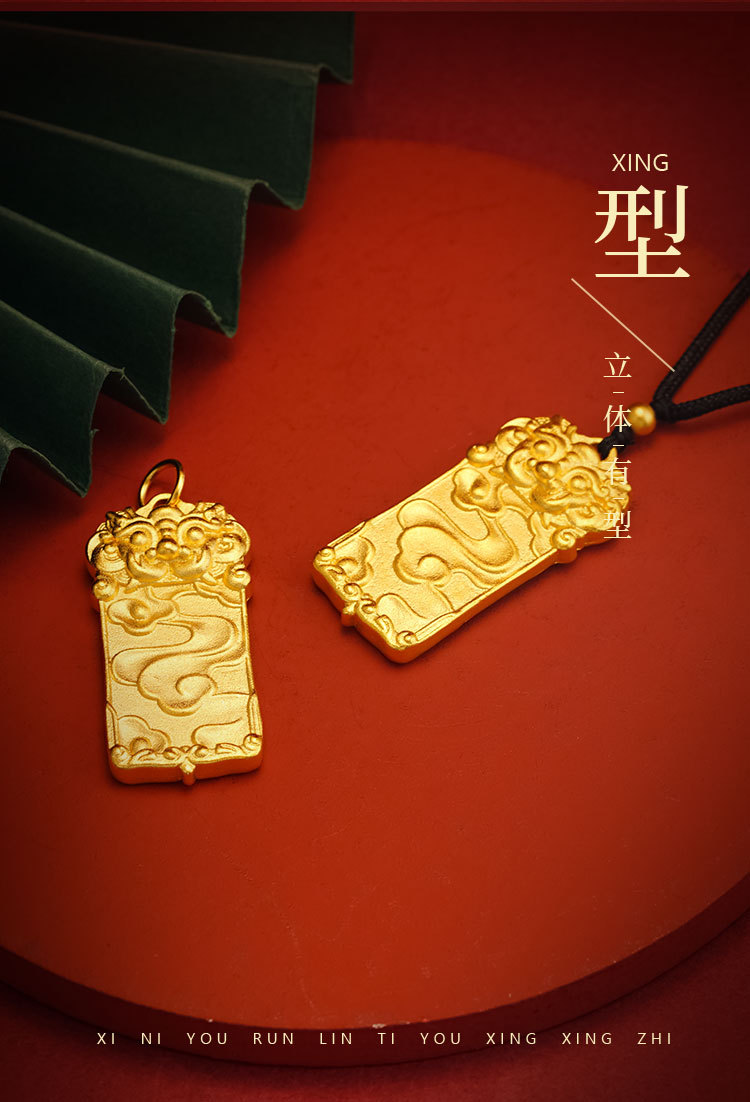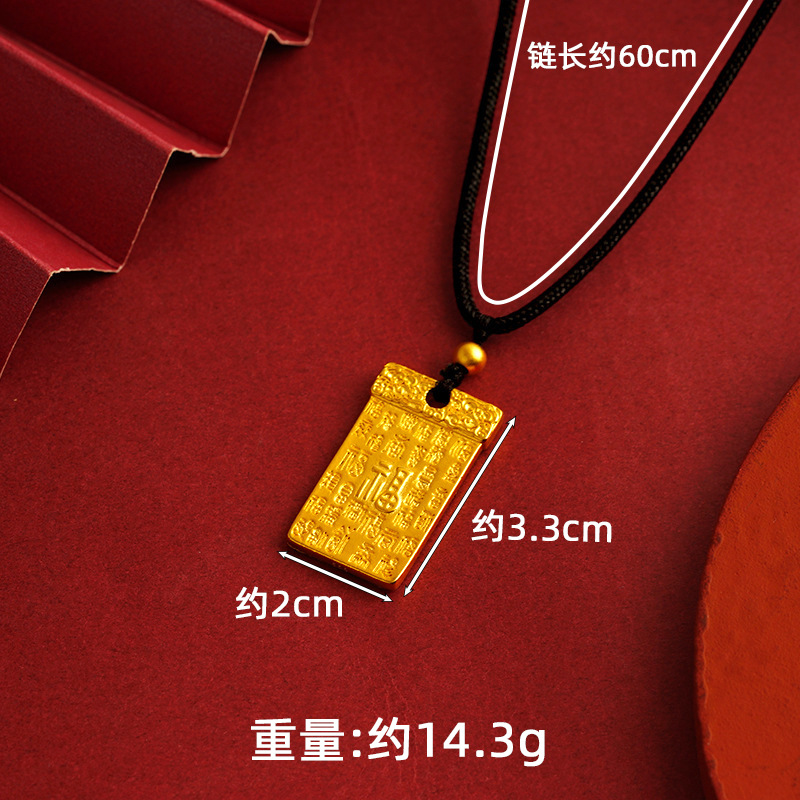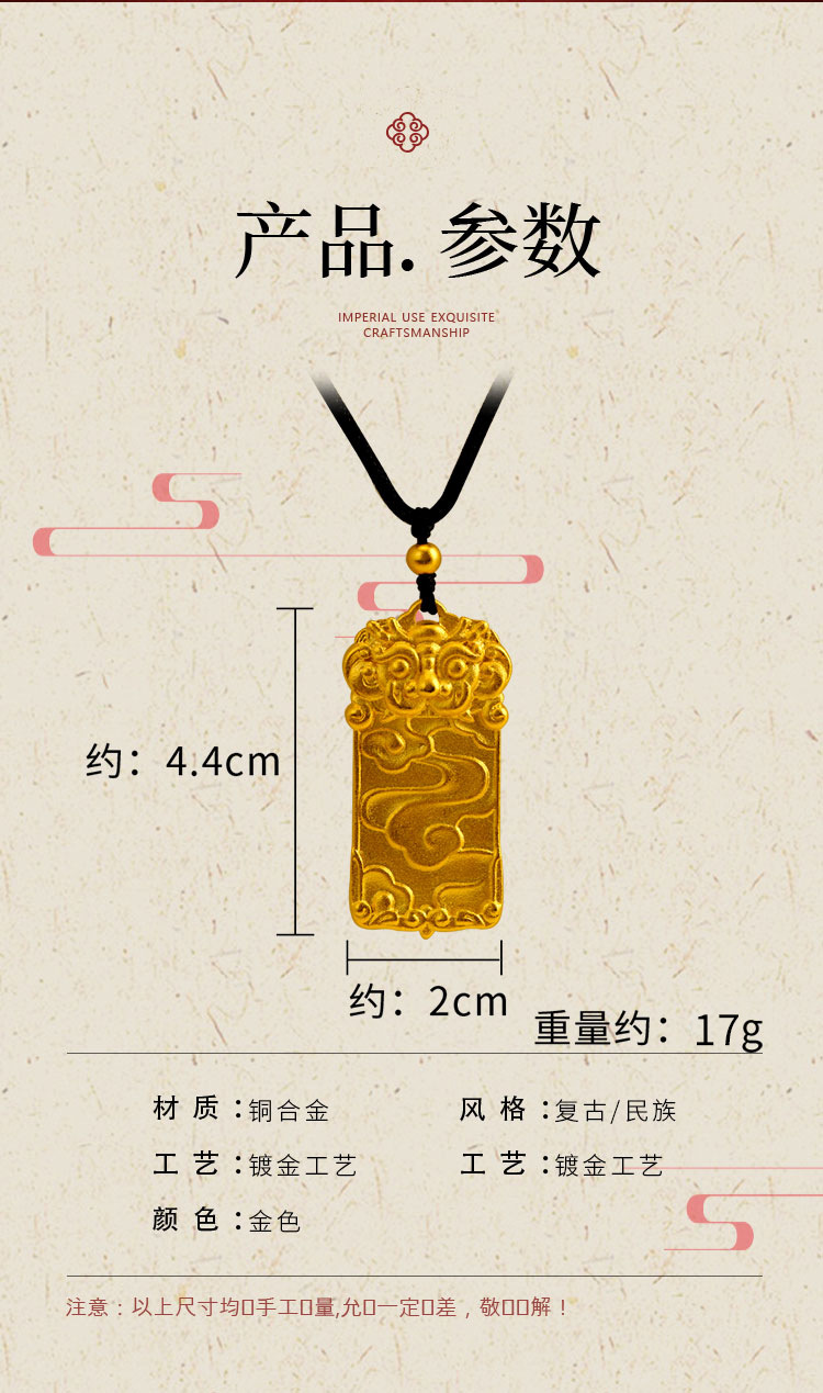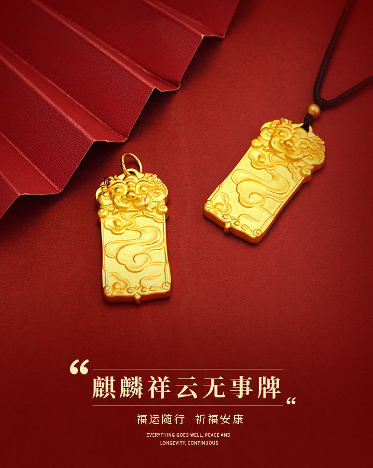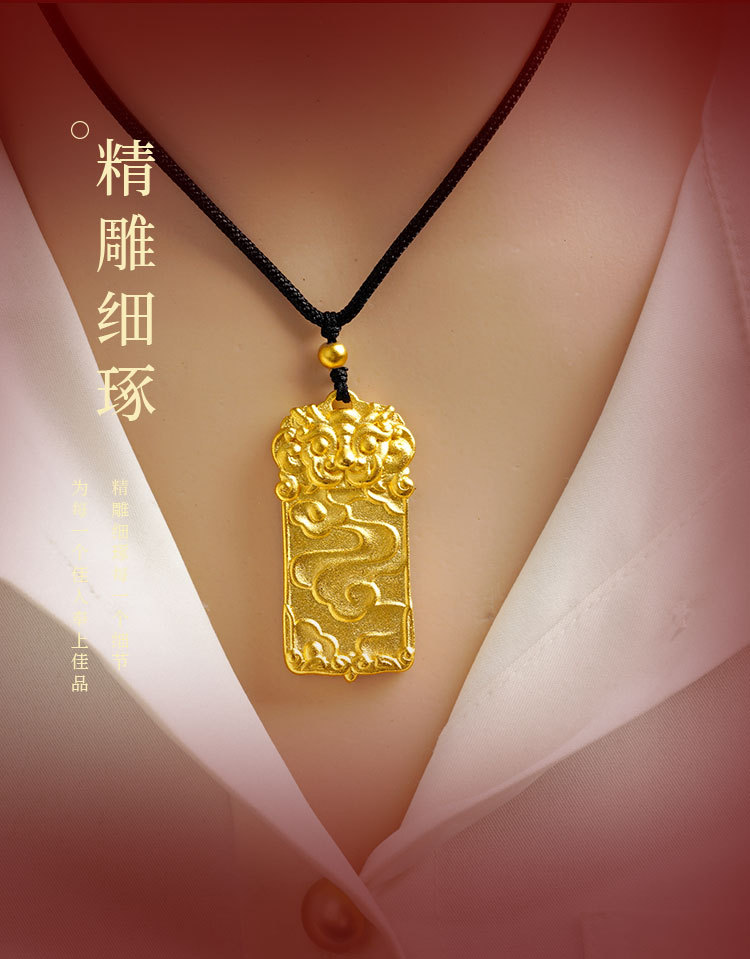 沙金麒麟吊坠无事牌久不掉色铜合金瑞兽项链子男女情侣款仿真饰品