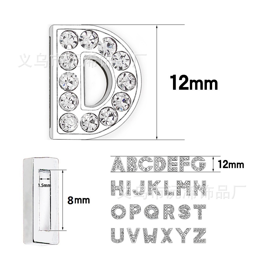 8mm英文字母配件 水钻字母穿带 合金字母饰品 DIY字母手腕带项圈