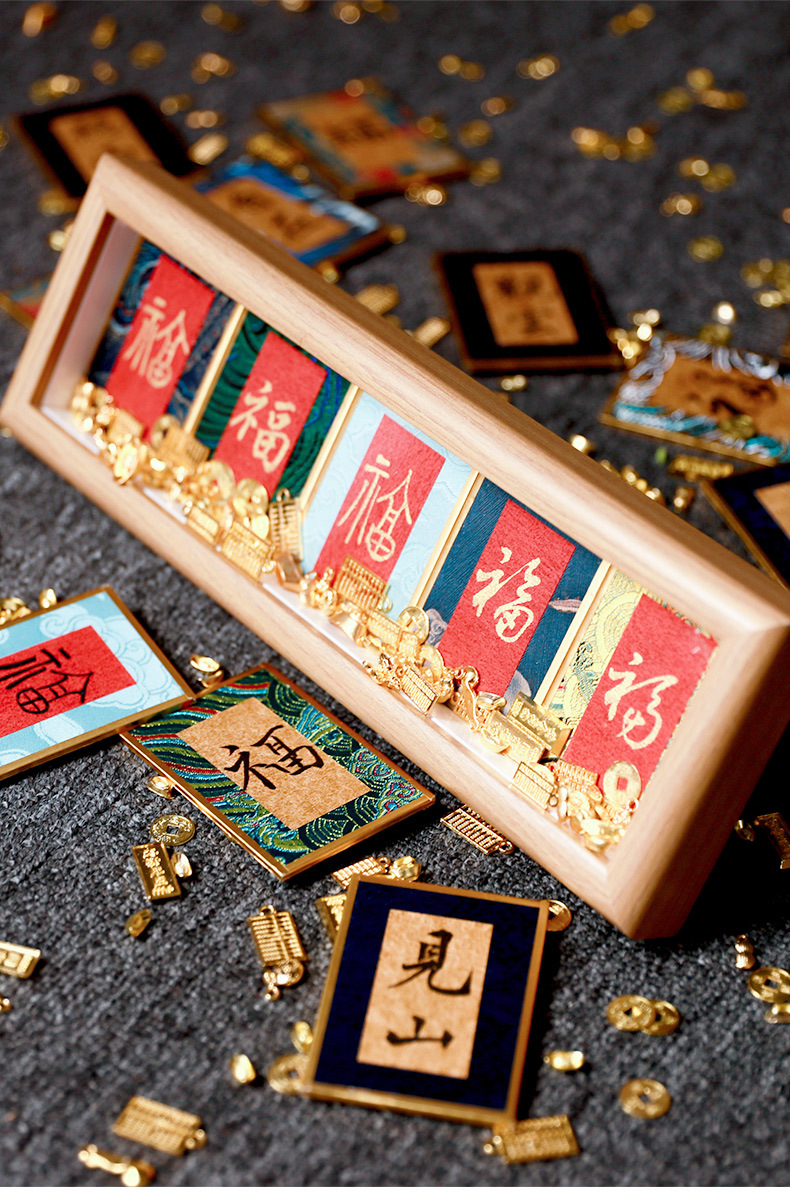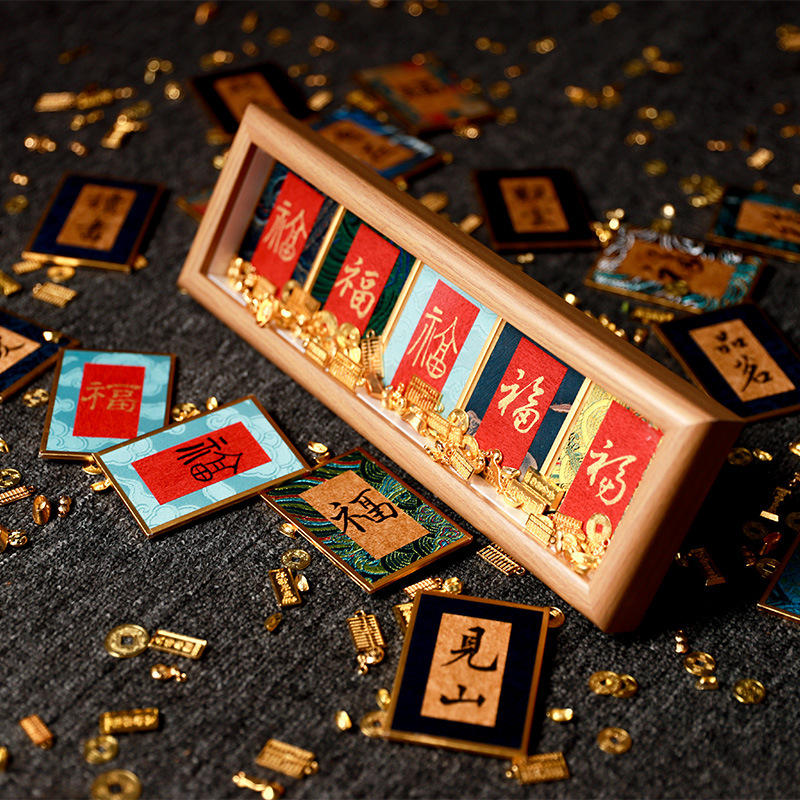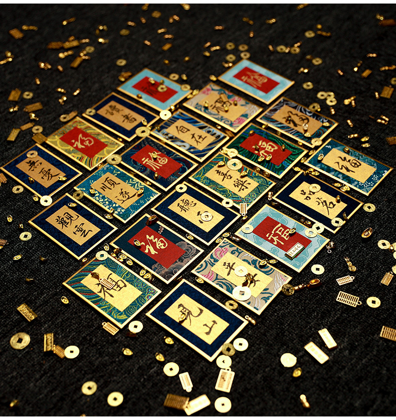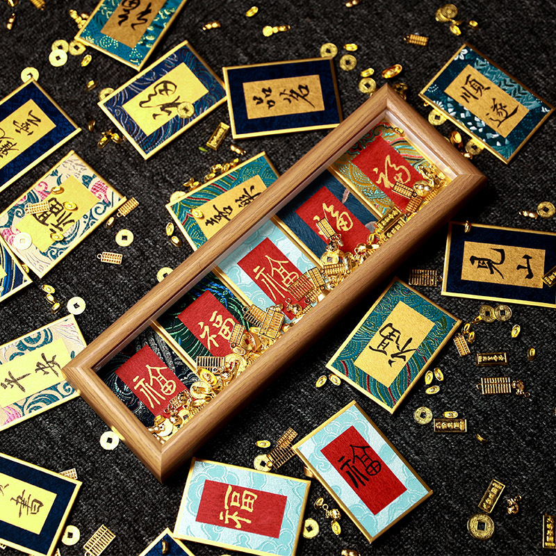 迷你宋锦硬卡纸国风宣纸文创礼品书法卡片摆台锦缎布面金潜纸楮笺