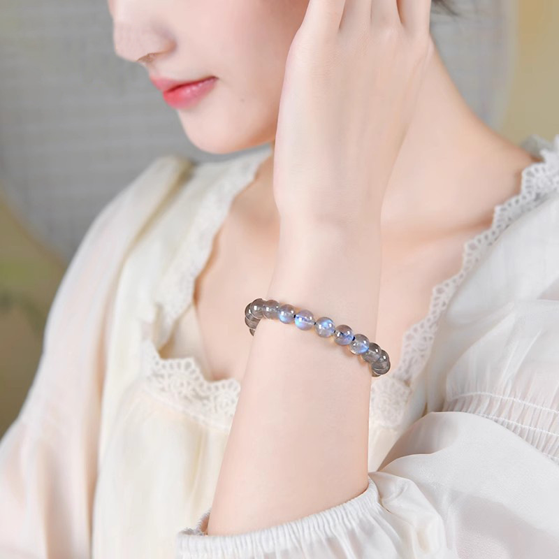 天然水晶7A灰月光散珠半成品蓝光拉长石月长石DIY饰品配件月光石