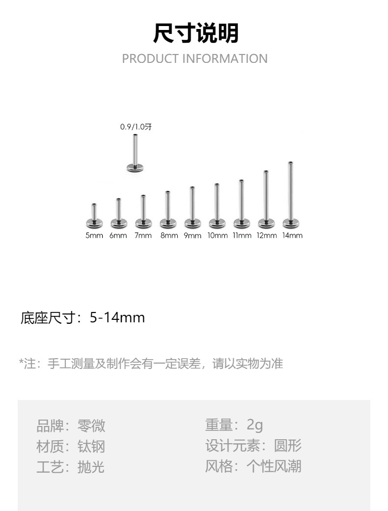 钛钢底座内螺纹底座唇钉内牙螺纹替换杆耳骨钉穿刺饰品配件