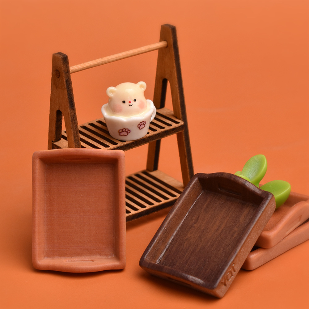 YQT迷你优雅木纹托盘食玩摆件树脂diy饰品配件娃屋过家家玩具餐盘