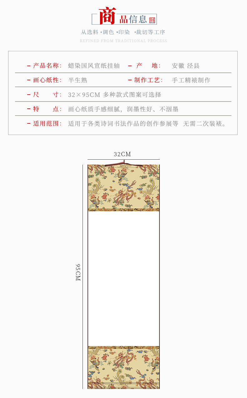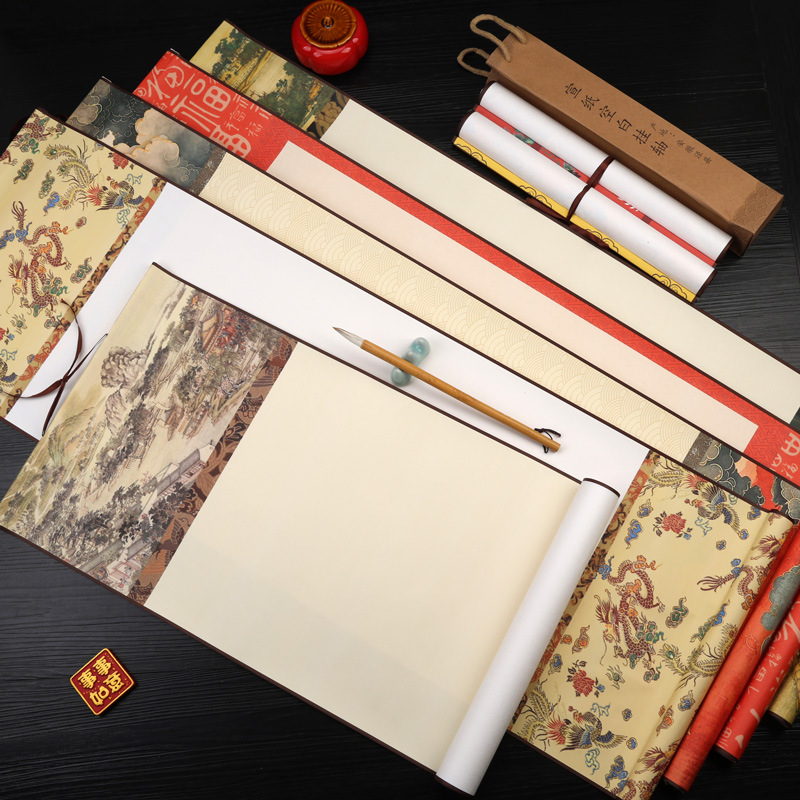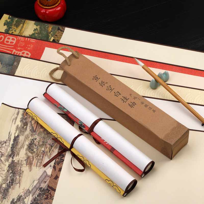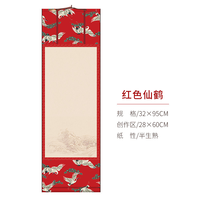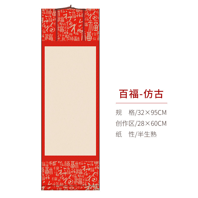 蜡染宣纸空白挂轴万年红福字红纸毛笔书法作品纸挂轴卷轴新款高档