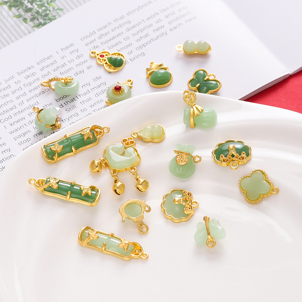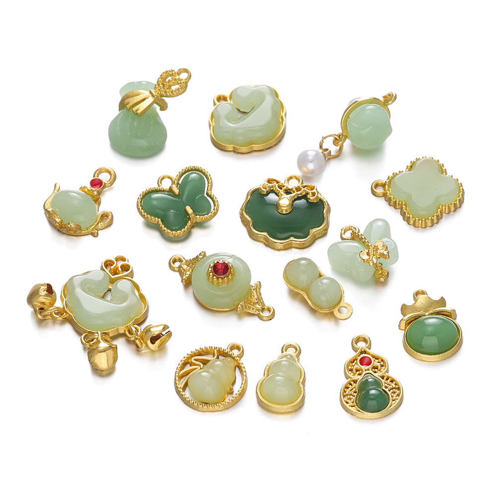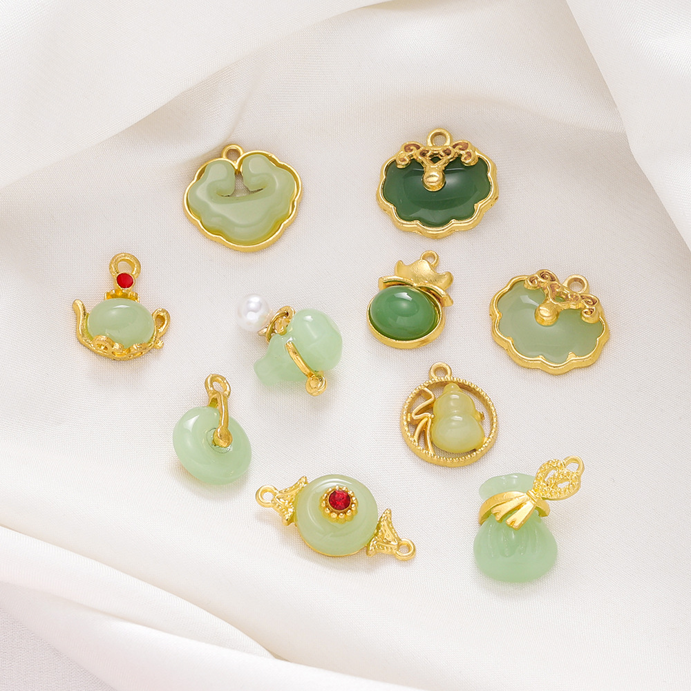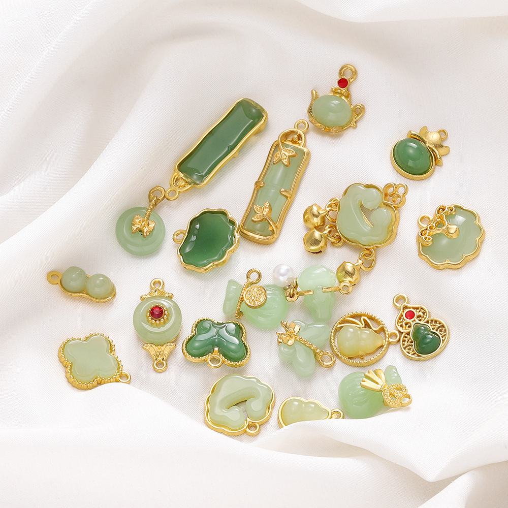 新中式仿玉石合金滴油配件 手工diy饰品挂件福字祥云手绳项链吊坠