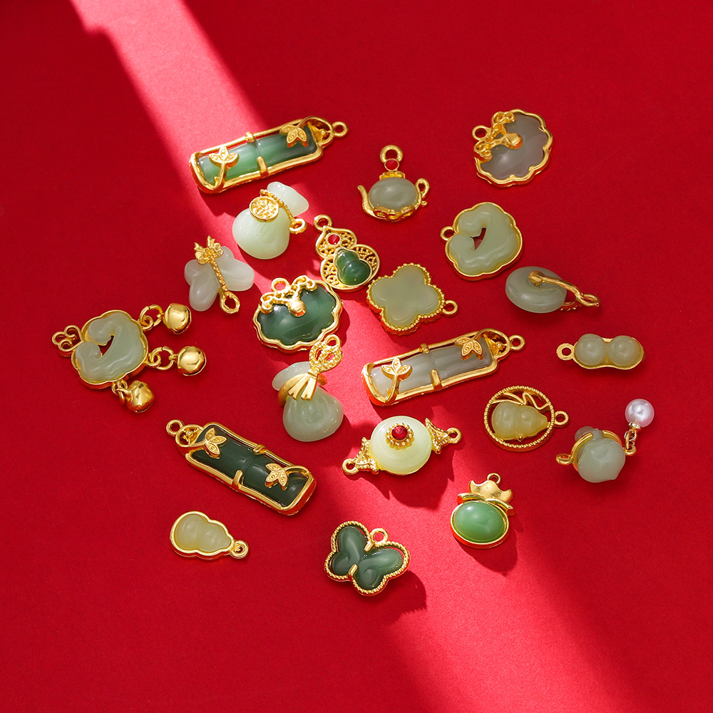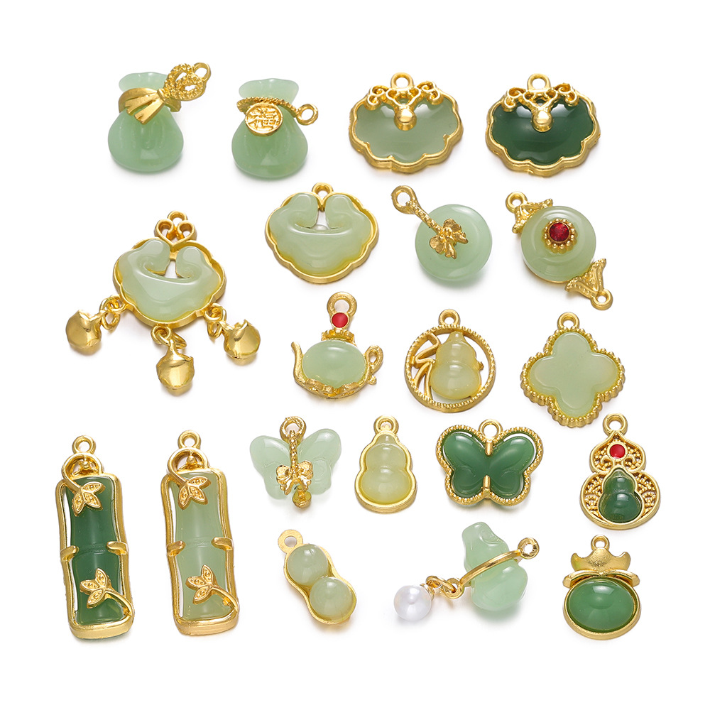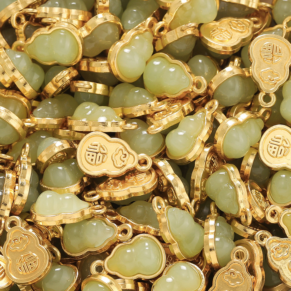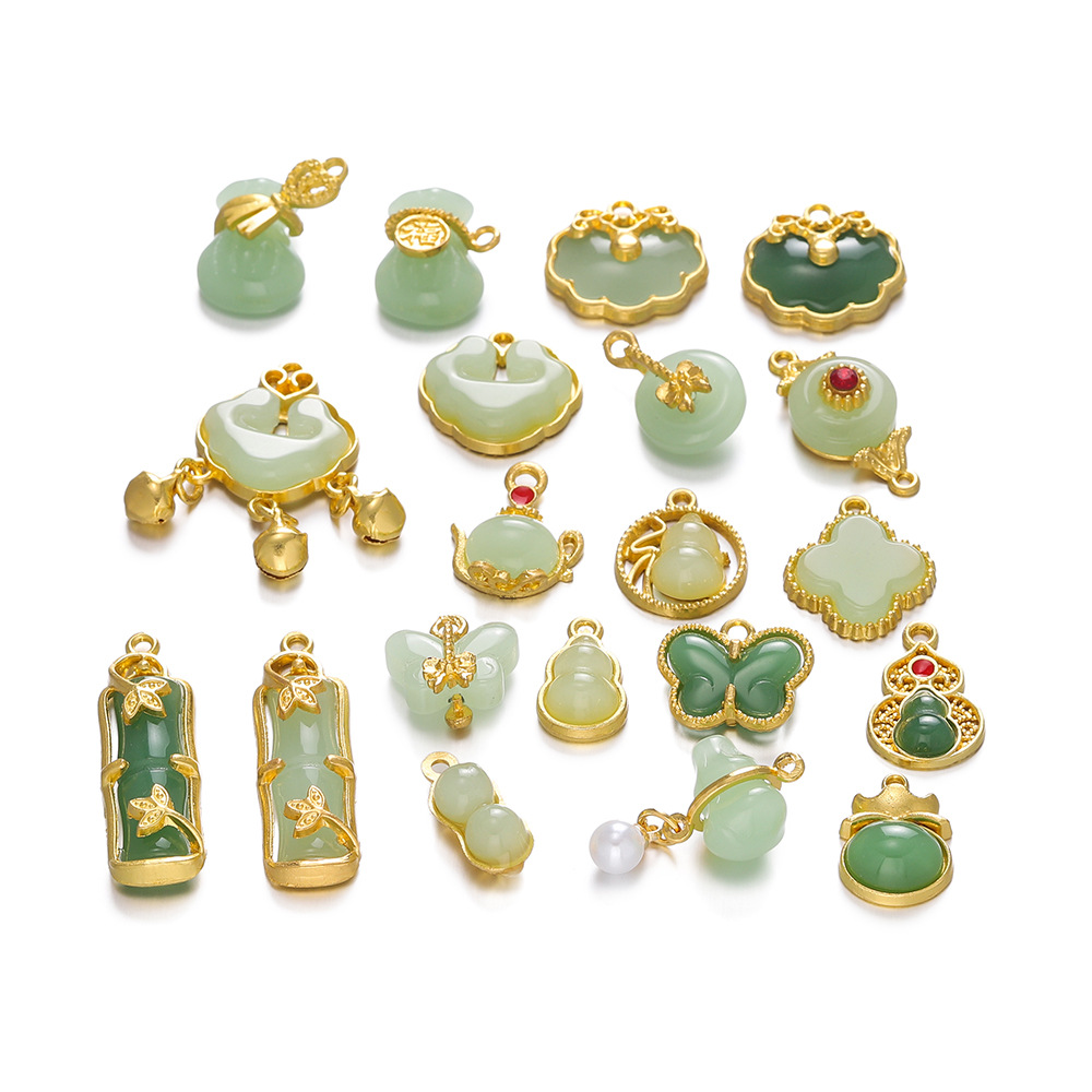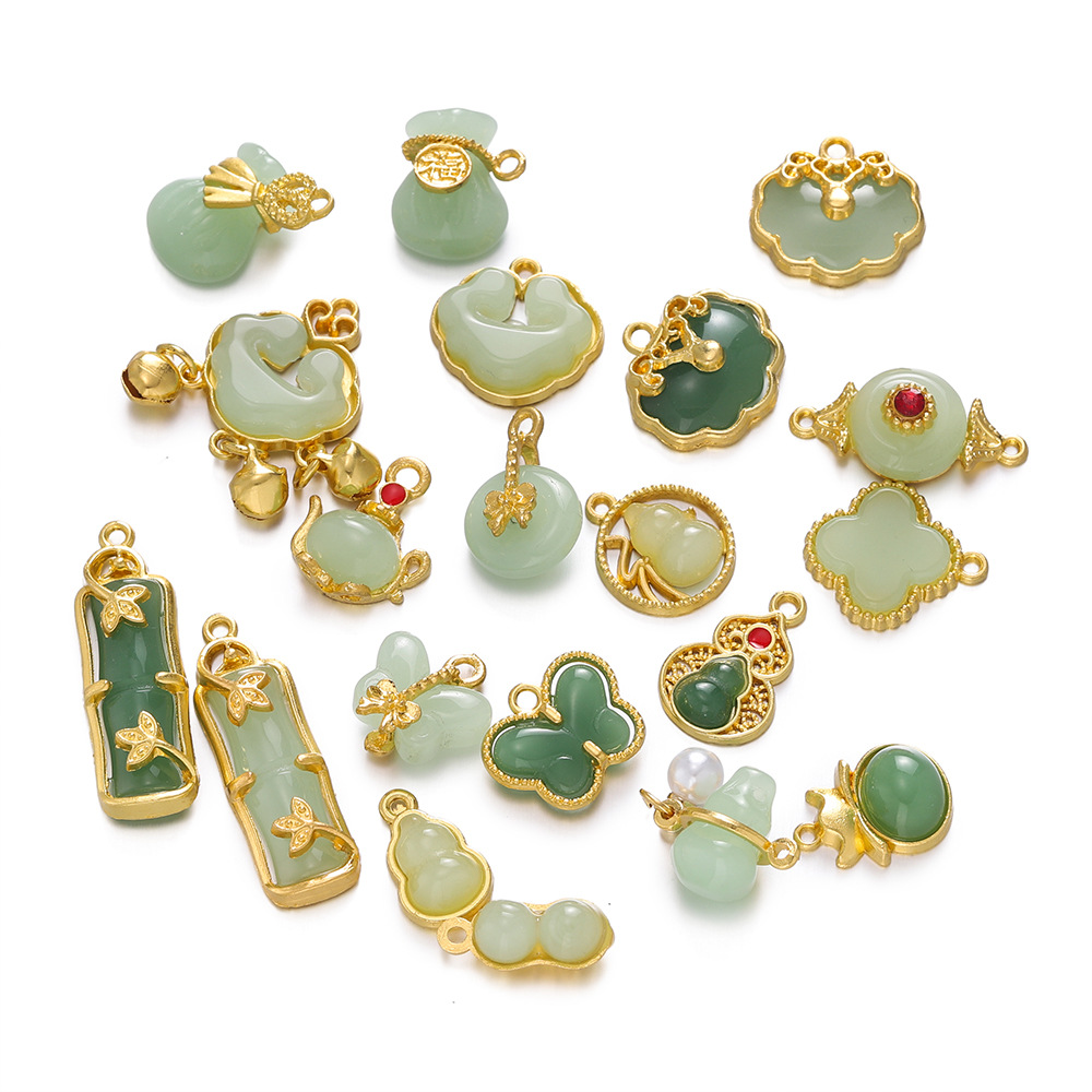 新中式仿玉石合金滴油配件 手工diy饰品挂件福字祥云手绳项链吊坠
