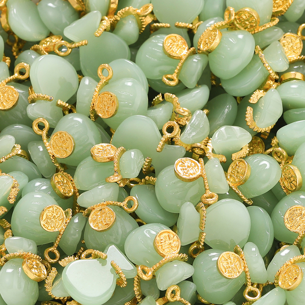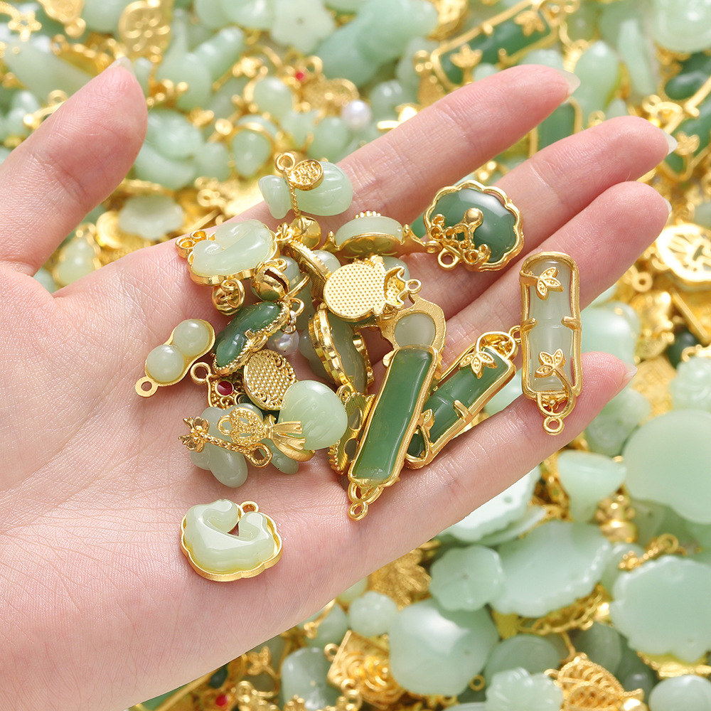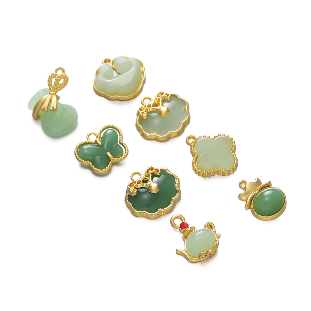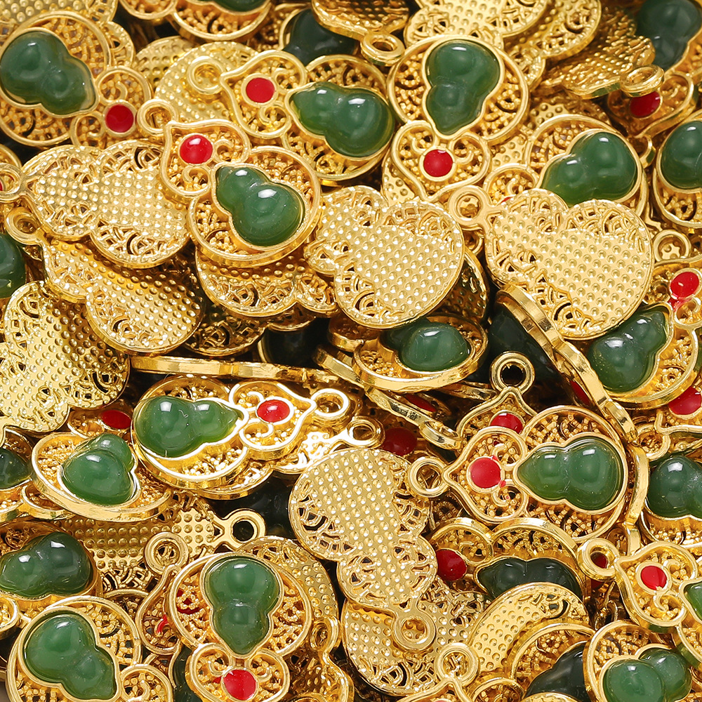 新中式仿玉石合金滴油配件 手工diy饰品挂件福字祥云手绳项链吊坠