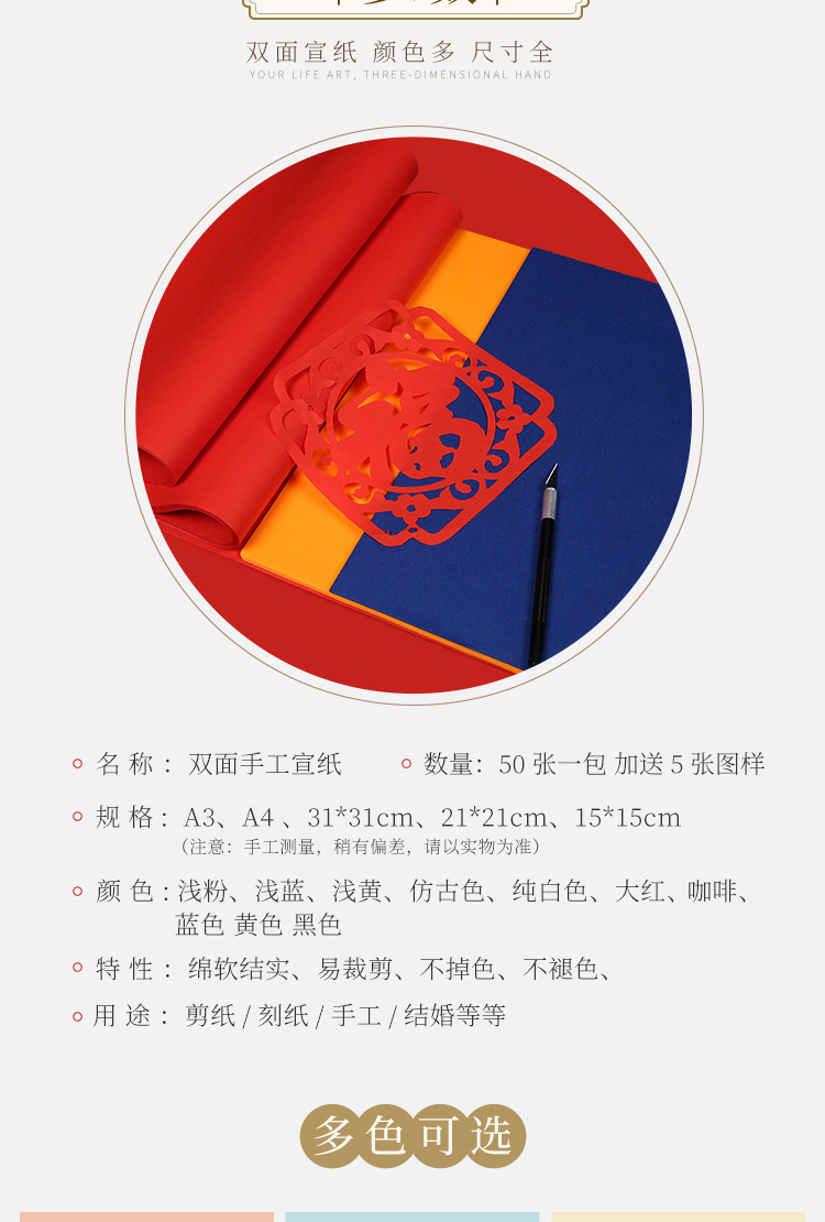 剪纸专用纸刻纸刻画双面红彩色宣纸窗花A3A4学生手工课材料中国风