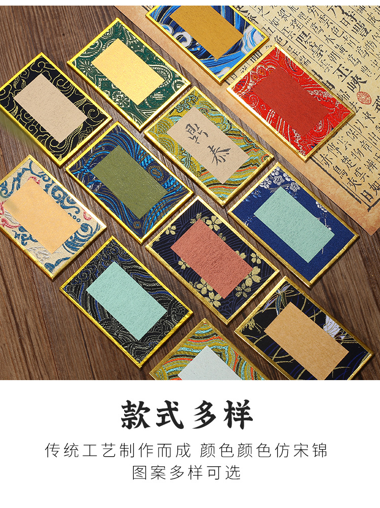 迷你宋锦硬卡纸国风宣纸文创礼品diy书法卡片摆台锦缎布面金潜纸