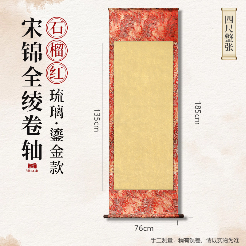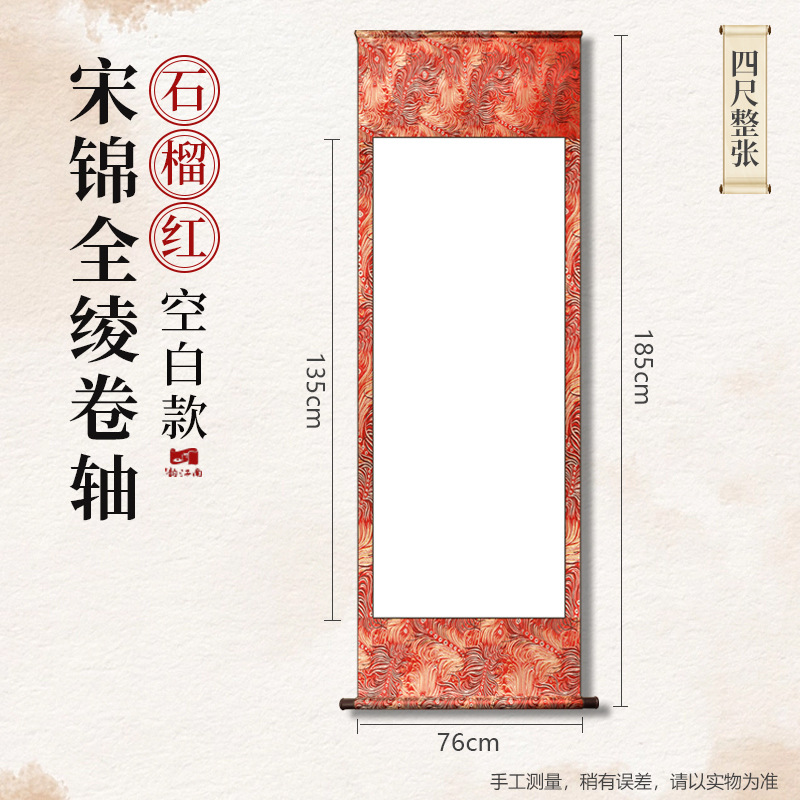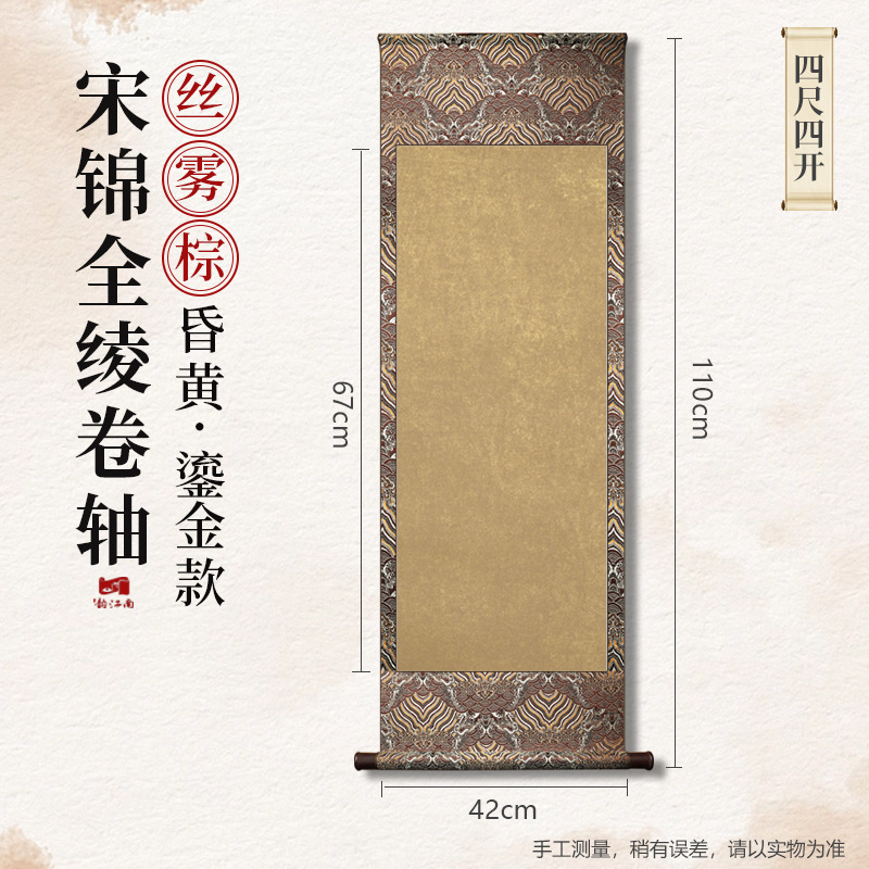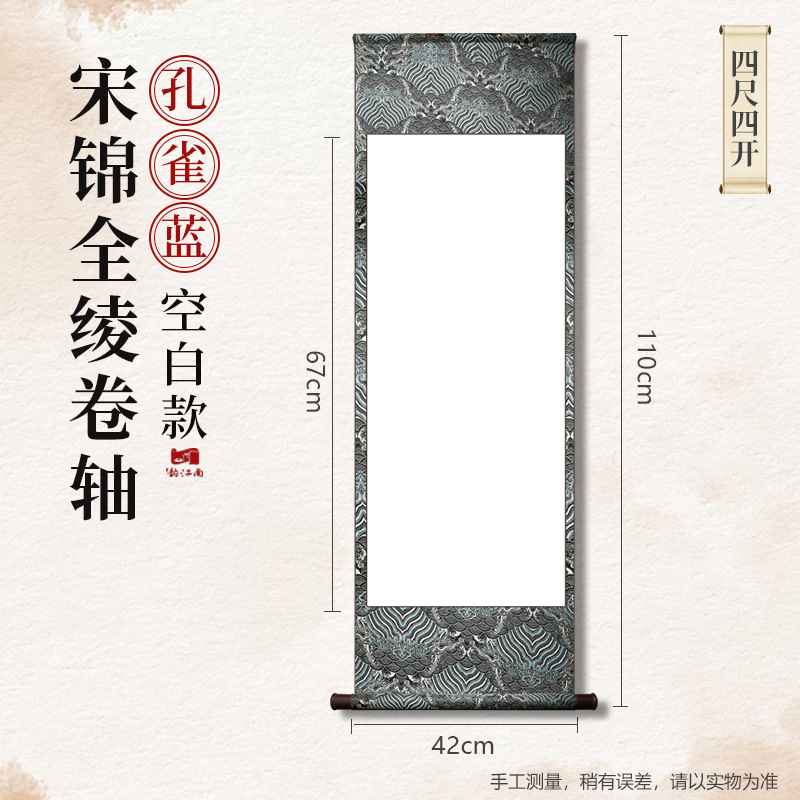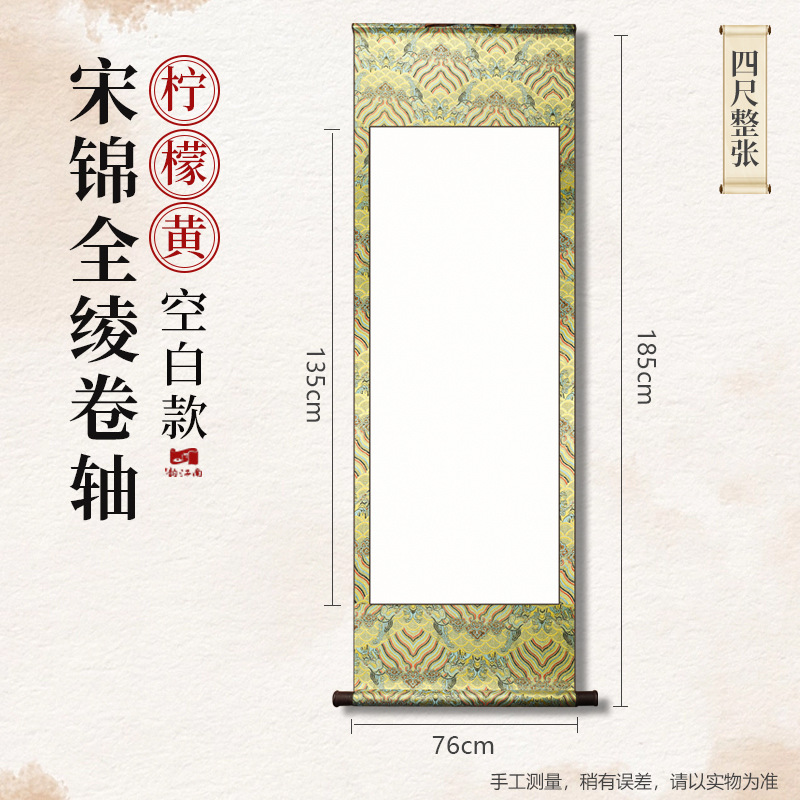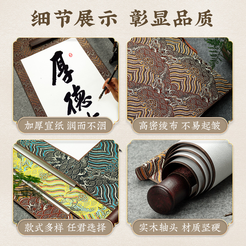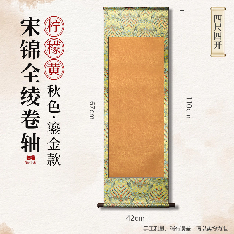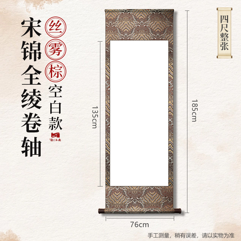 宋锦卷轴空白宣纸毛笔书法国风半生作品绫布装裱书房挂轴