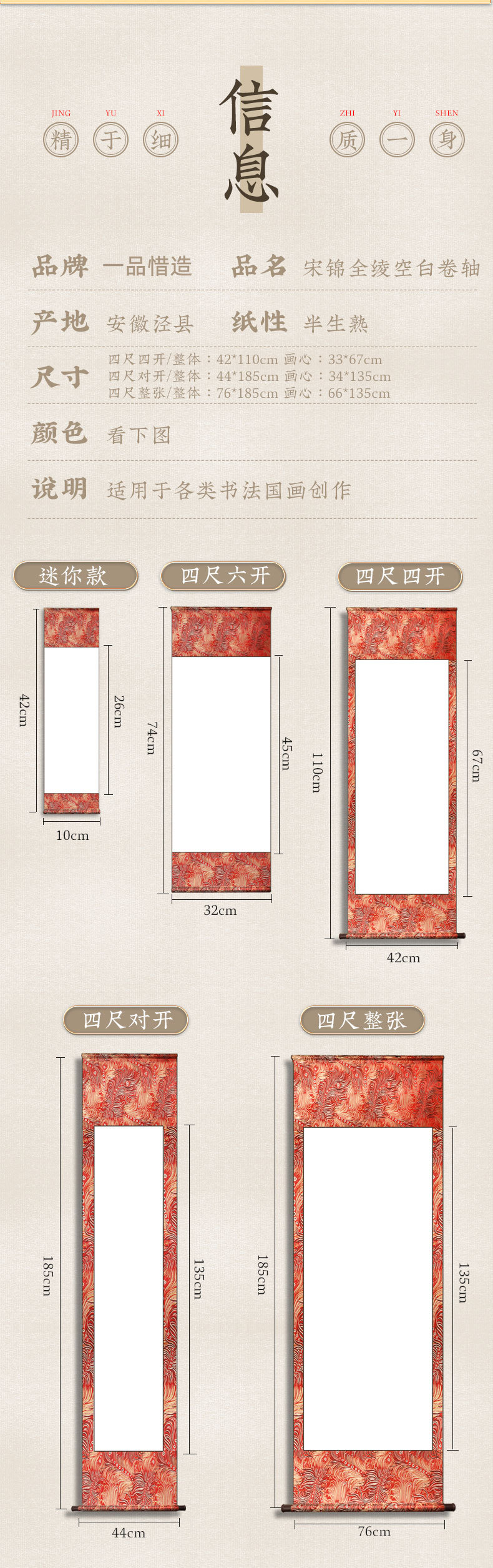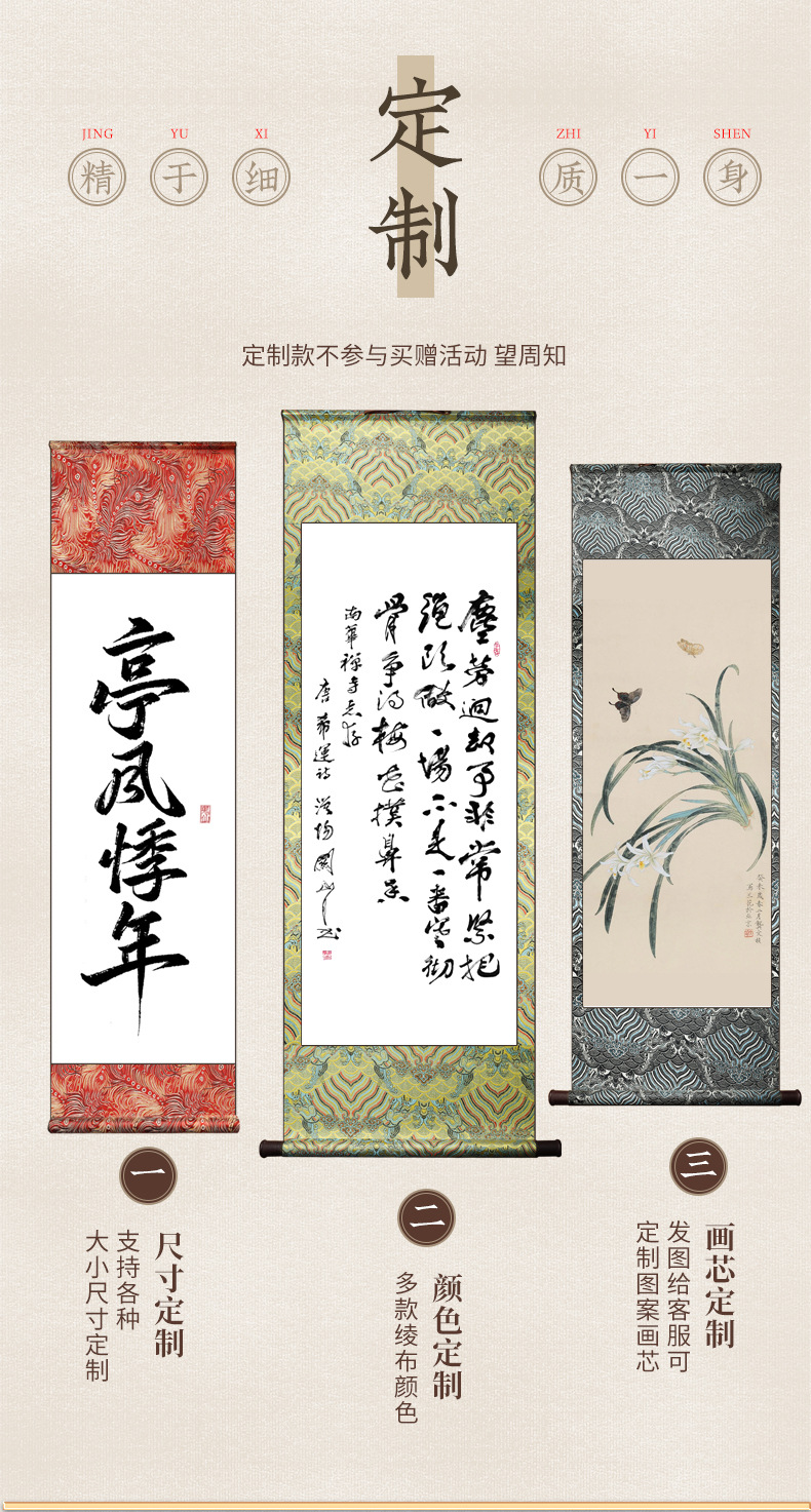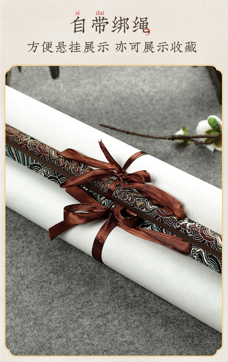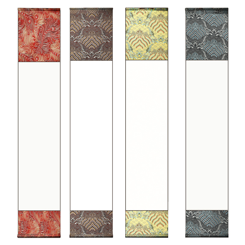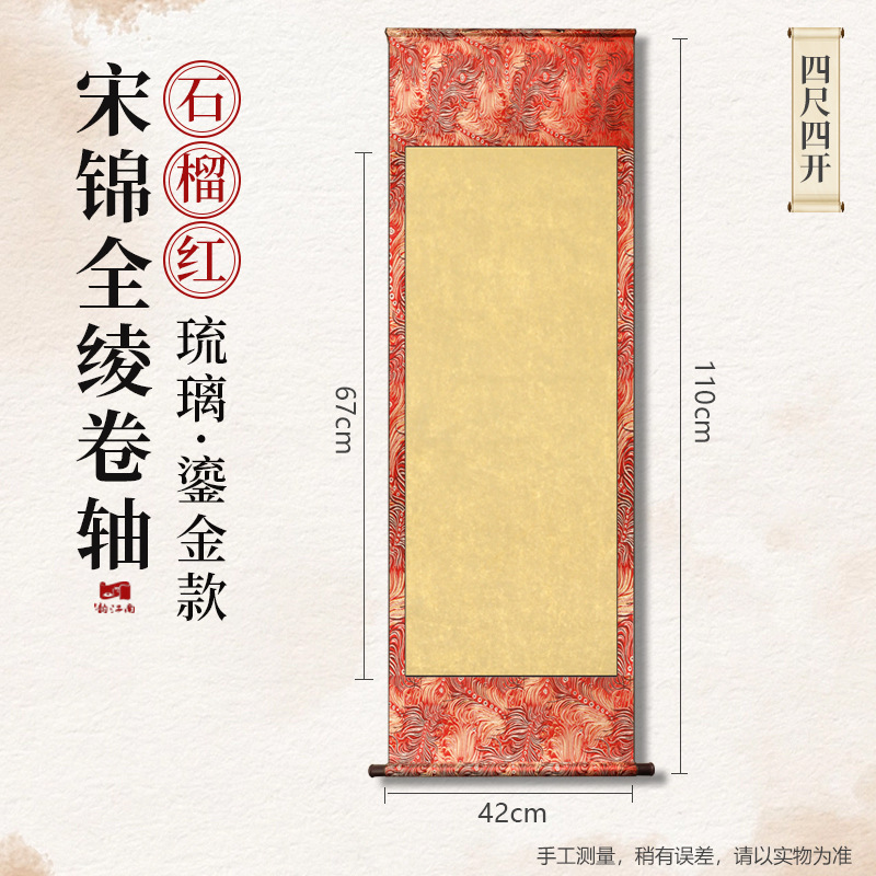 宋锦卷轴空白宣纸毛笔书法国风半生作品绫布装裱书房挂轴
