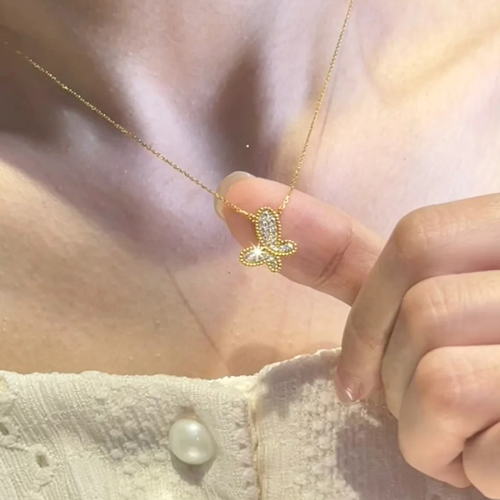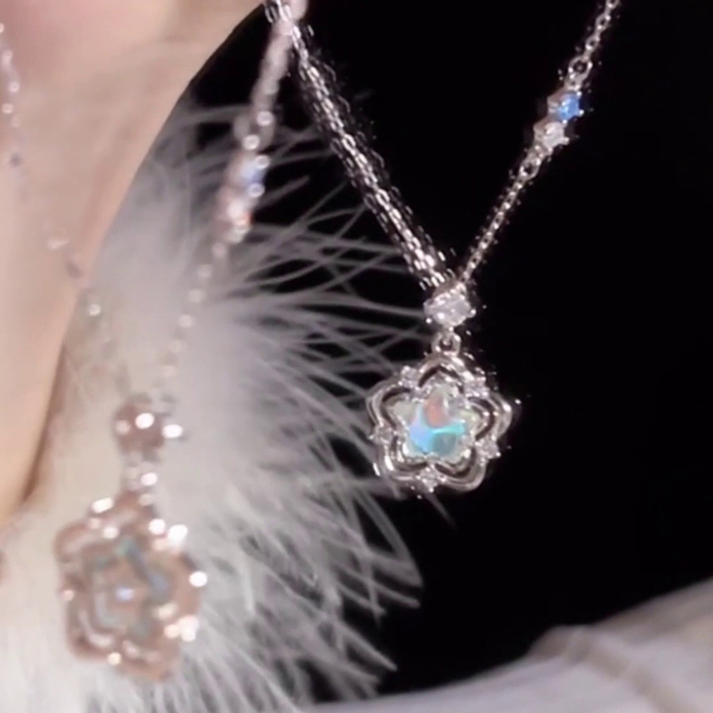 闪钻红宝石四叶草花瓣项链新款精致轻奢优雅钛钢不掉色锁骨链饰品