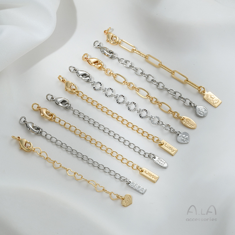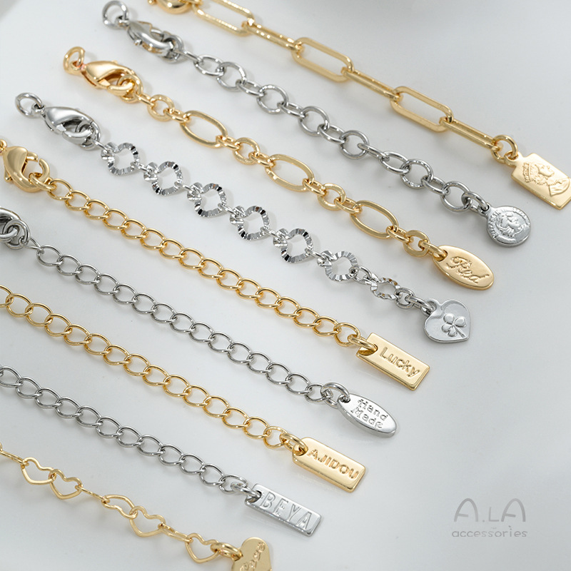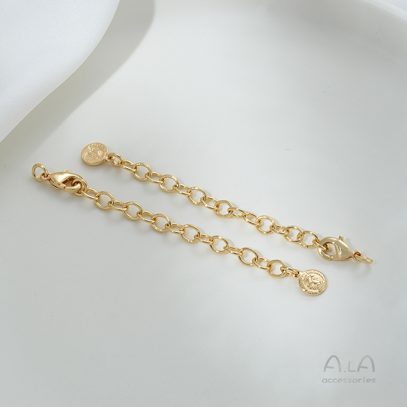 14K包金长方吊牌椭圆珍珠项链手链尾链手工diy饰品配件扣头延长链