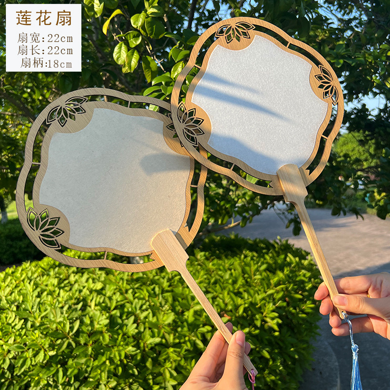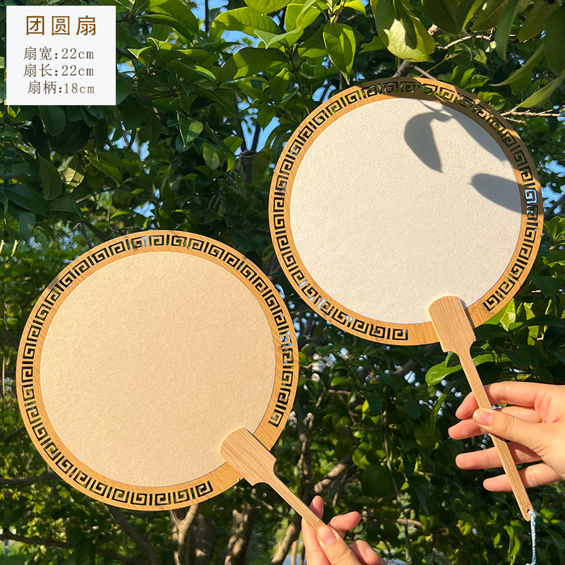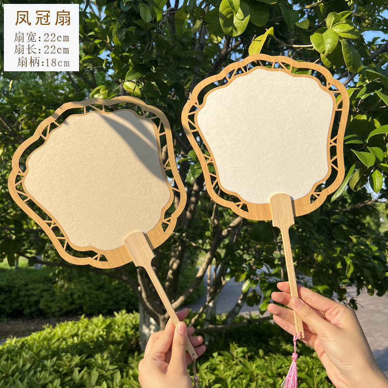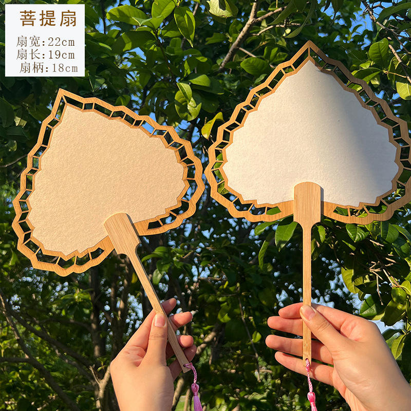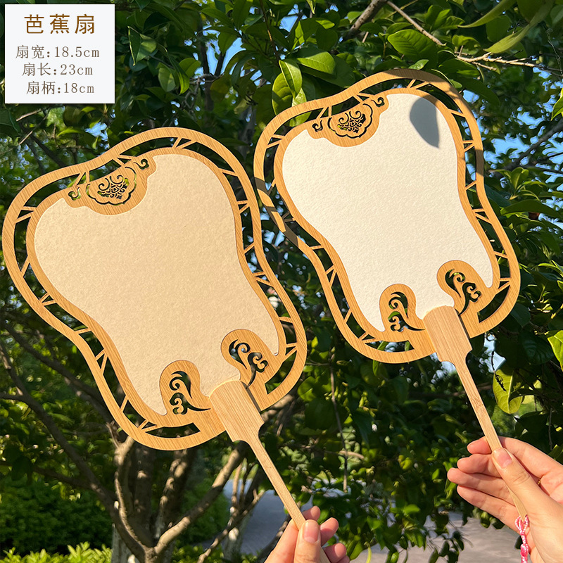 2024新款漂漆中式镂空古风芭蕉团扇户外手工绘画宣纸扇面书法国画