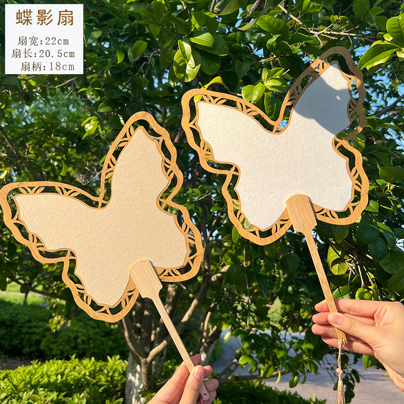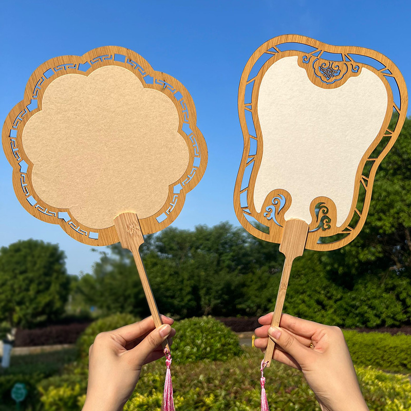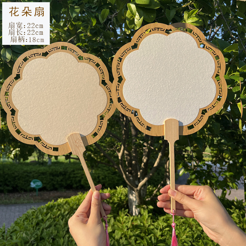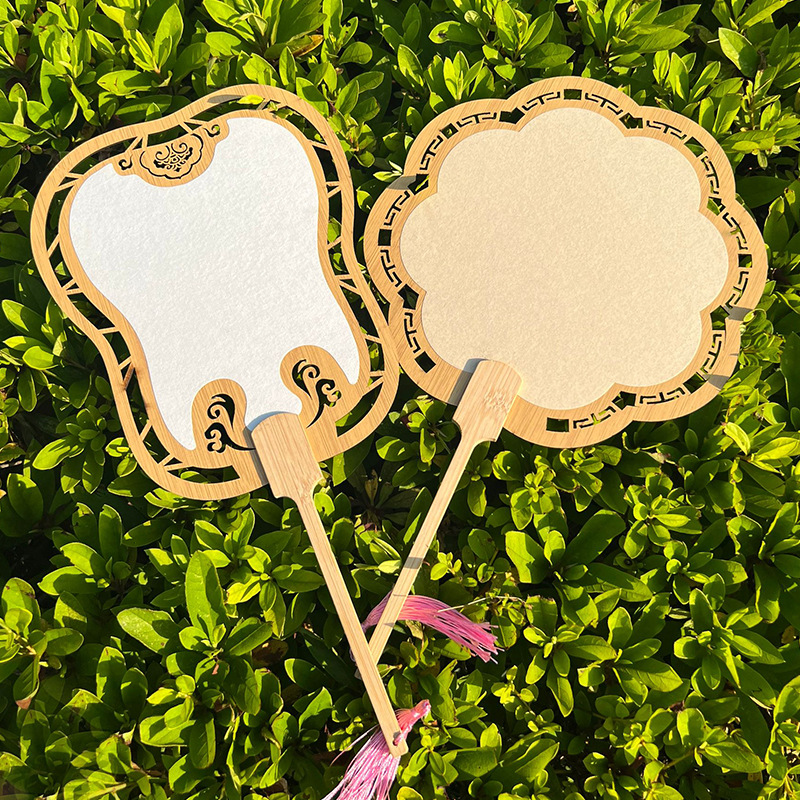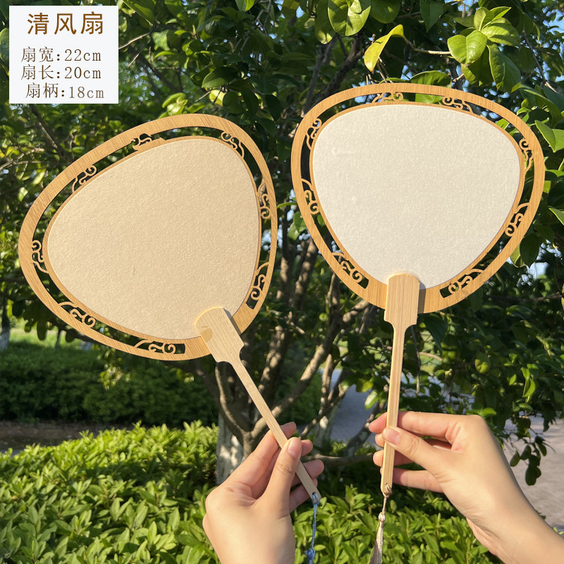 2024新款漂漆中式镂空古风芭蕉团扇户外手工绘画宣纸扇面书法国画