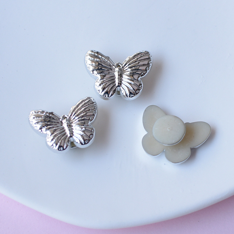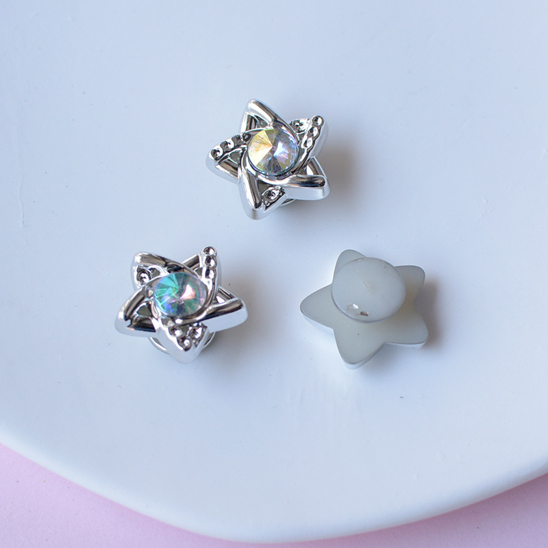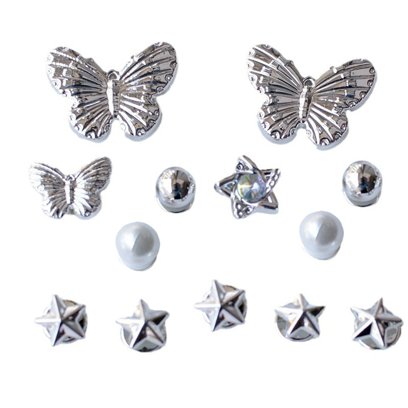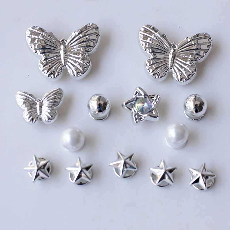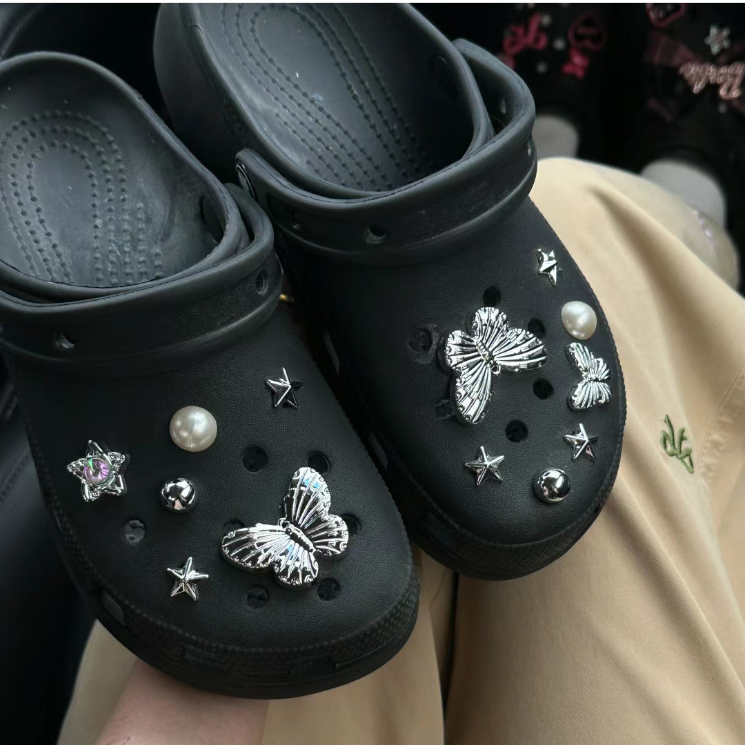 Y2K金属感电镀蝴蝶五角星饰品配件洞洞鞋鞋花鞋扣一体pj1482