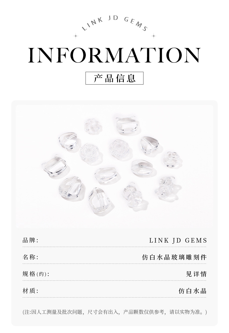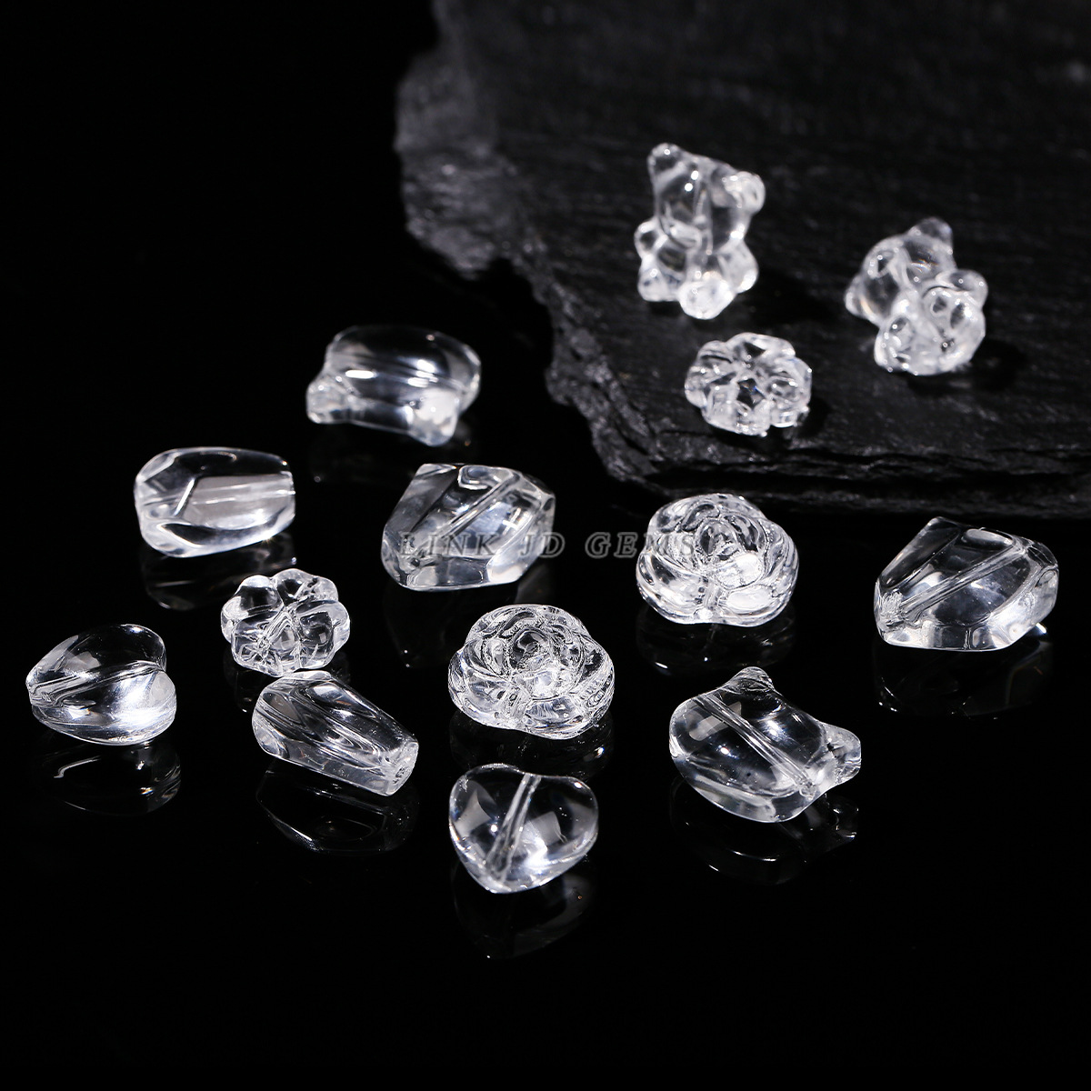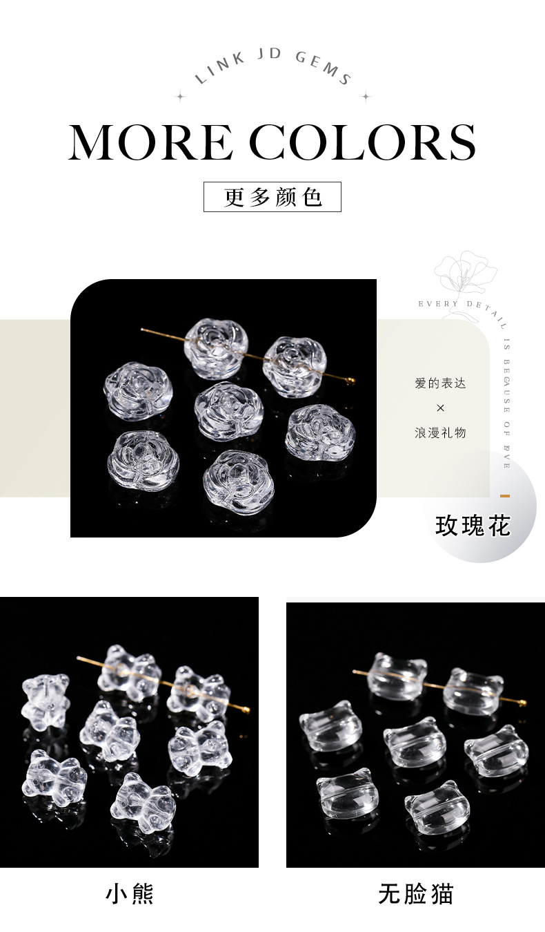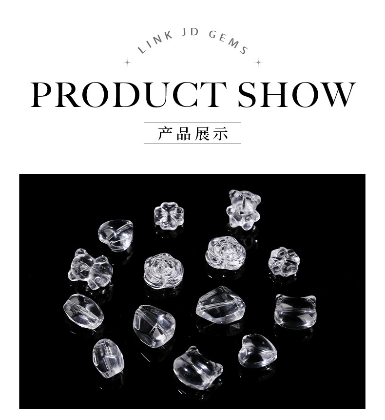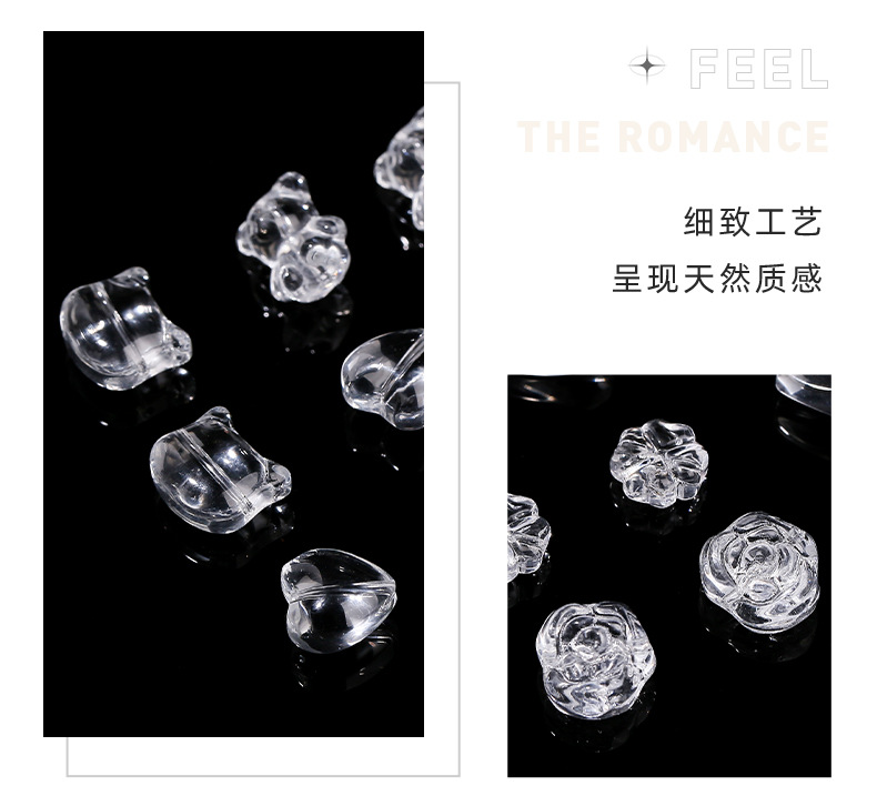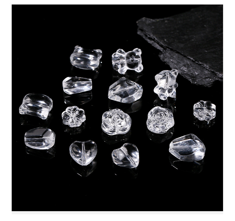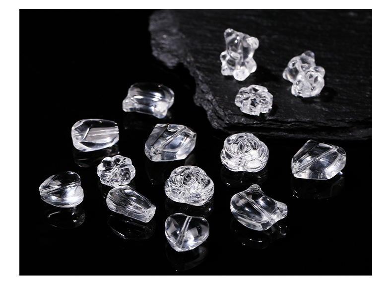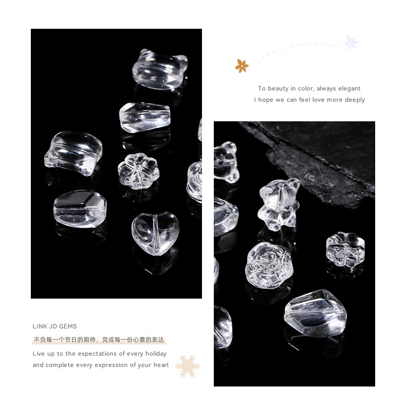 晶德珠宝 白水晶玻璃散珠雕刻件爱心玫瑰花小熊diy饰品配饰批发