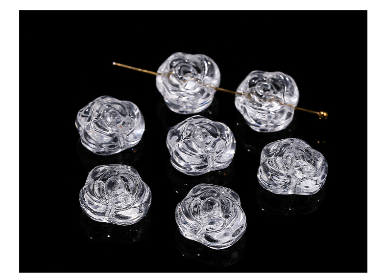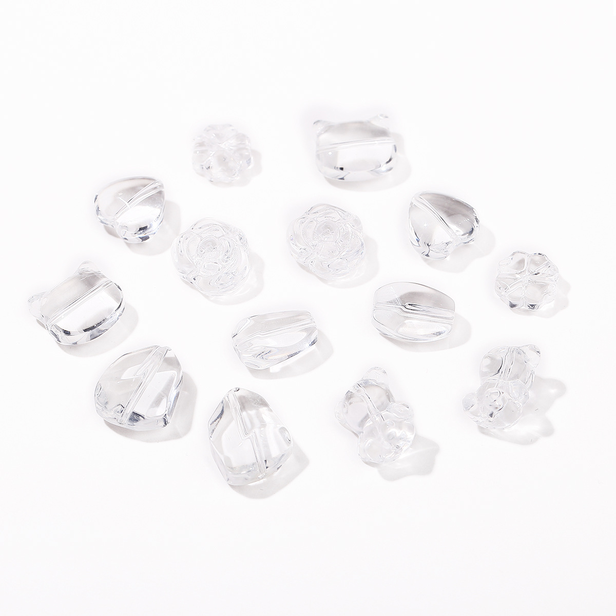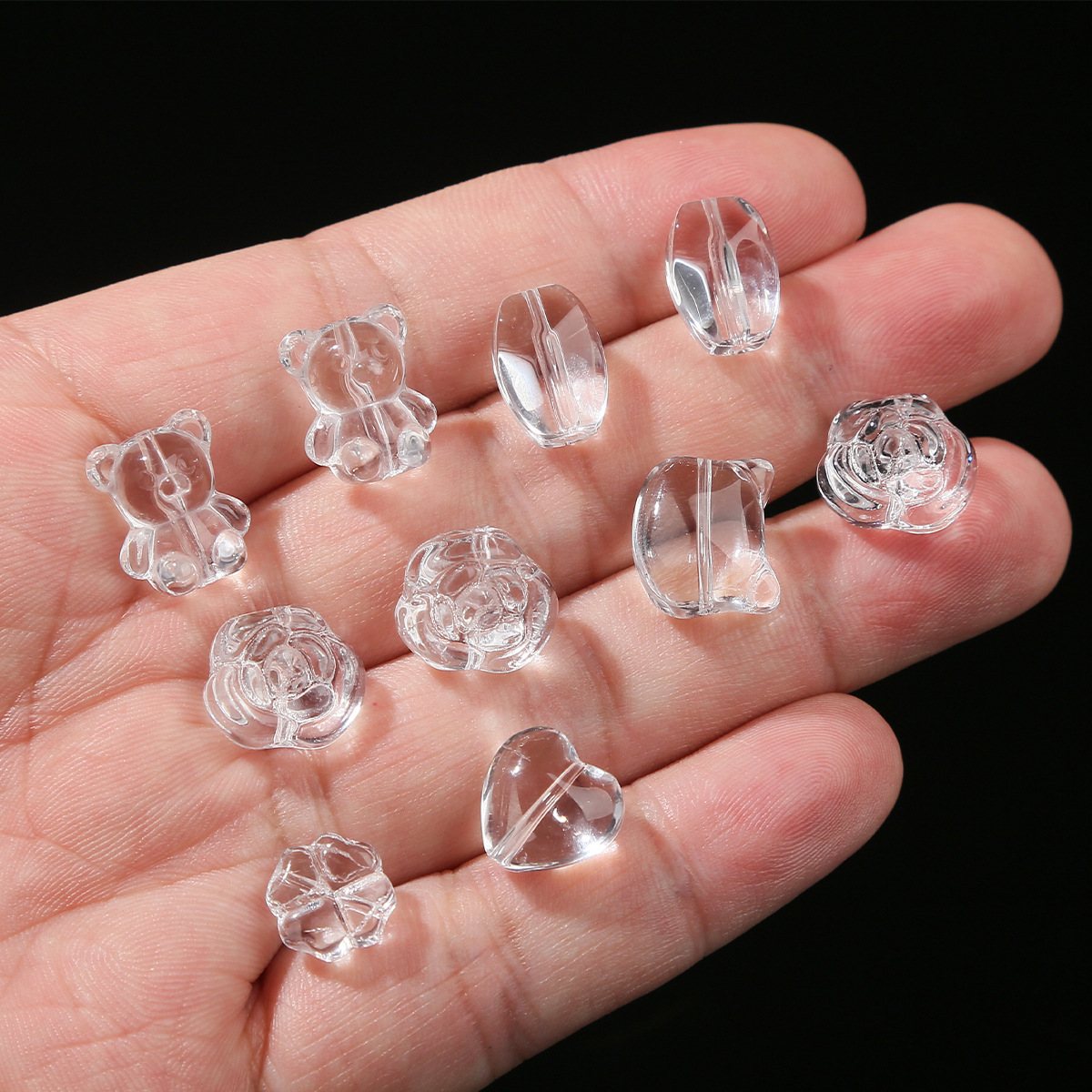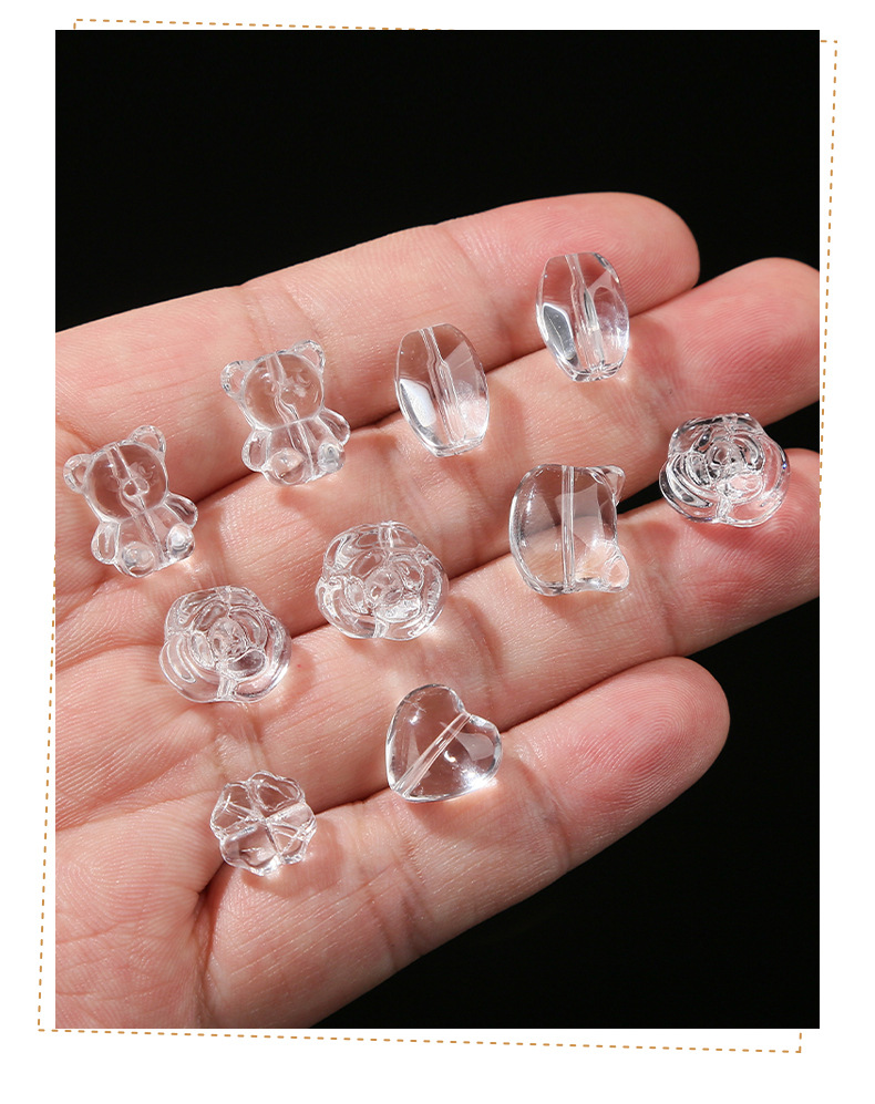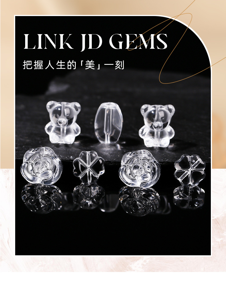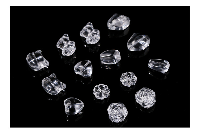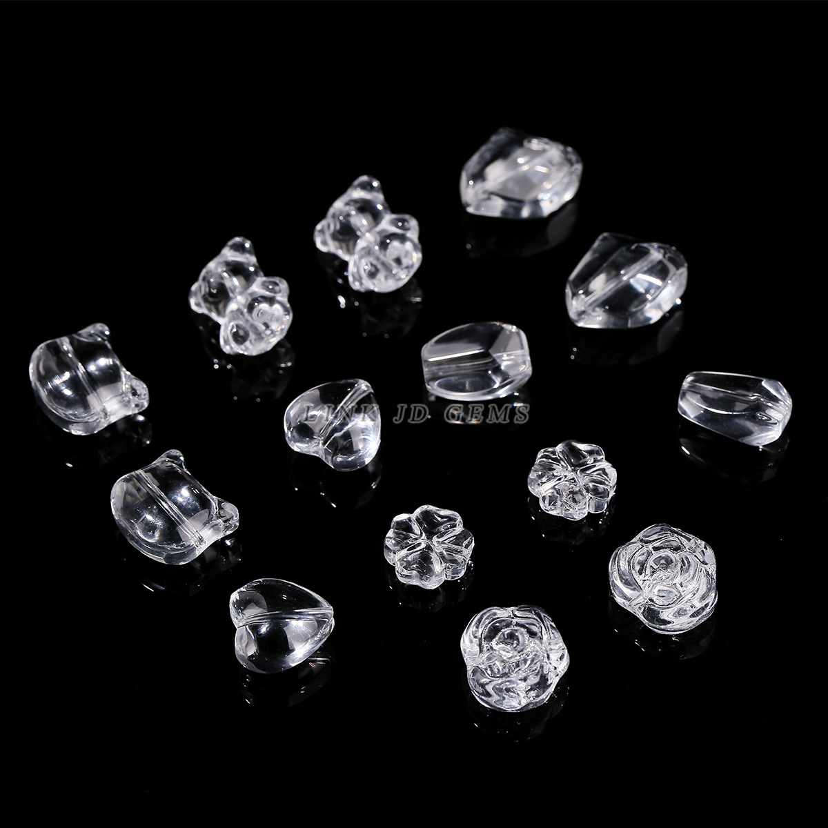 晶德珠宝 白水晶玻璃散珠雕刻件爱心玫瑰花小熊diy饰品配饰批发