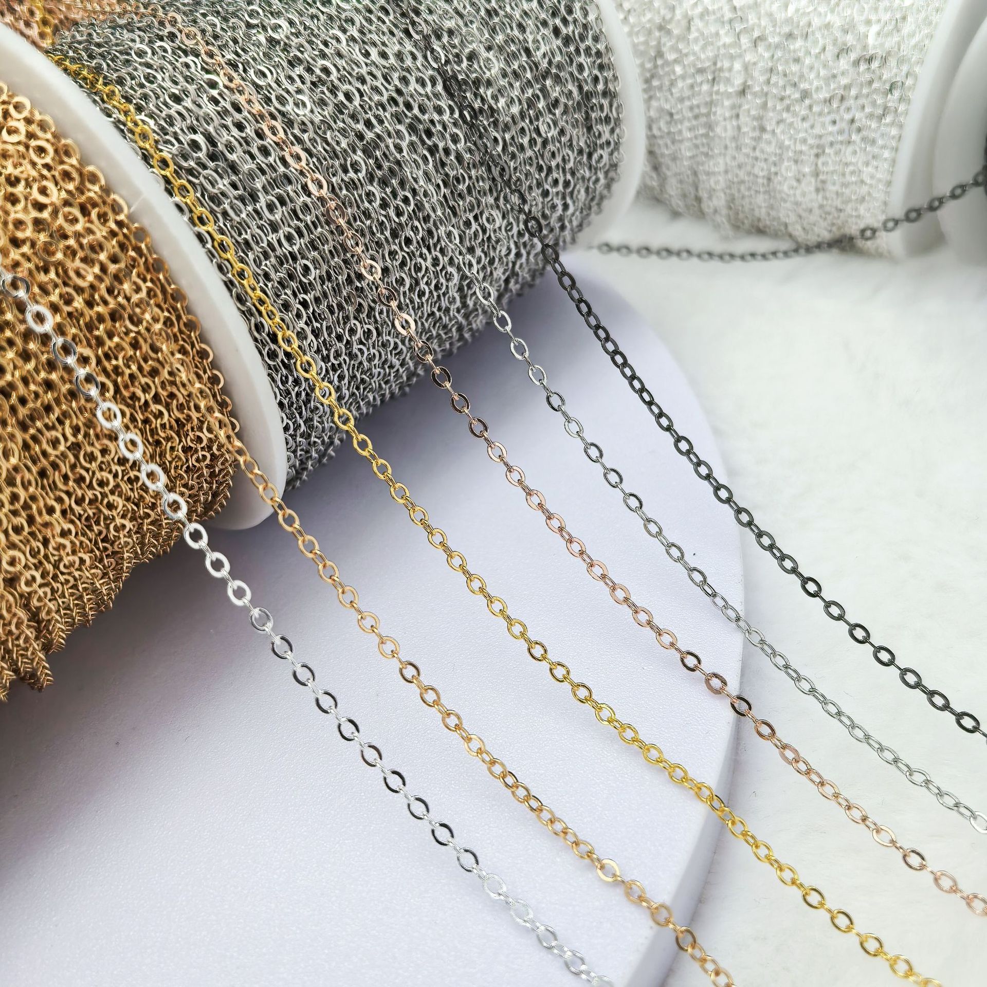 纯铜加强保色链条0字链diy项链发簪材料义乌饰品配饰散链批发零售