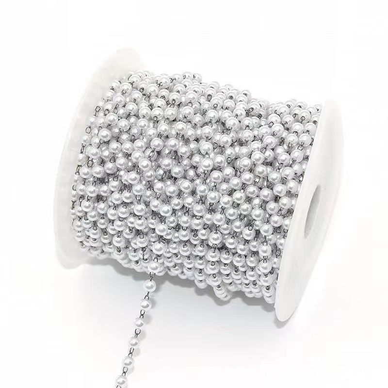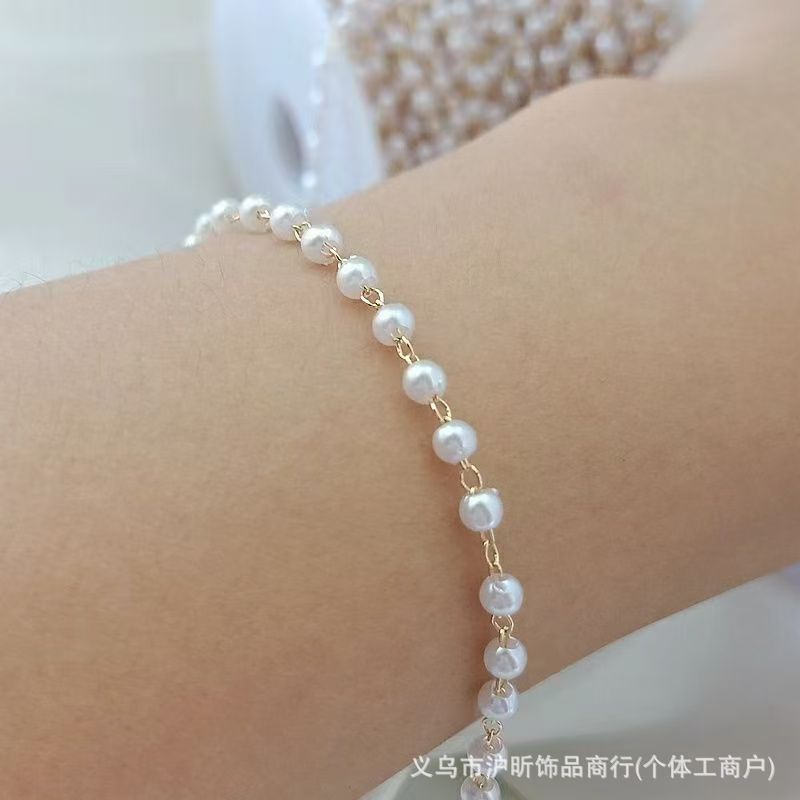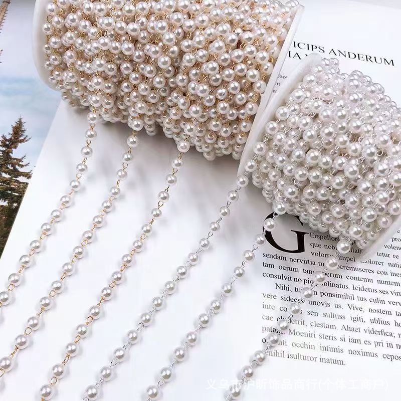 4mm珍珠镀金链条白k色珍珠项链半成品diy发簪耳饰链子饰品挂件