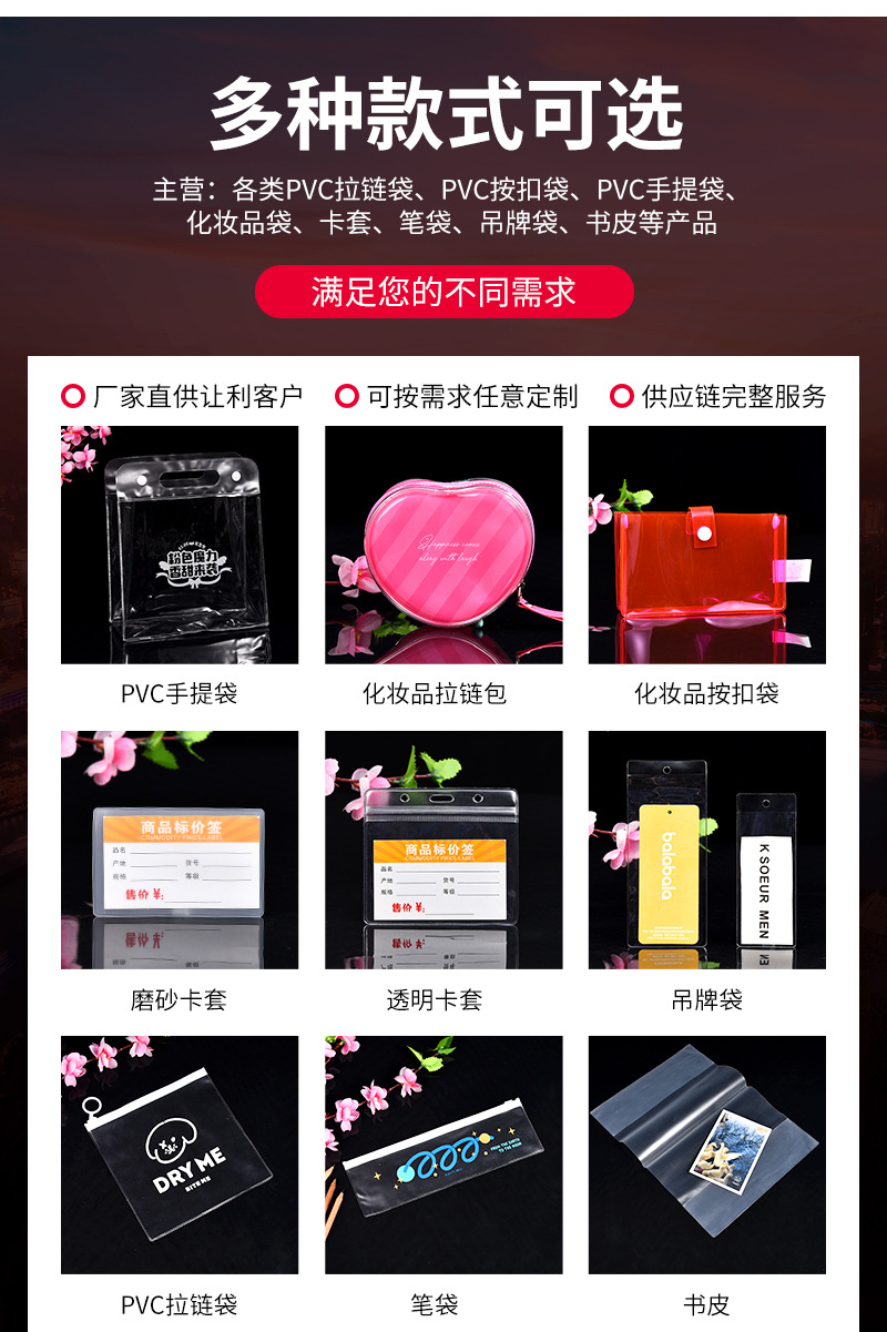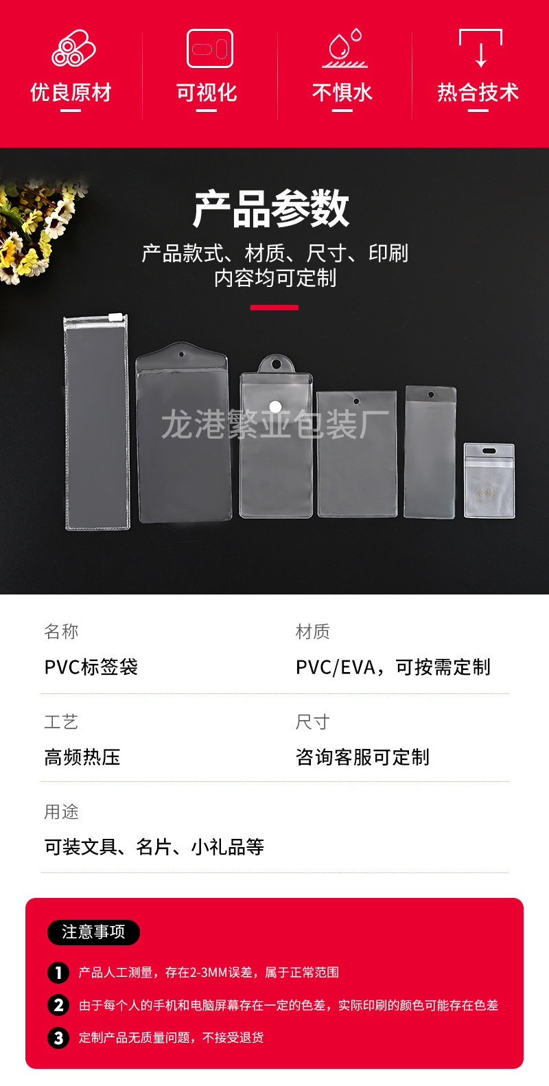 PVC吊牌袋现货磨砂透明商标签袋平口纽扣袋塑料服装唛头领标袋