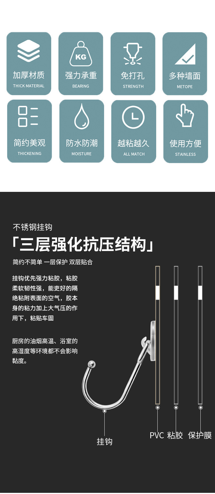 无痕挂钩免打孔子粘钩浴室厨房子母扣强力贴片置物架免钉塑料挂勾