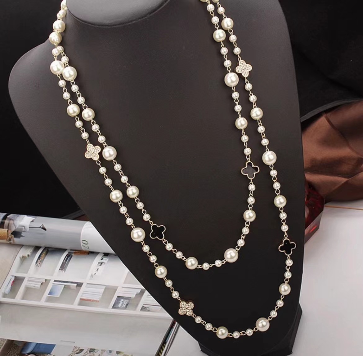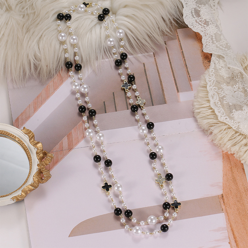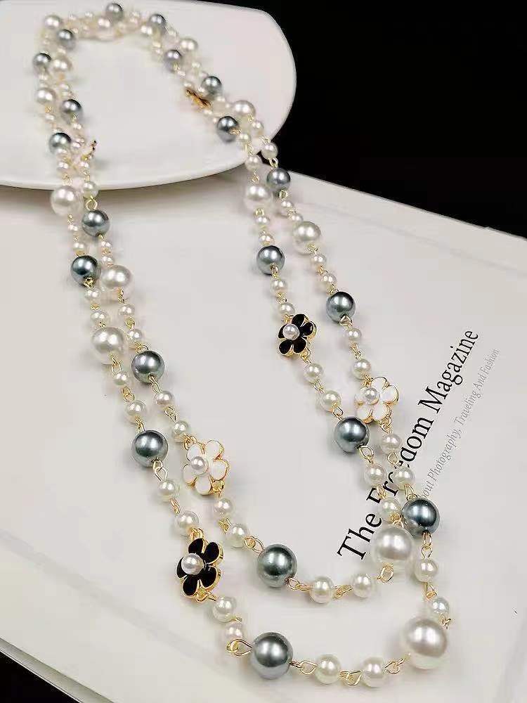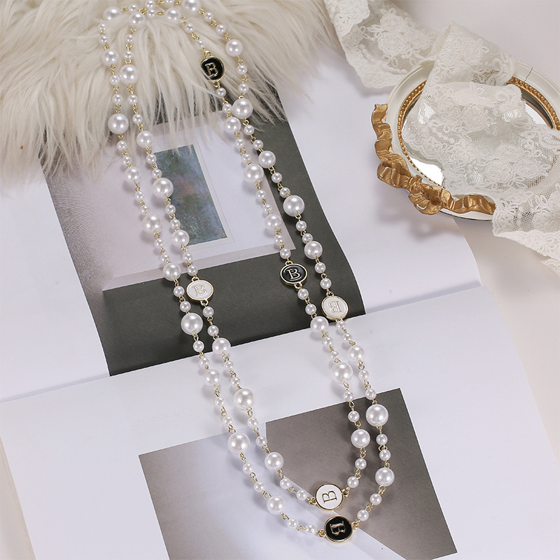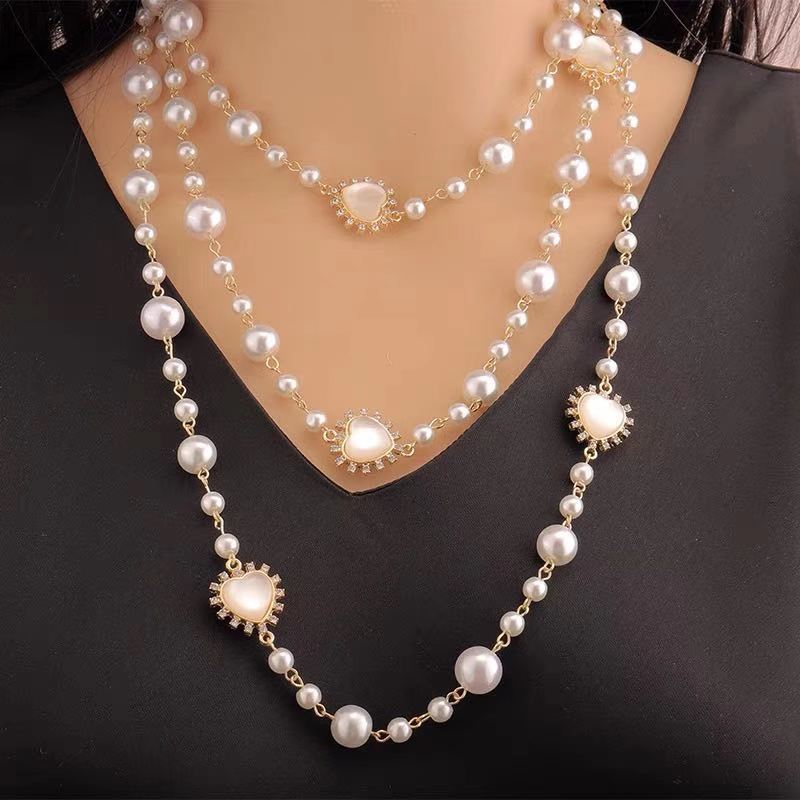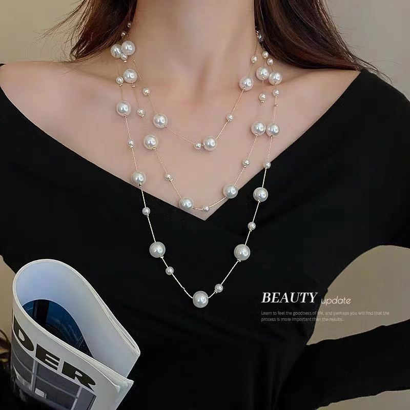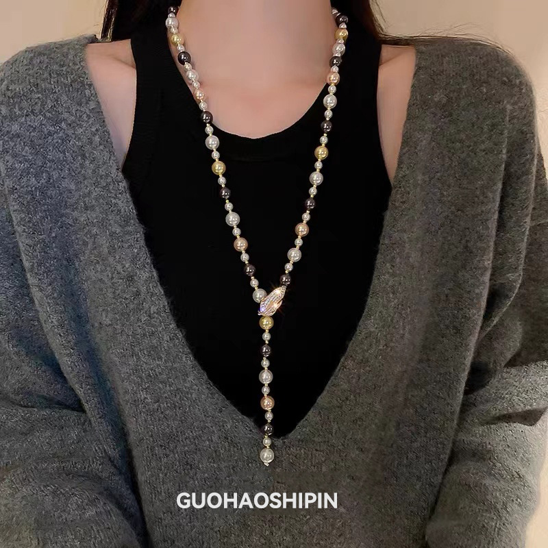 轻奢高级感秋冬长款珍珠项链时尚百搭毛衣链多层项链合金饰品配饰