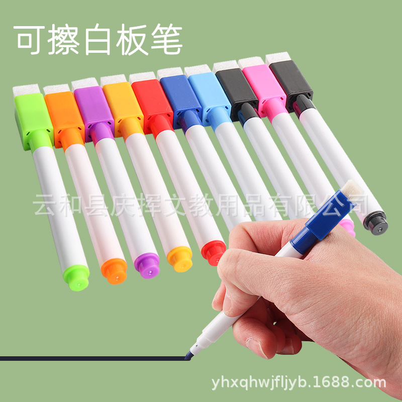 厂家批发白板笔带磁带刷彩色可擦水性绘画记号笔儿童画板白板笔