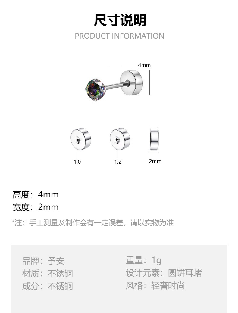 不锈钢耳钉配件圆饼螺丝diy可扭穿刺耳针耳堵塞子耳饰品配件