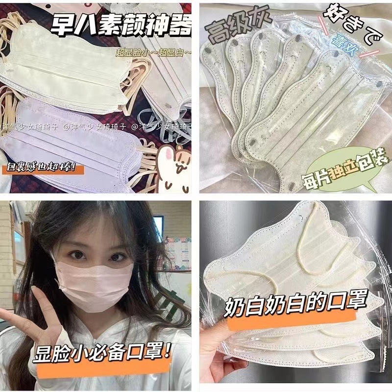 显脸小莫兰迪奶油白V型口罩一次性波浪口罩防护日式版透气简约ins