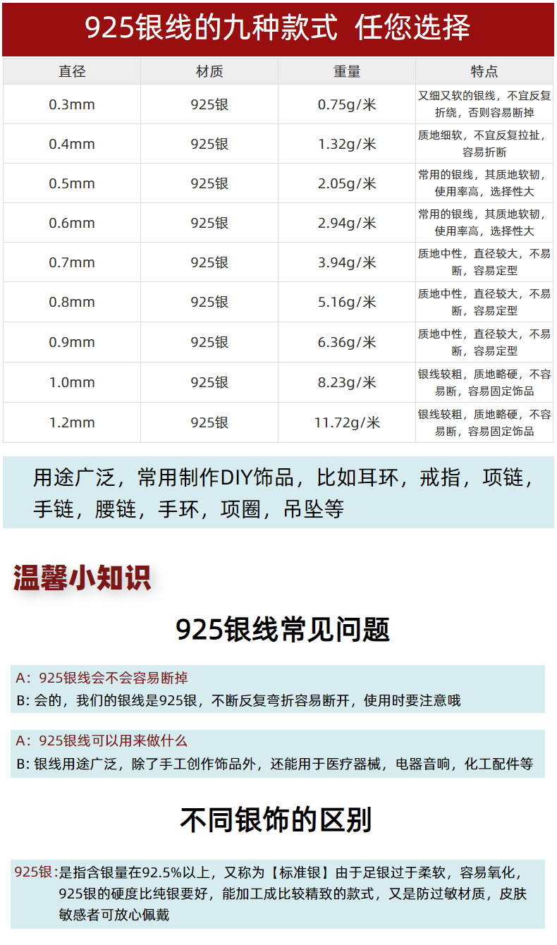 S925纯银线材银丝银线diy饰品专用首饰镶嵌手工制作手链配件材料