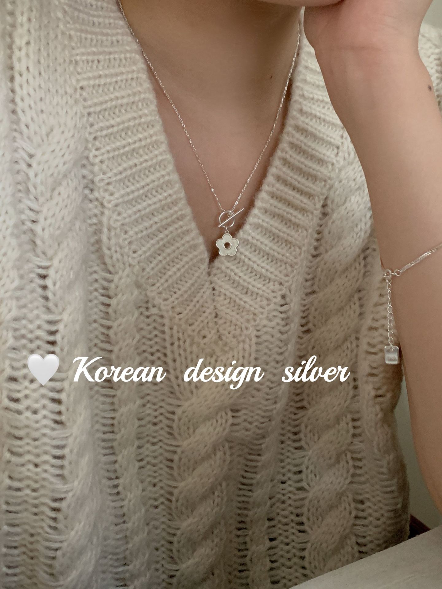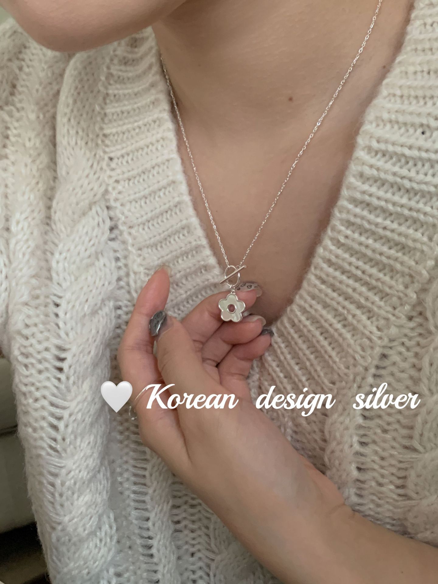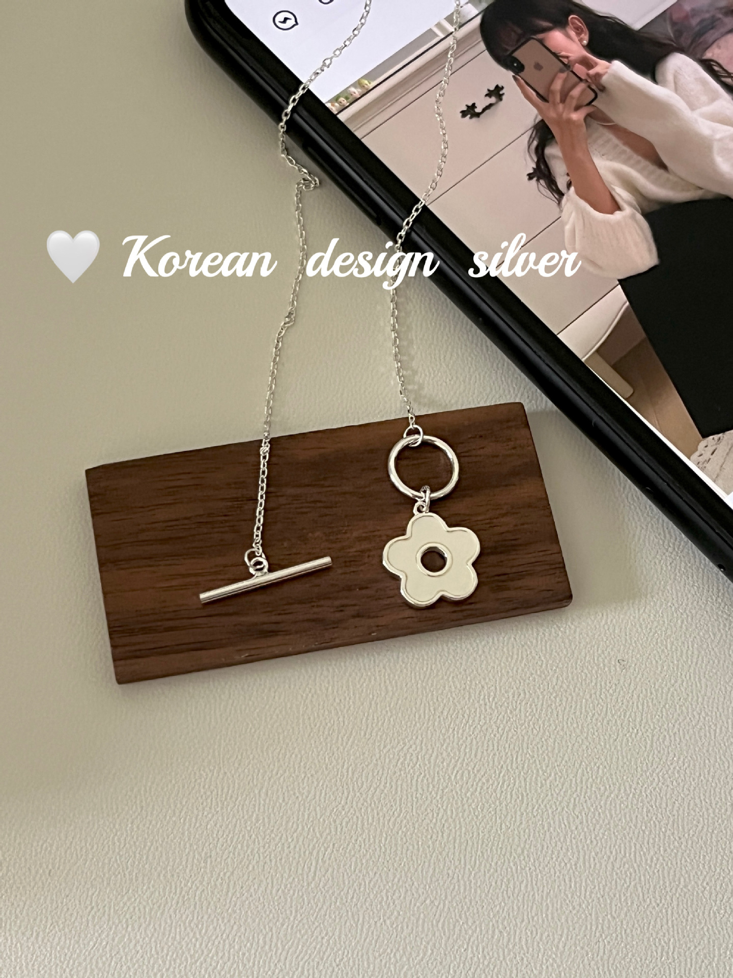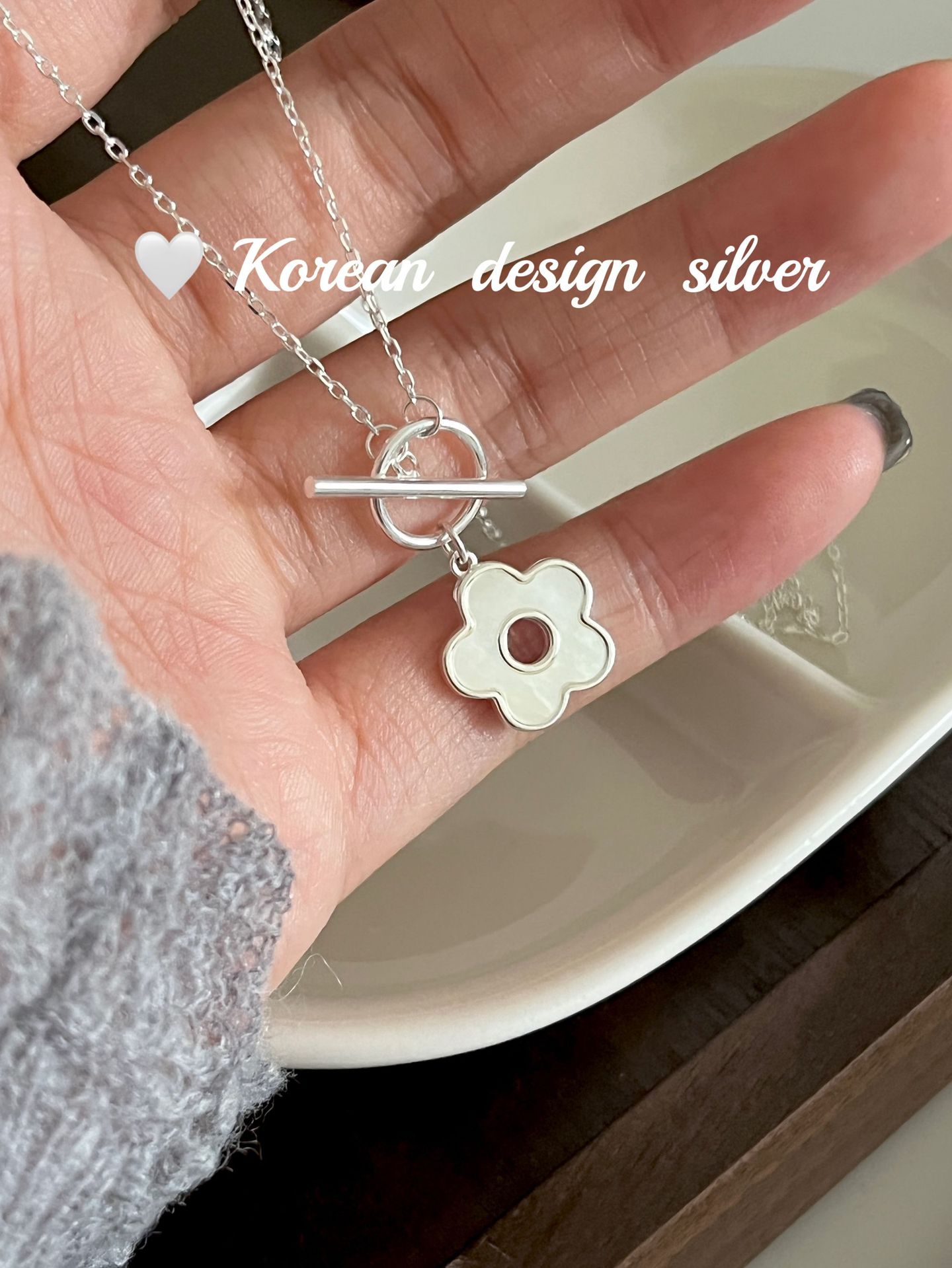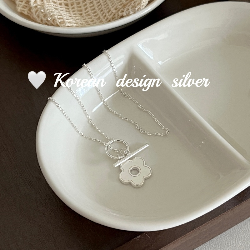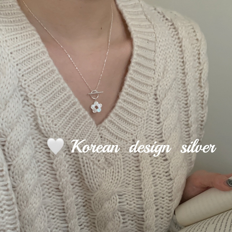 日韩ins风设计饰品 S925纯银项链梅花贝壳OT扣项链小众百搭高级感