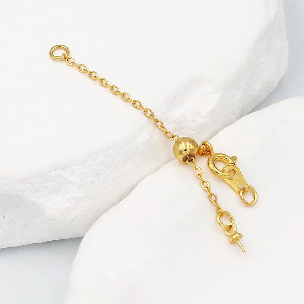 保色14K包金伸缩可调节挂珍珠托延长链桃心吊饰尾链diy饰品加长链