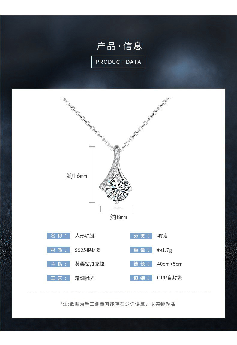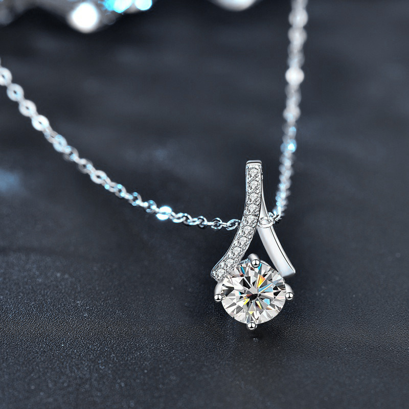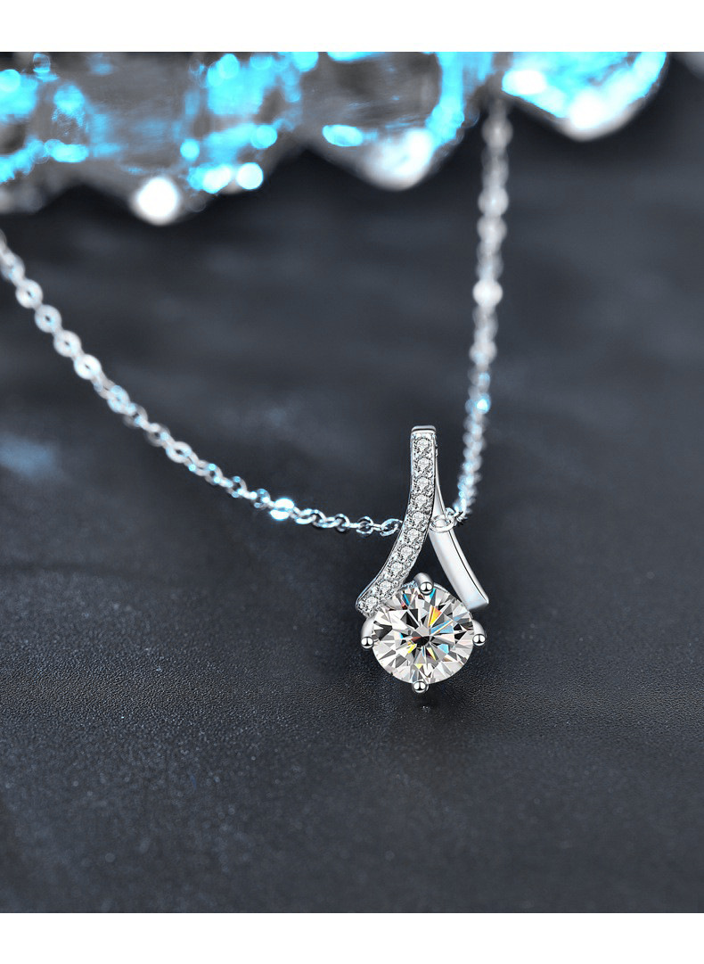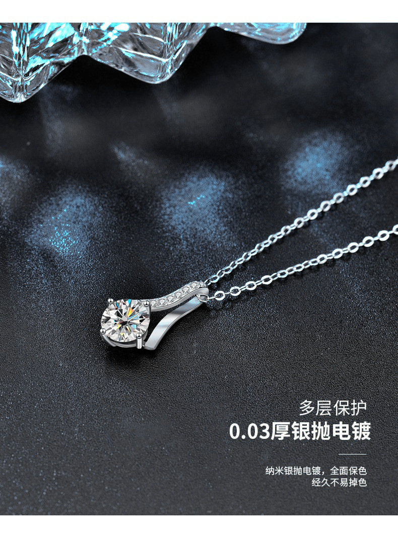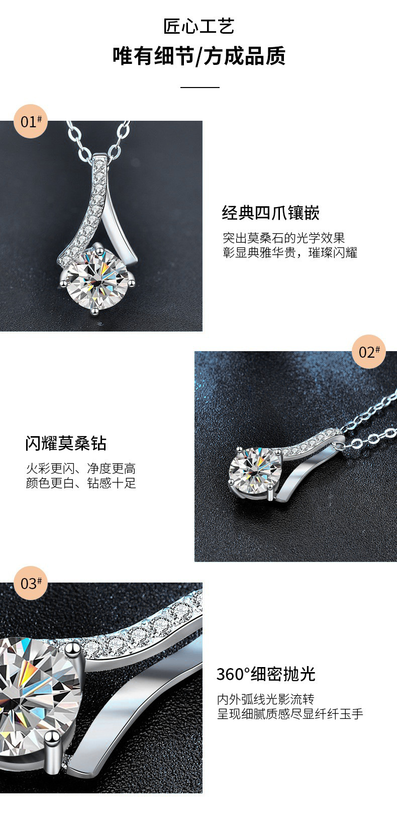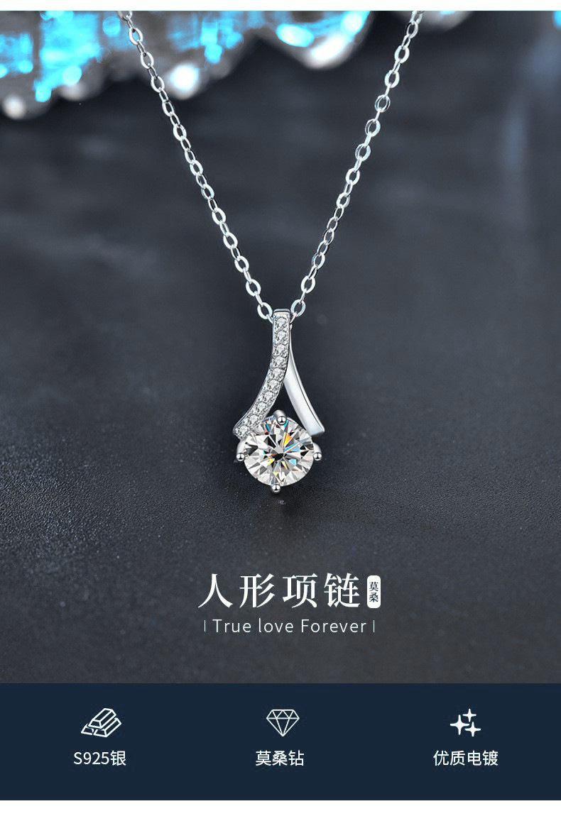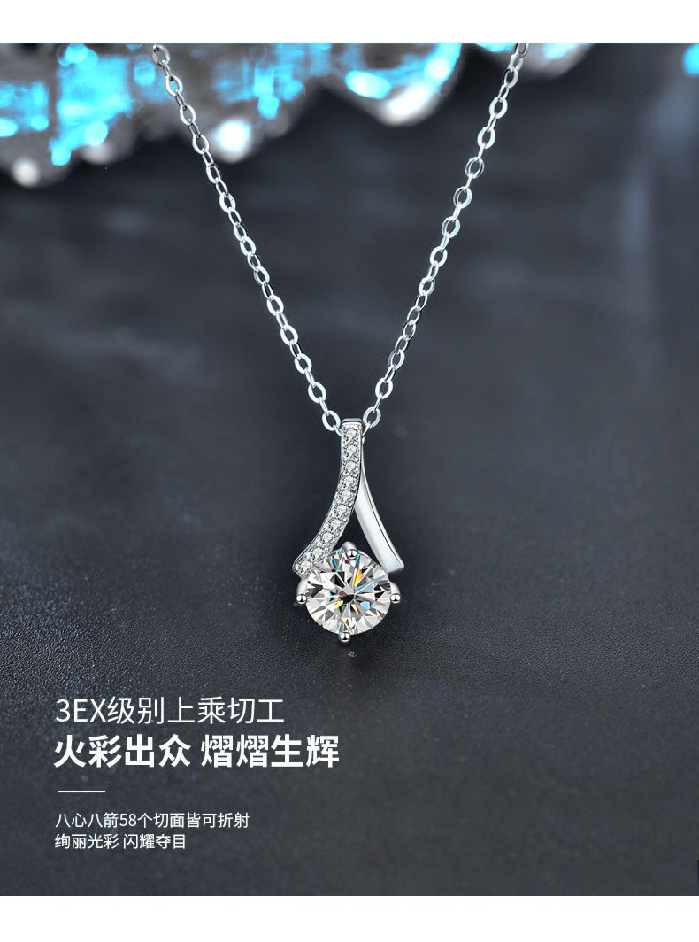 925纯银人字项链批发女1克拉仿真钻石锁骨配饰莫桑钻吊坠饰品送礼