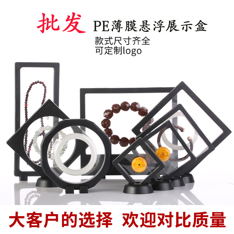 悬浮盒PE薄膜手链展示盒首饰珍珠项链透明展示架饰品戒指收纳盒子