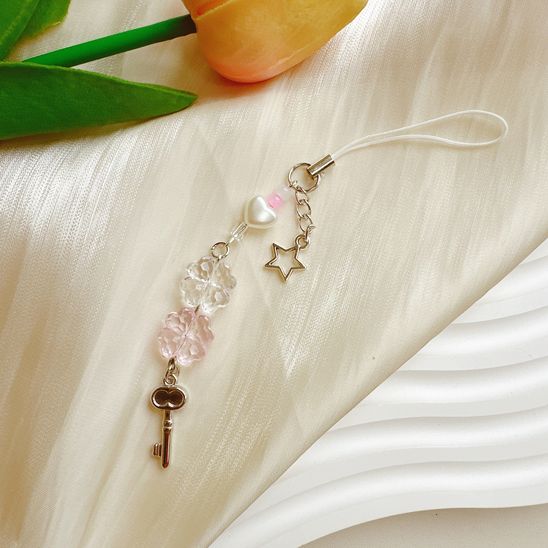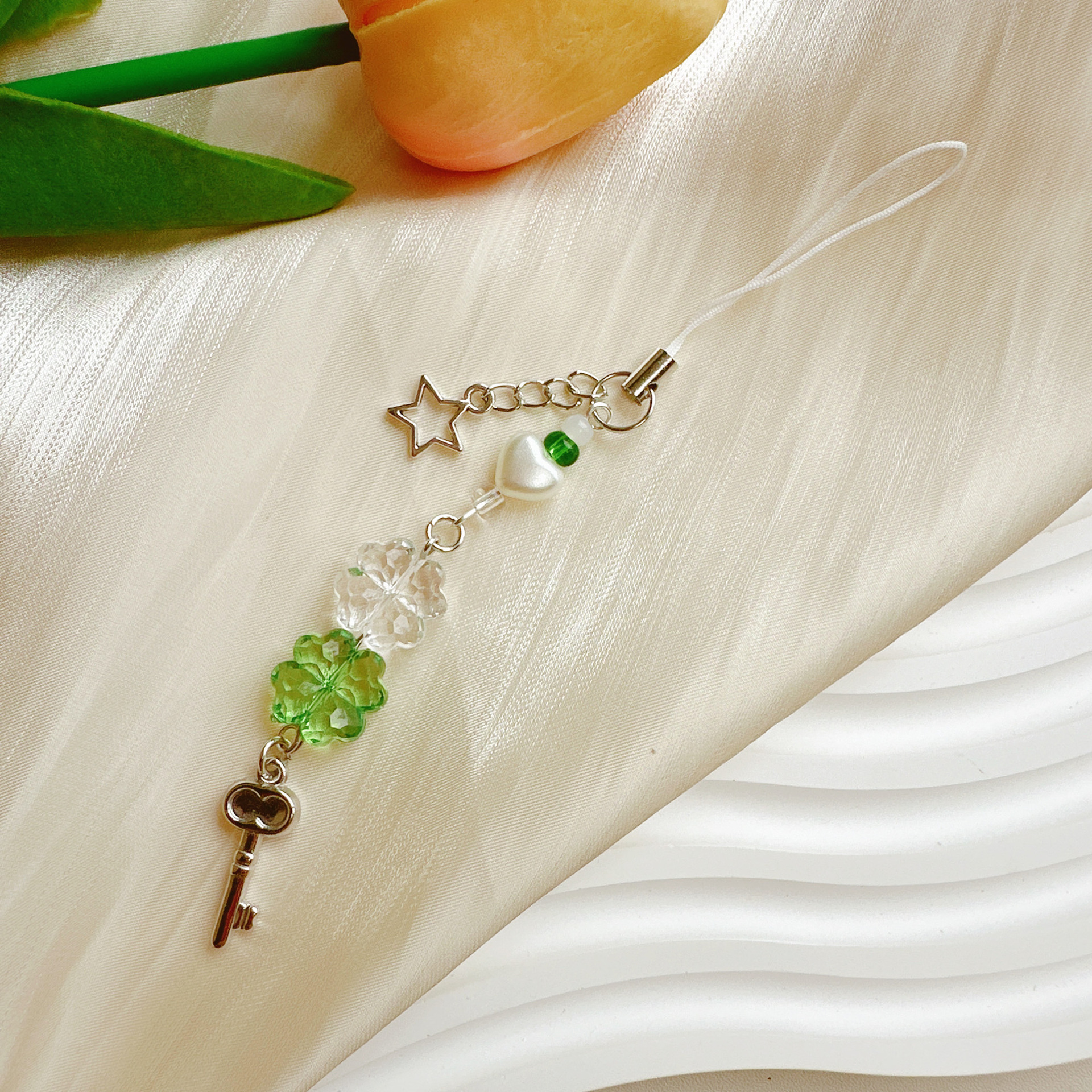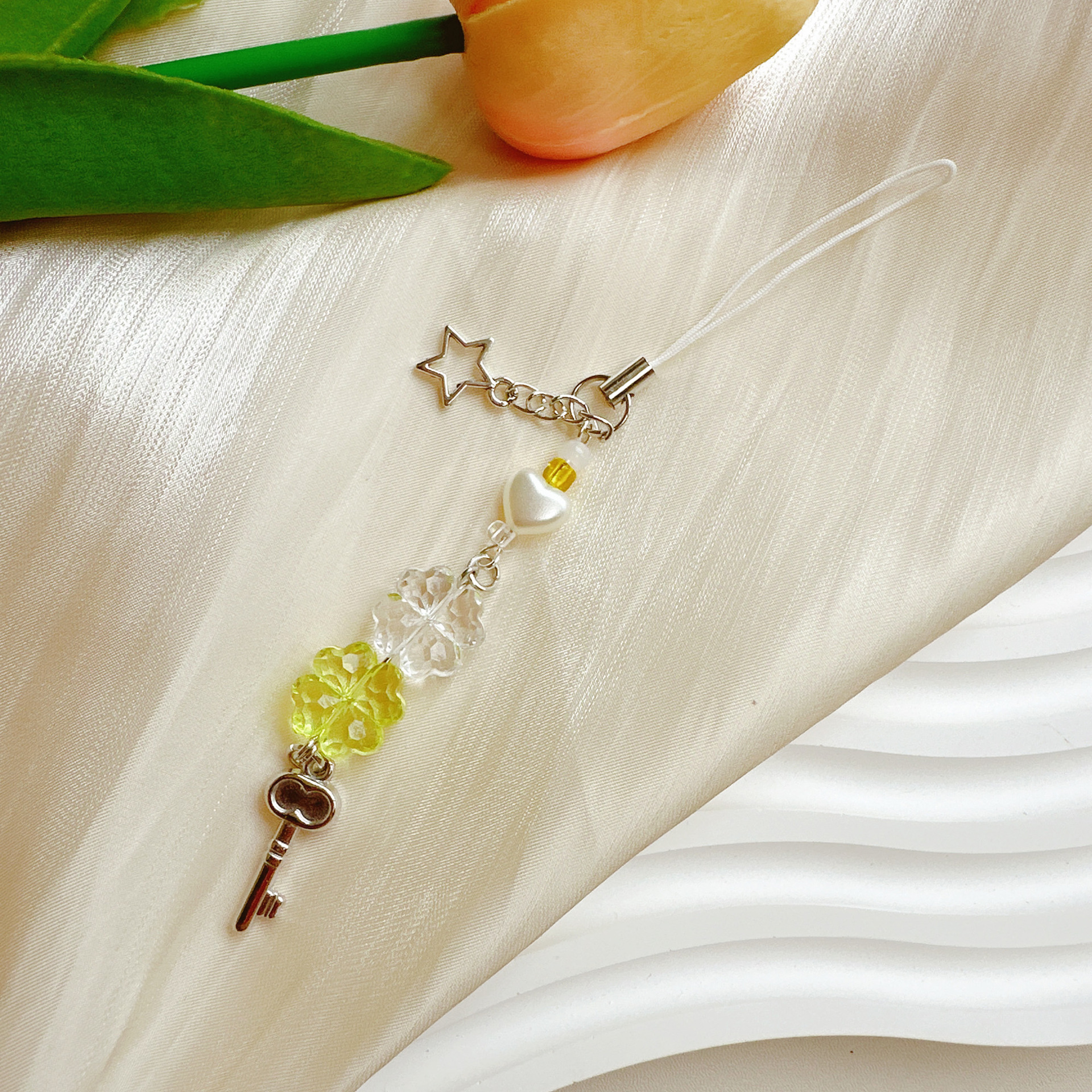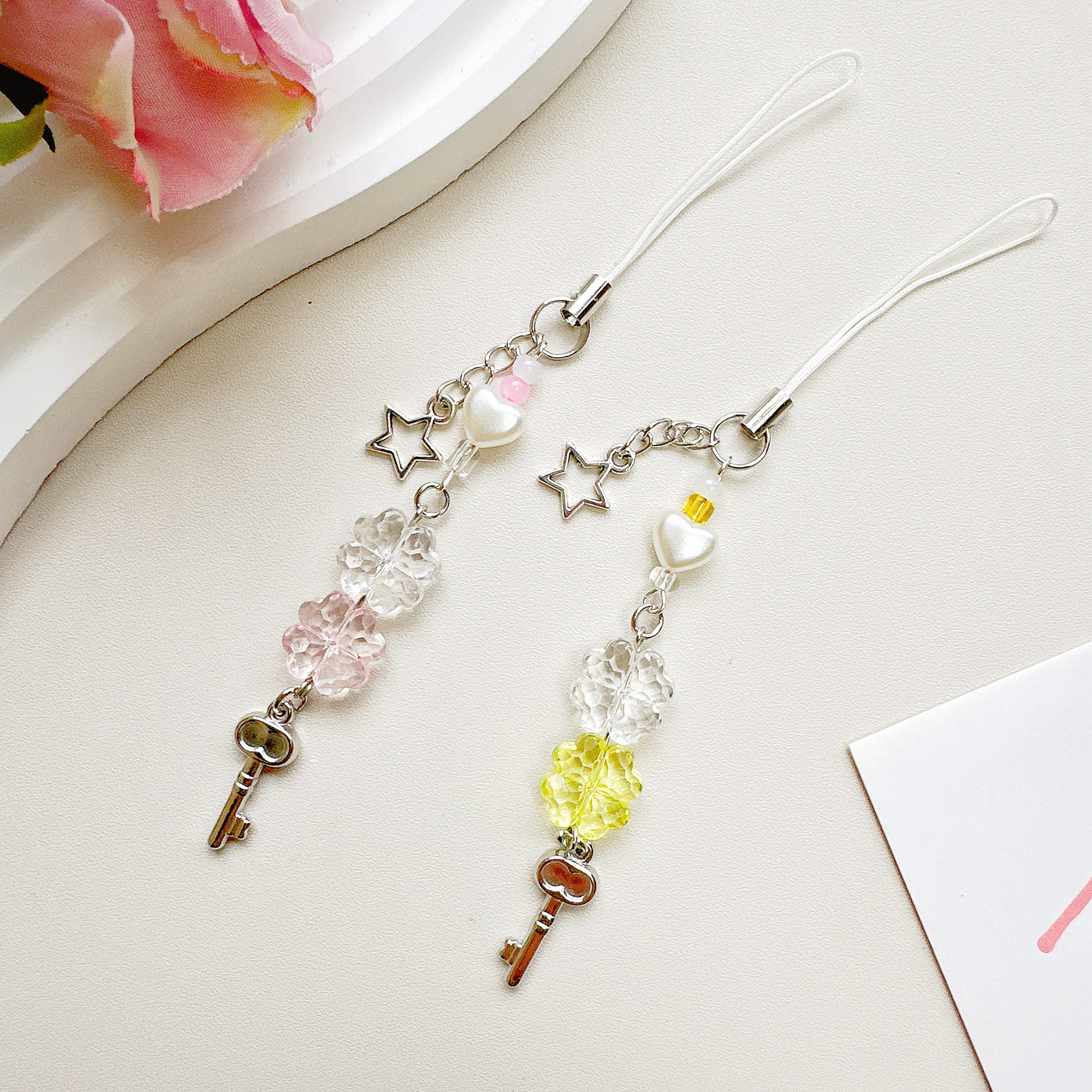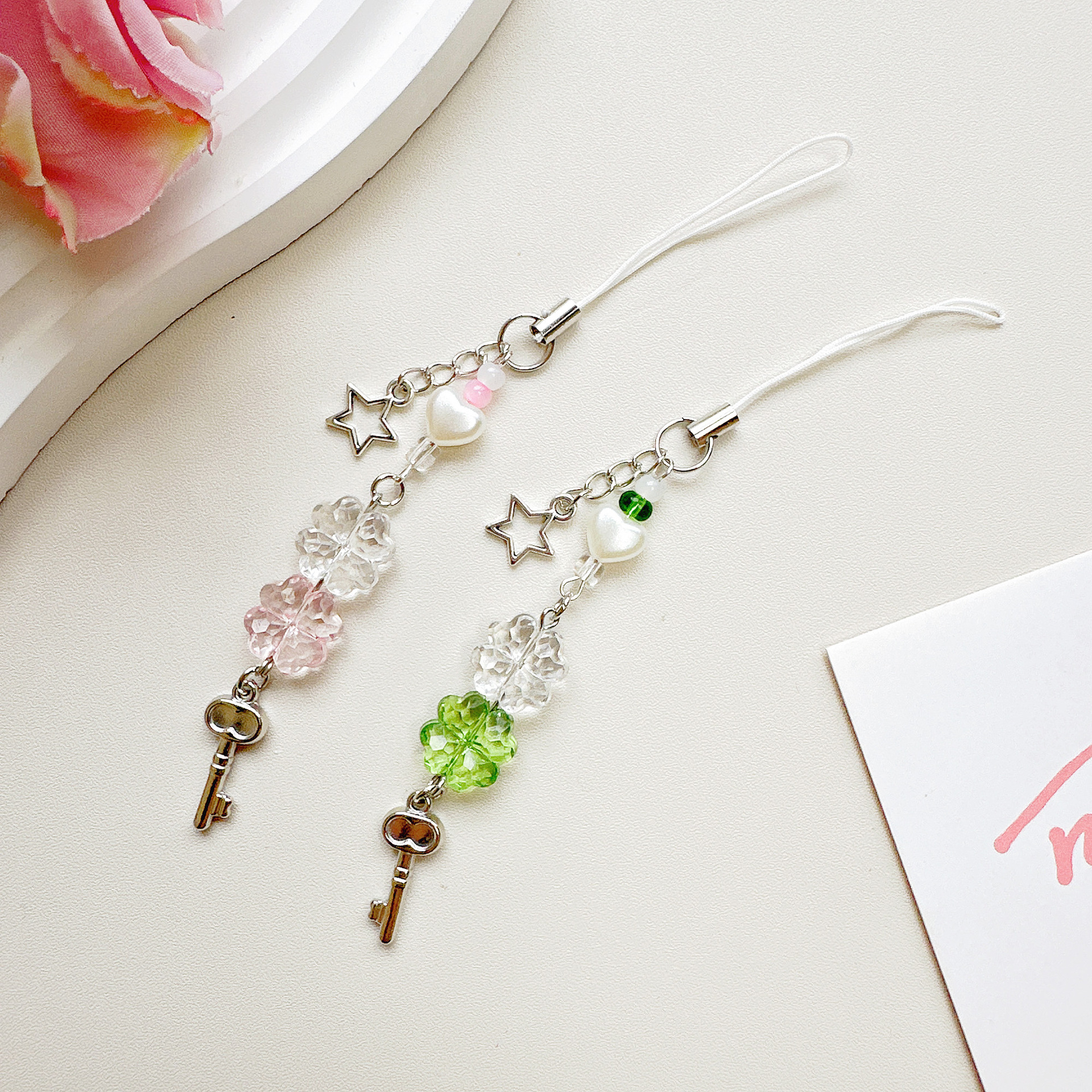 新款甜美少女合金四叶草小钥匙咕本挂件包包挂扣手机链挂绳装饰品