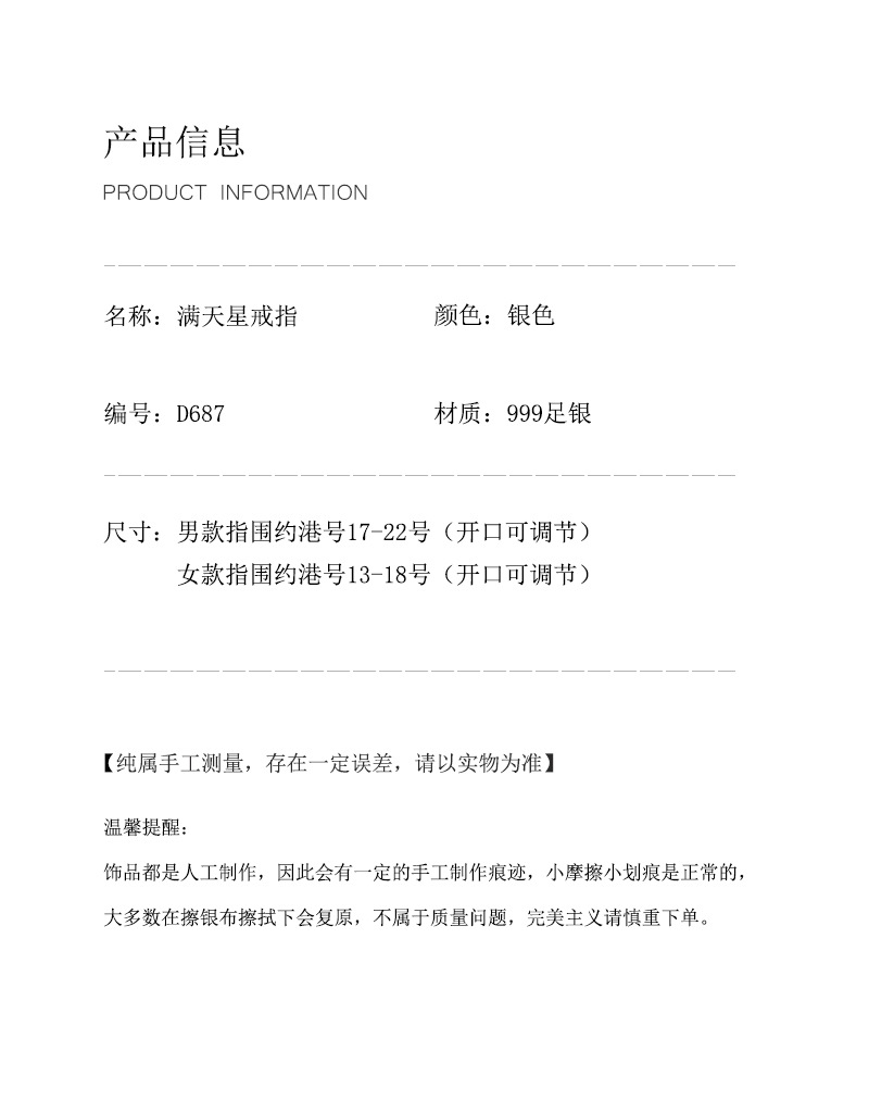 S999足银满天星河情侣对戒轻奢高级感波光粼粼戒指小众设计手饰品