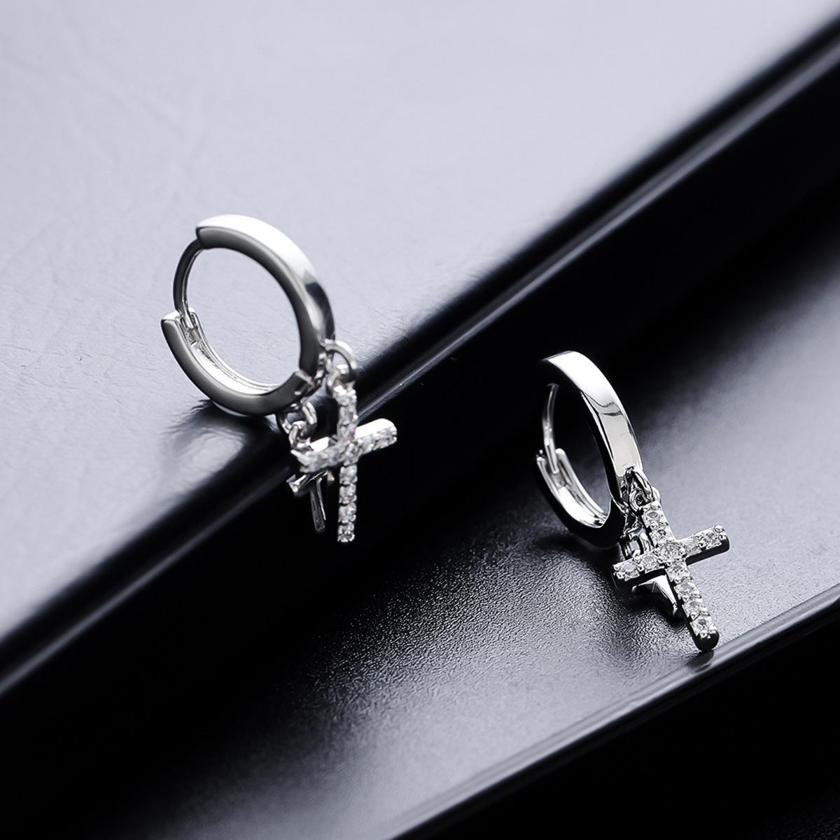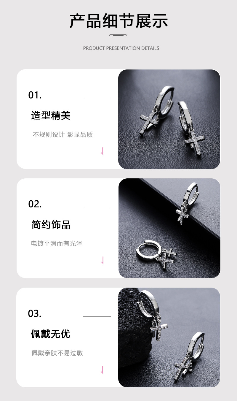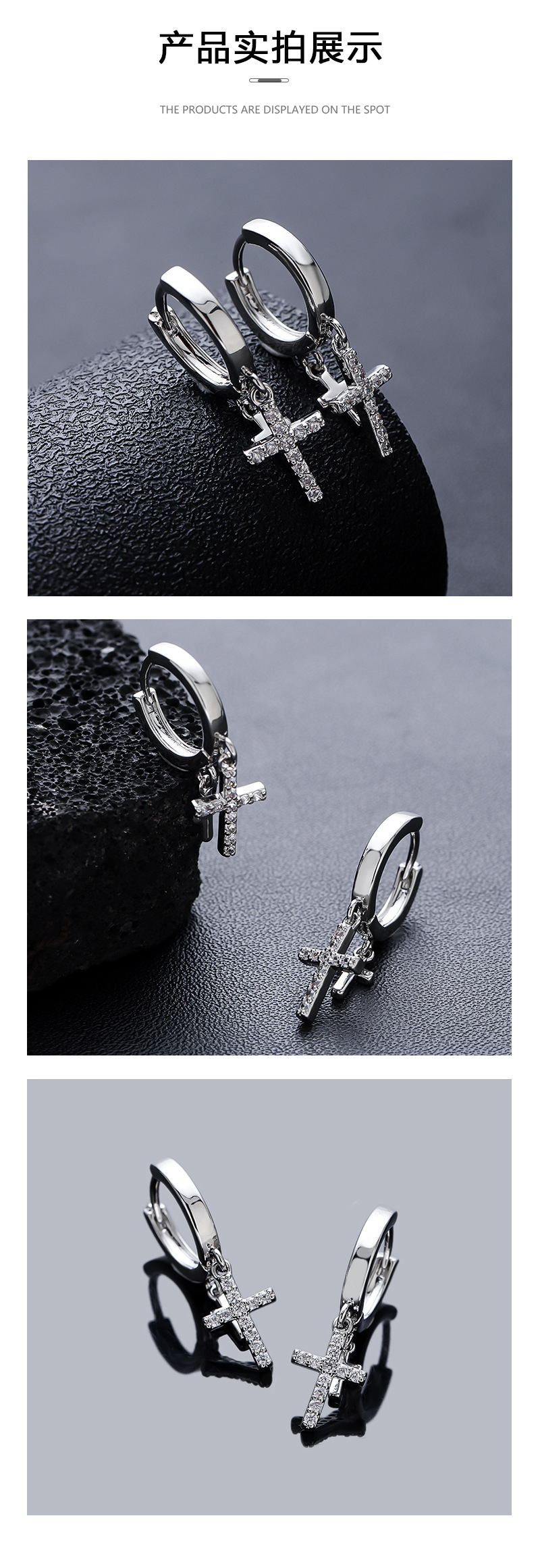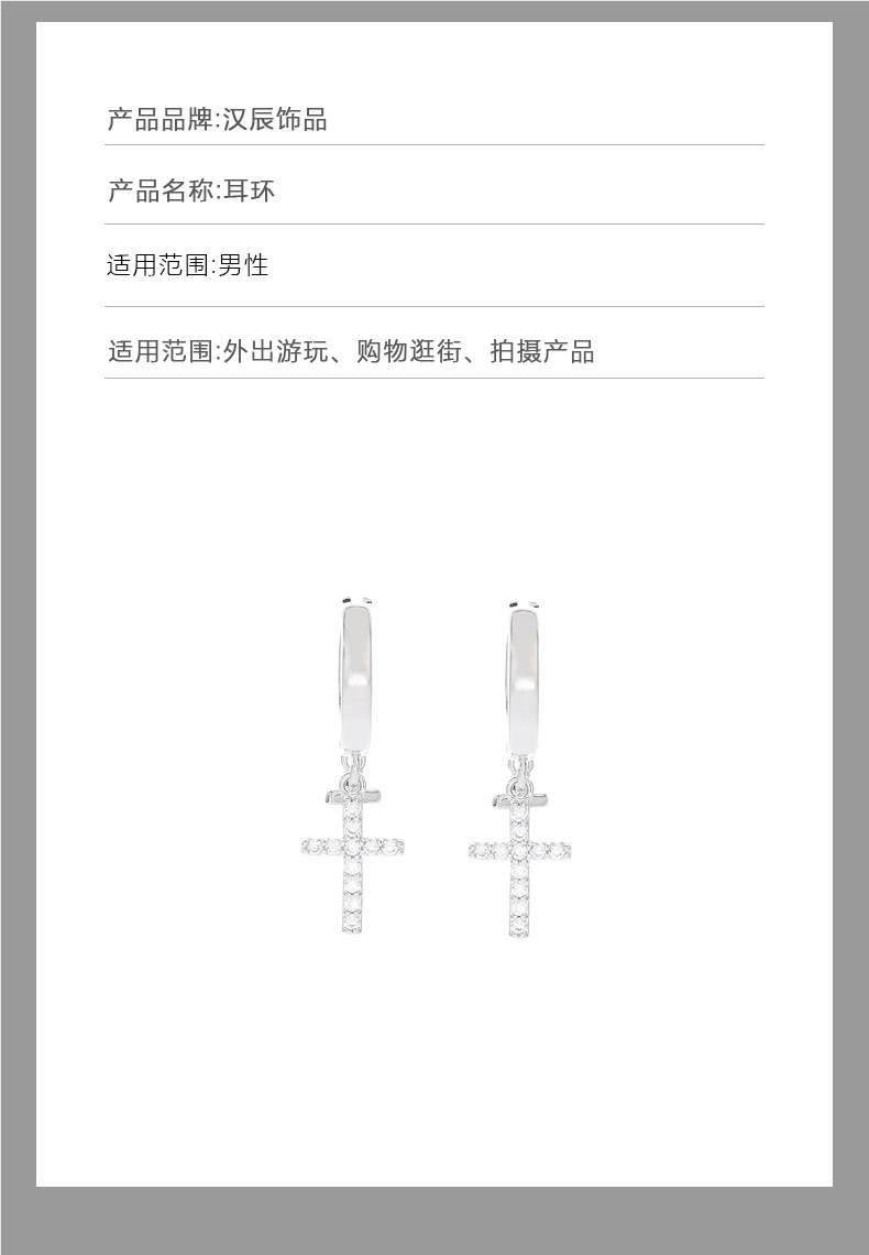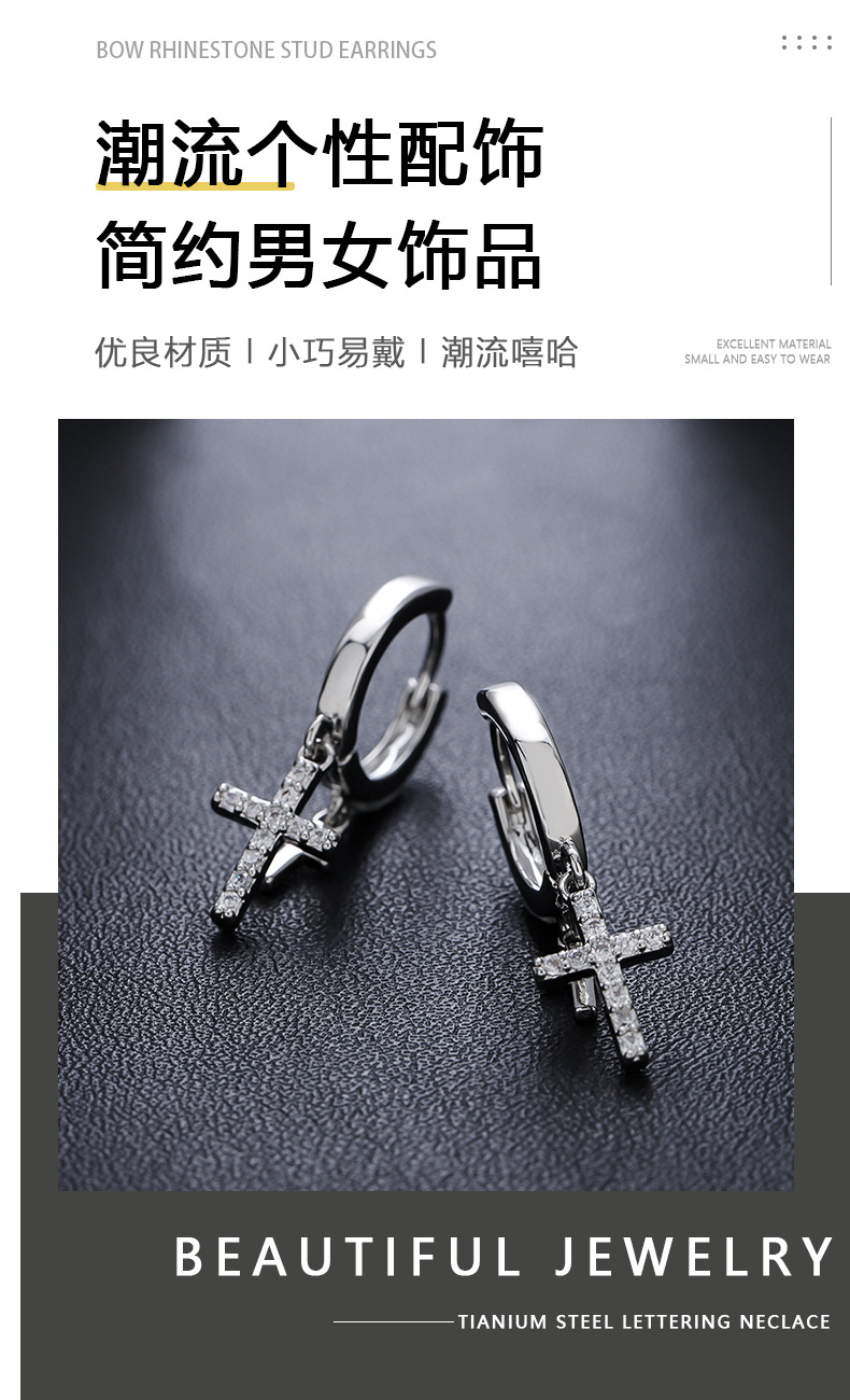 耳环男双十字架镶钻高级感百搭嘻哈耳饰女夏季简约配饰饰品