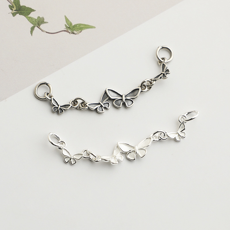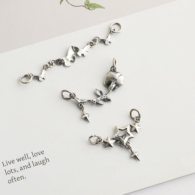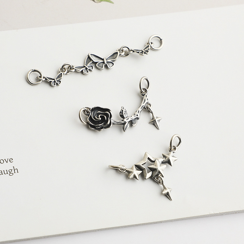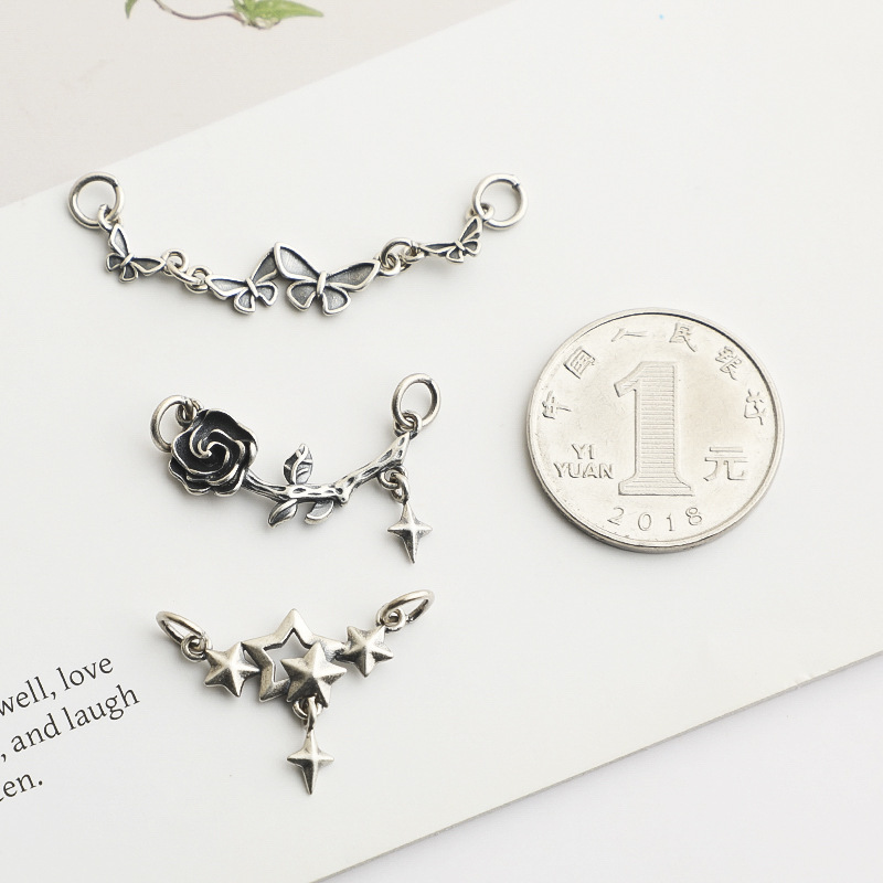 S925纯银蝴蝶玫瑰双环吊坠DIY串珠编绳手链项链星星挂件饰品配件