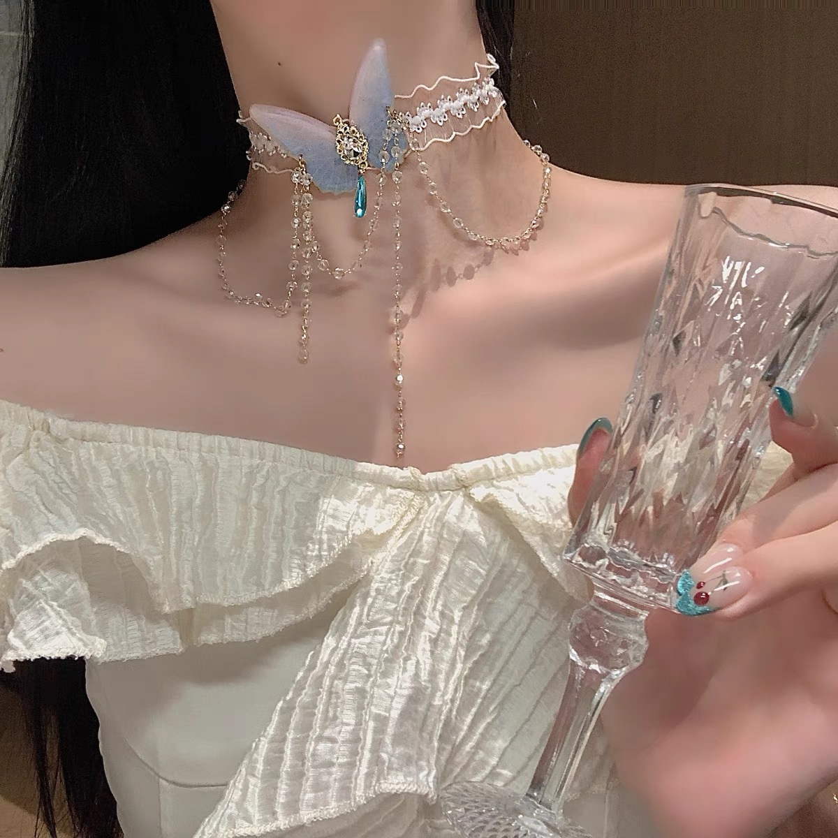 超仙蕾丝蝴蝶流苏腿链女ins风个性设计腿环森系高级感身体链饰品