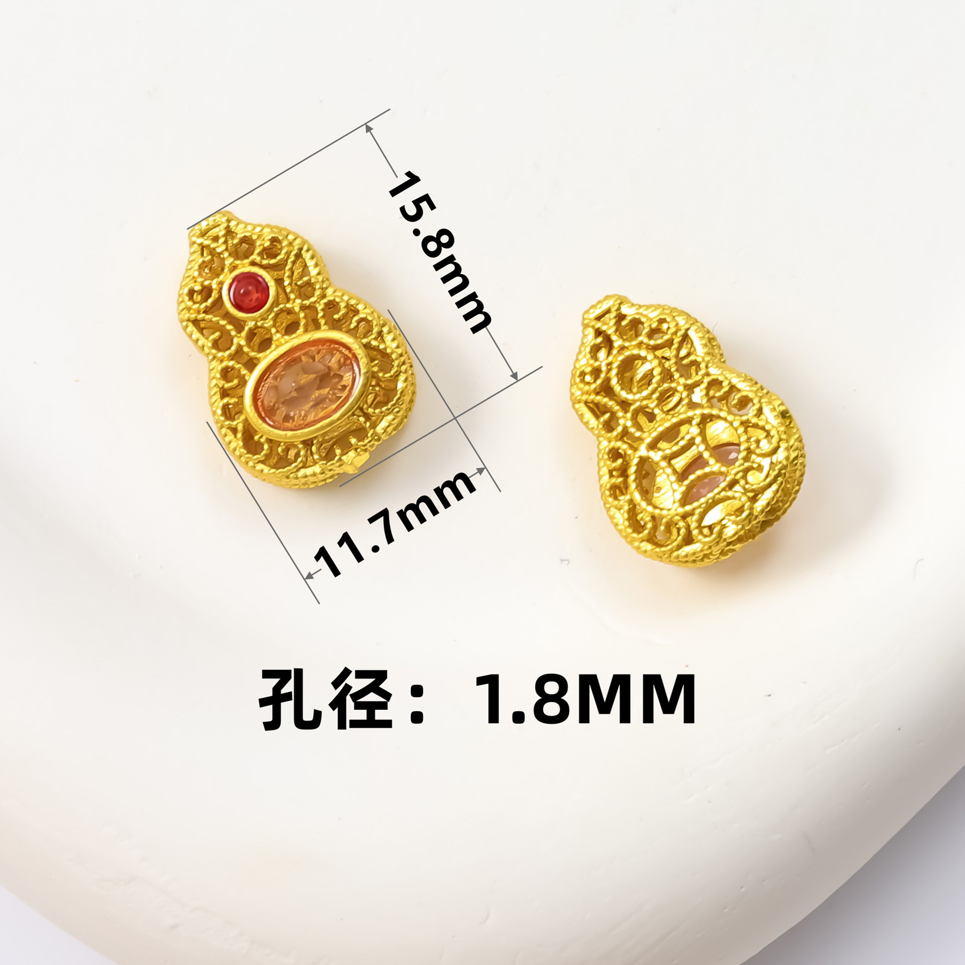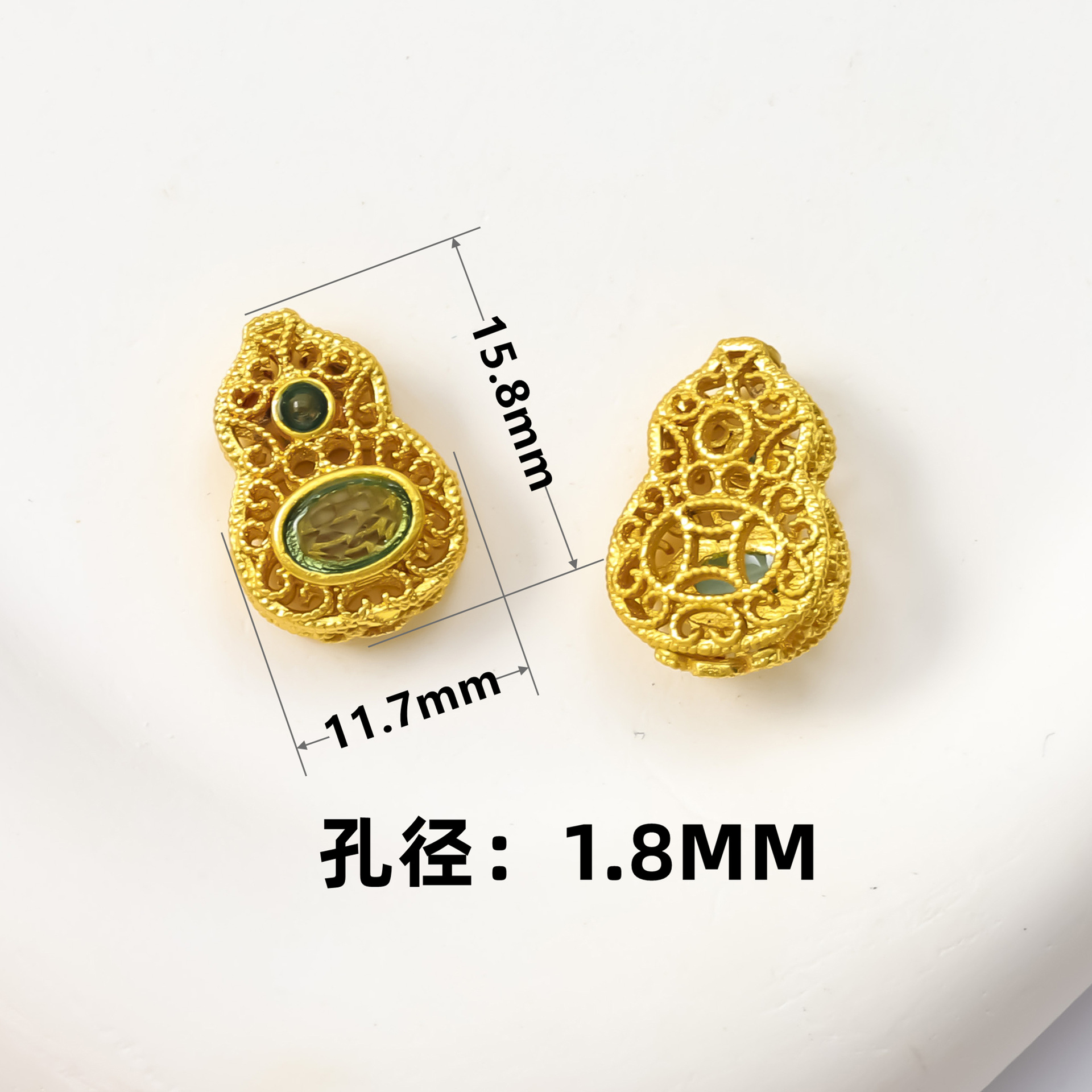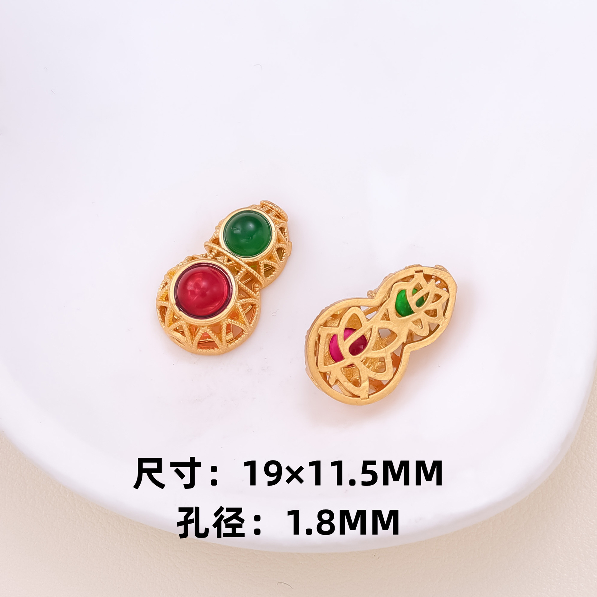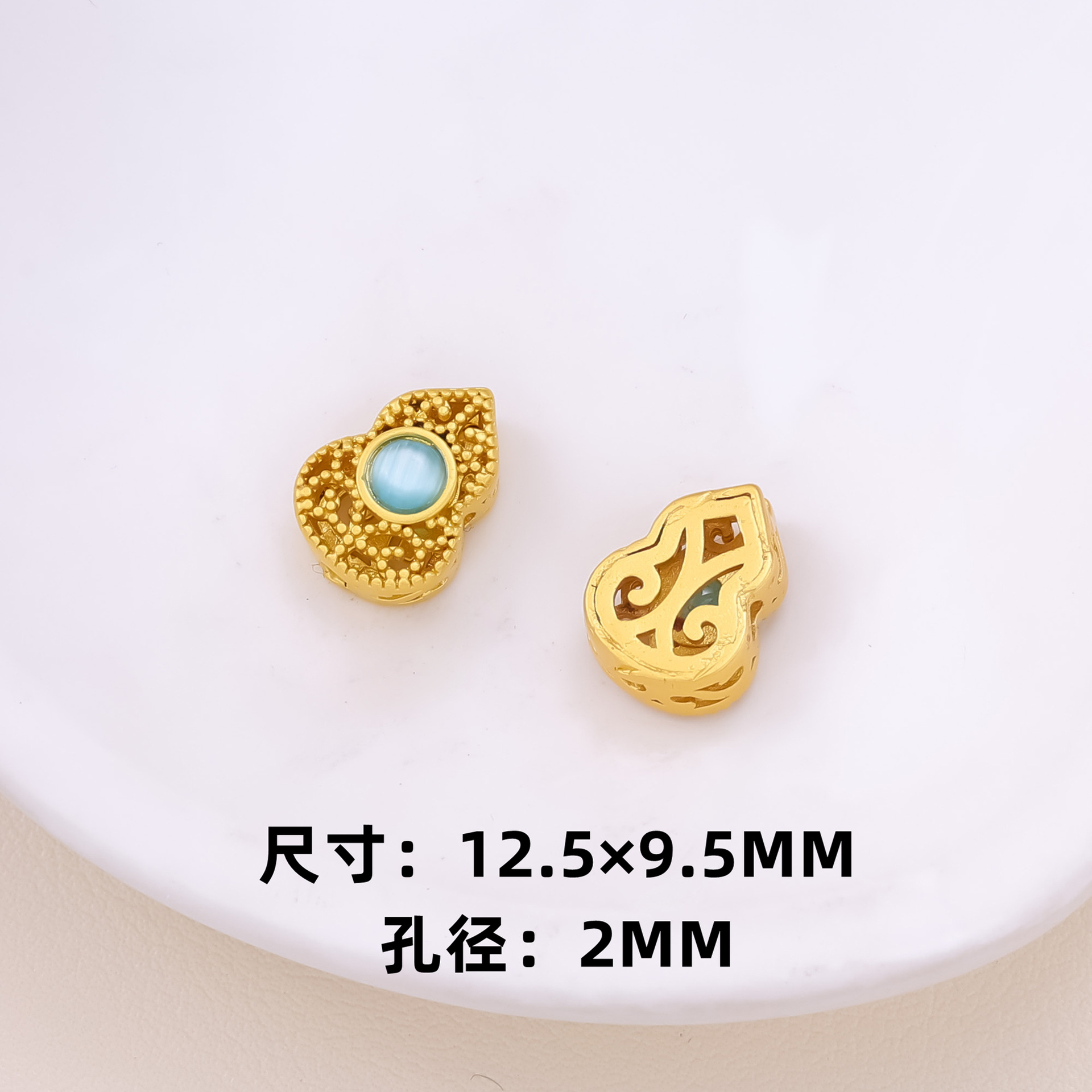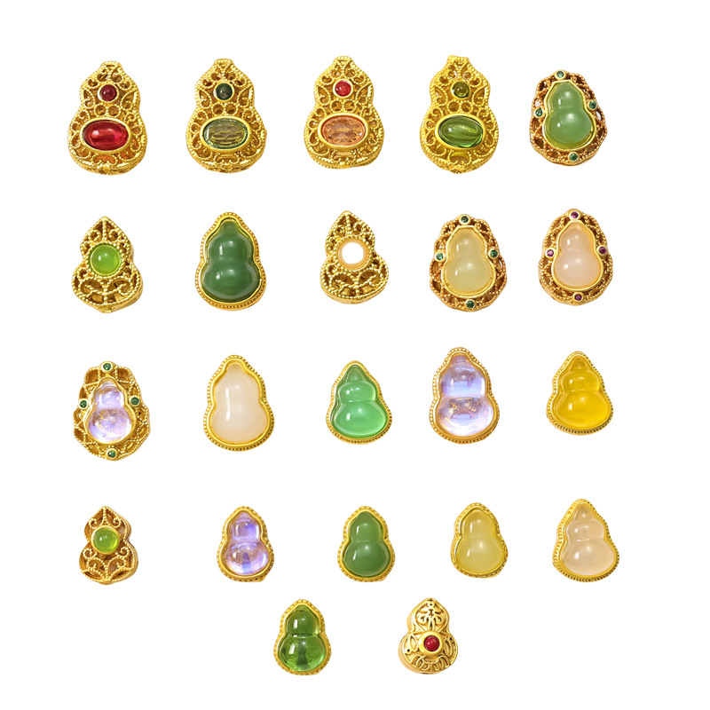 古法沙金葫芦隔珠戒面镶嵌玉石通孔饰品配饰diy手工手链项链配件