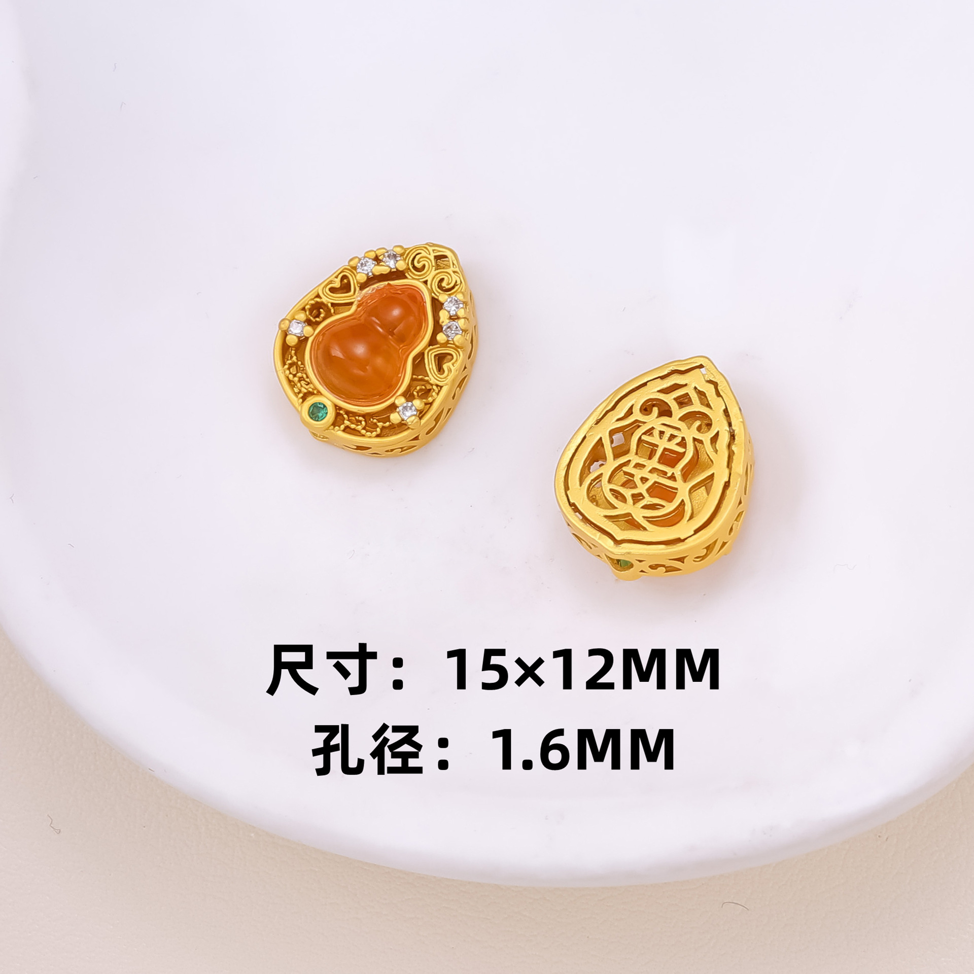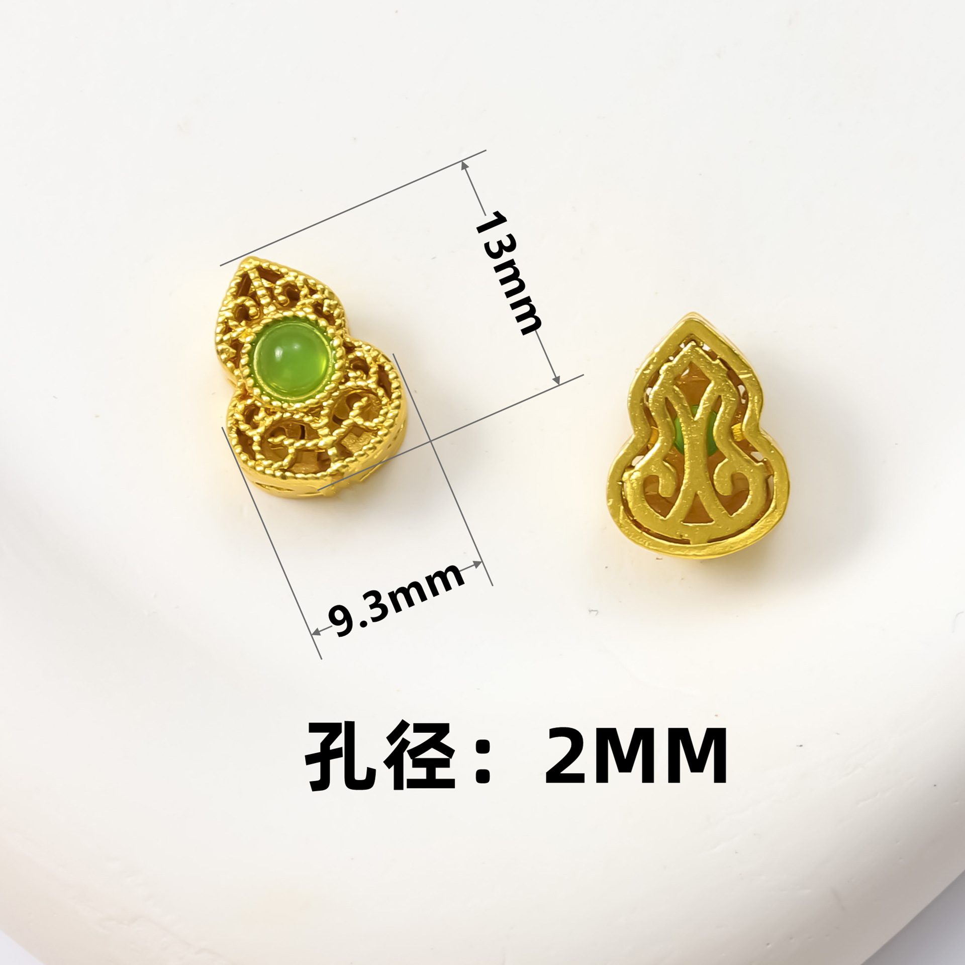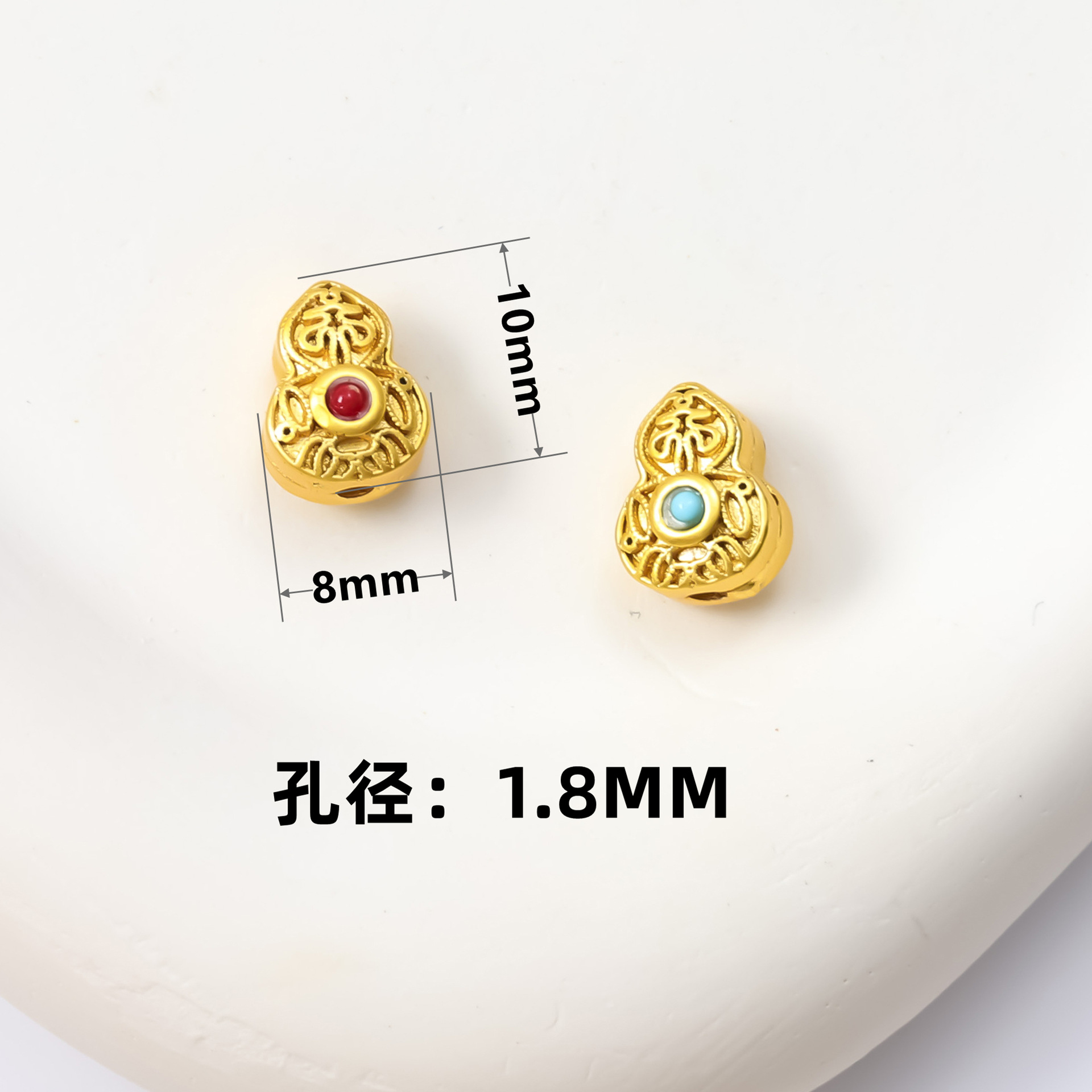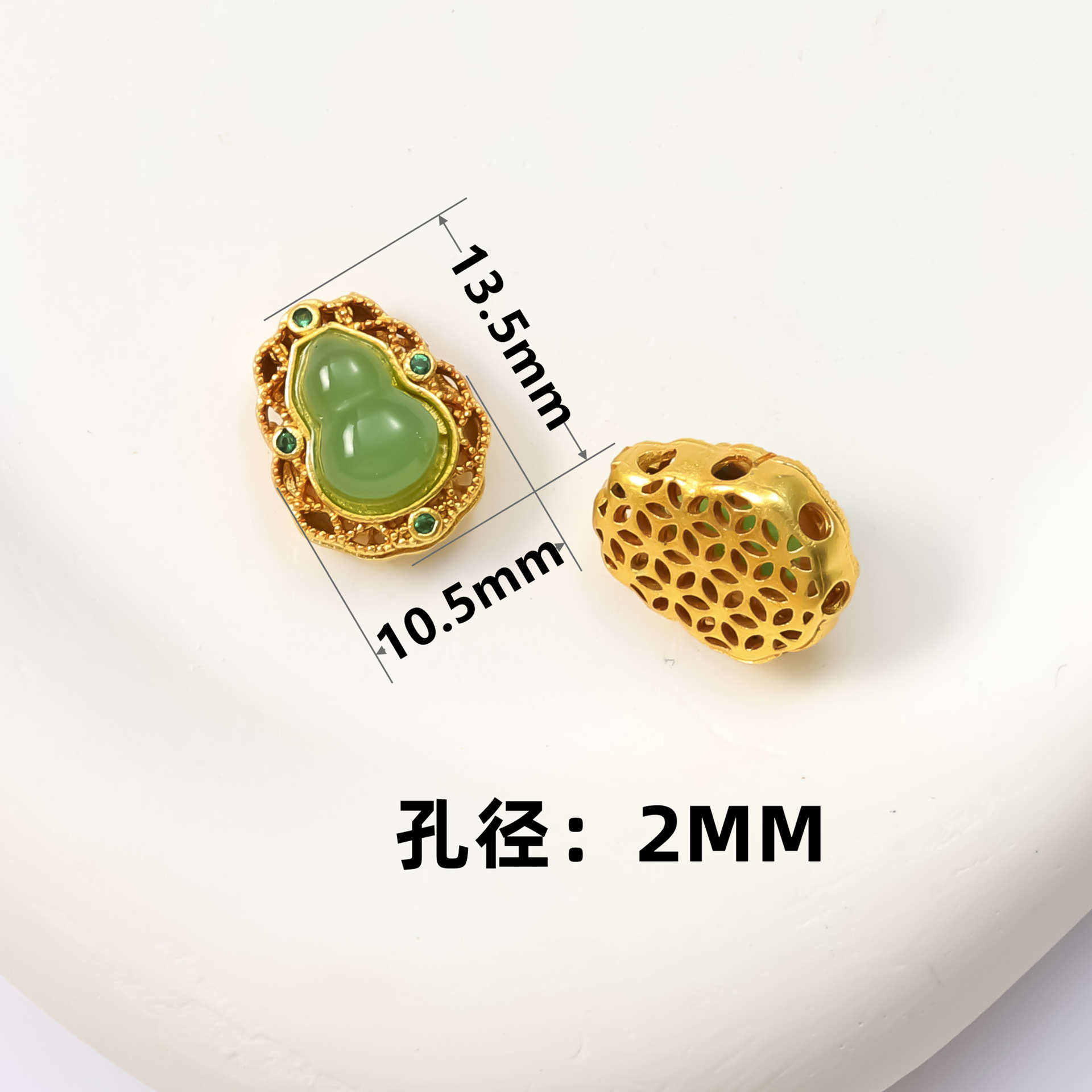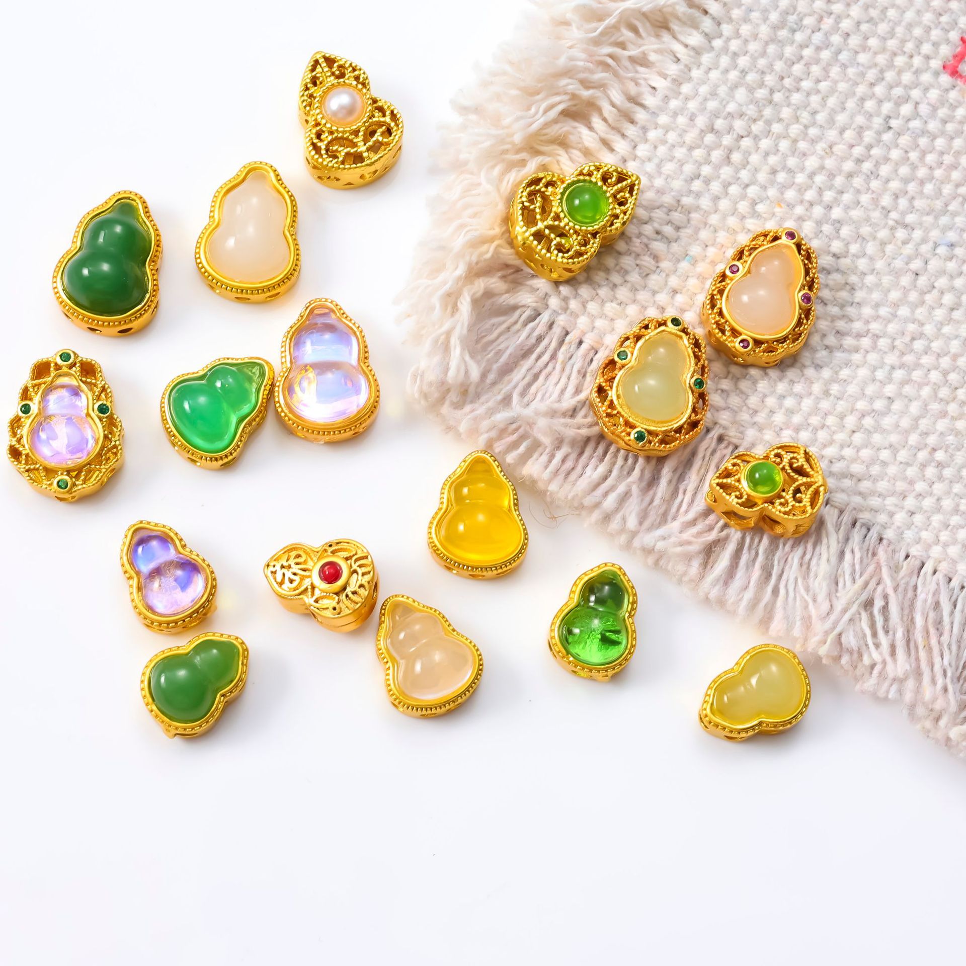 古法沙金葫芦隔珠戒面镶嵌玉石通孔饰品配饰diy手工手链项链配件