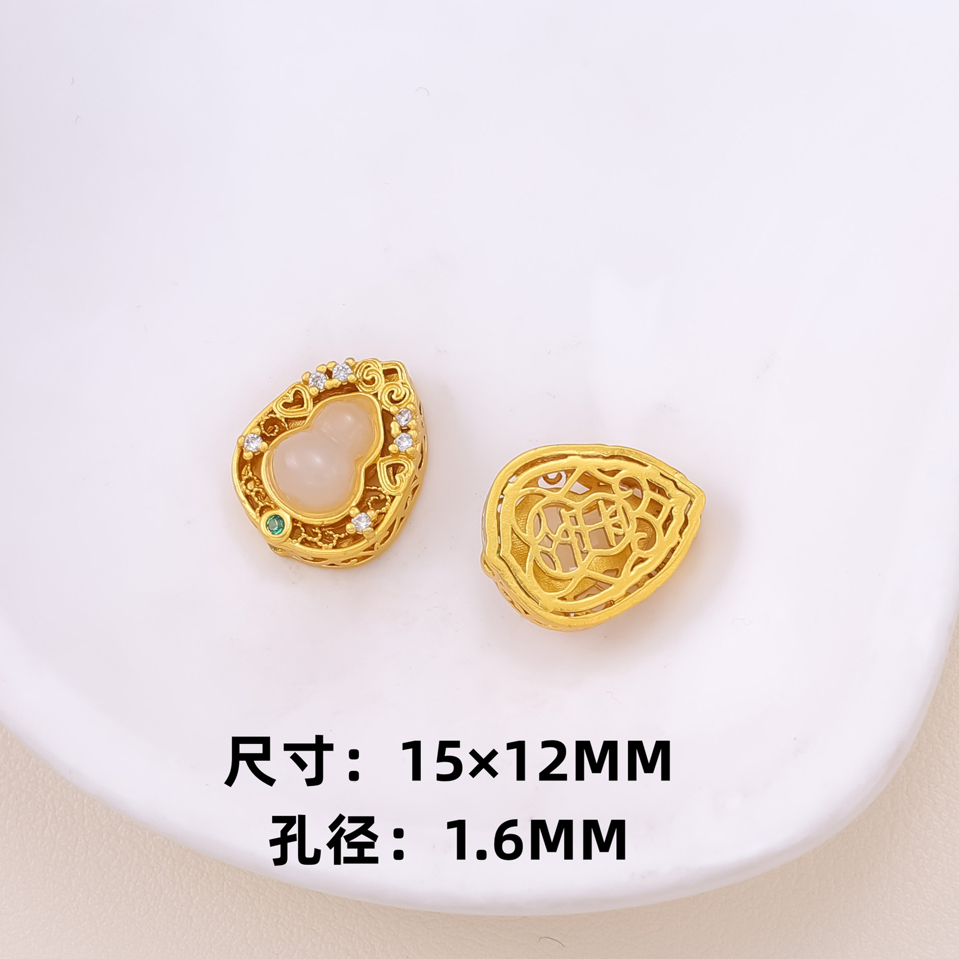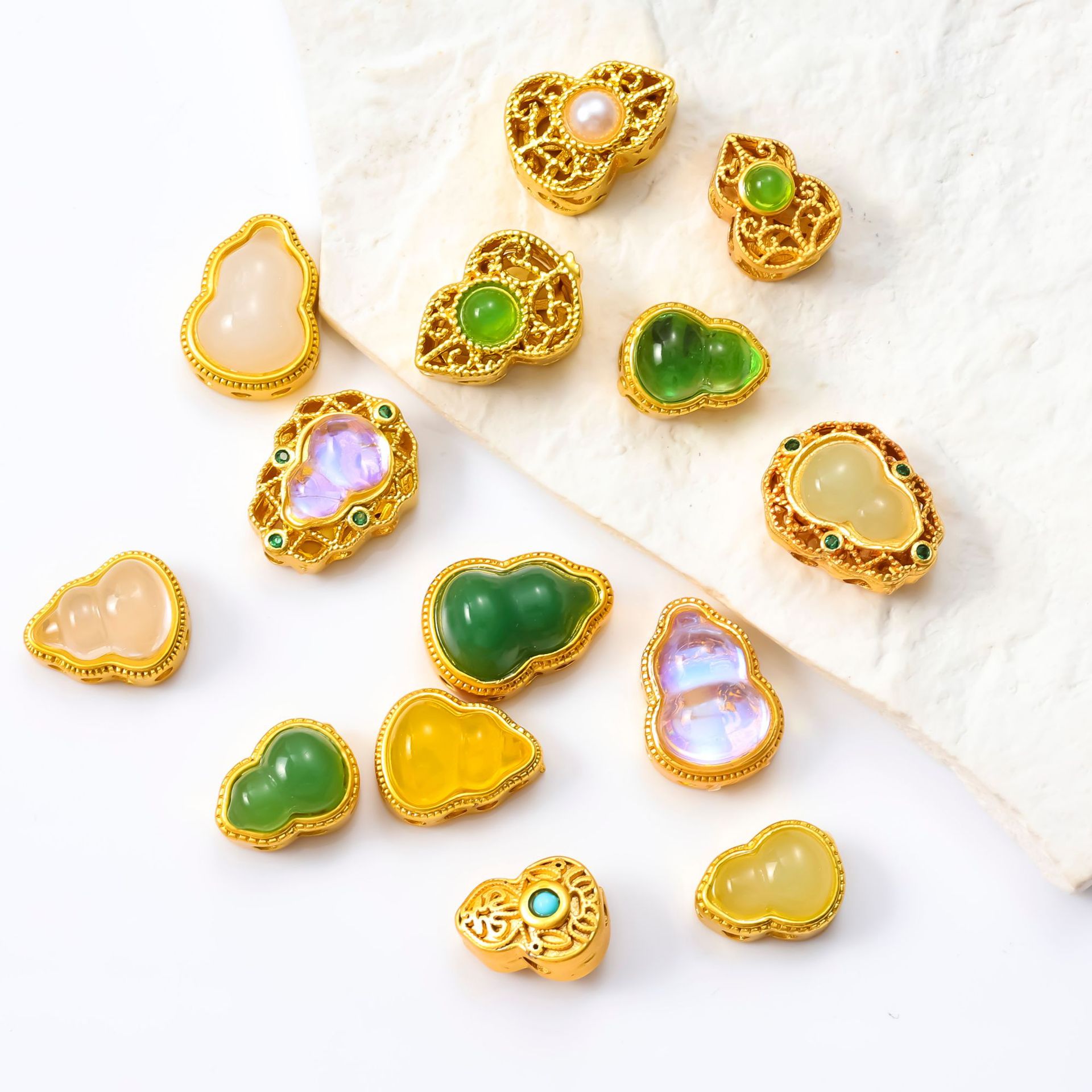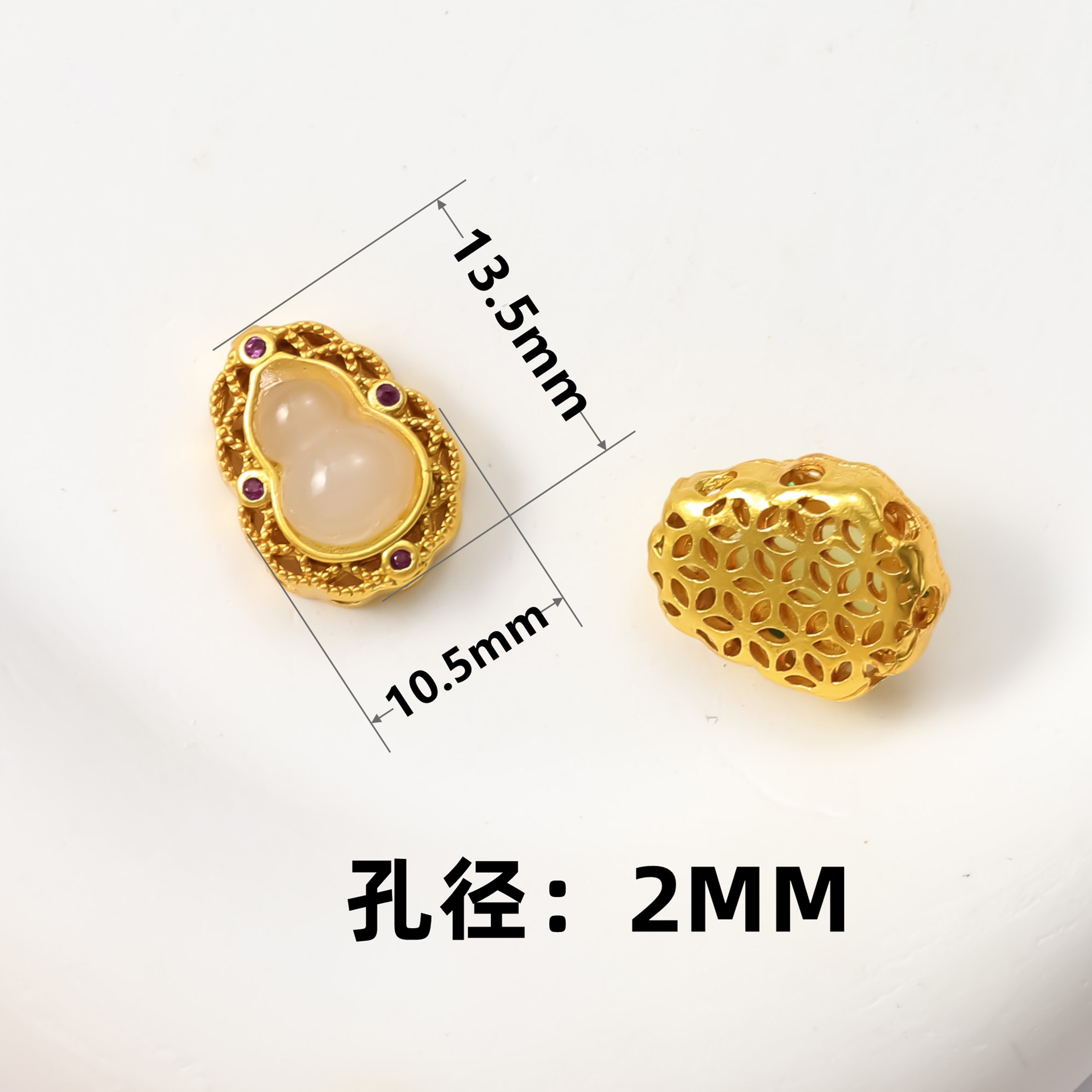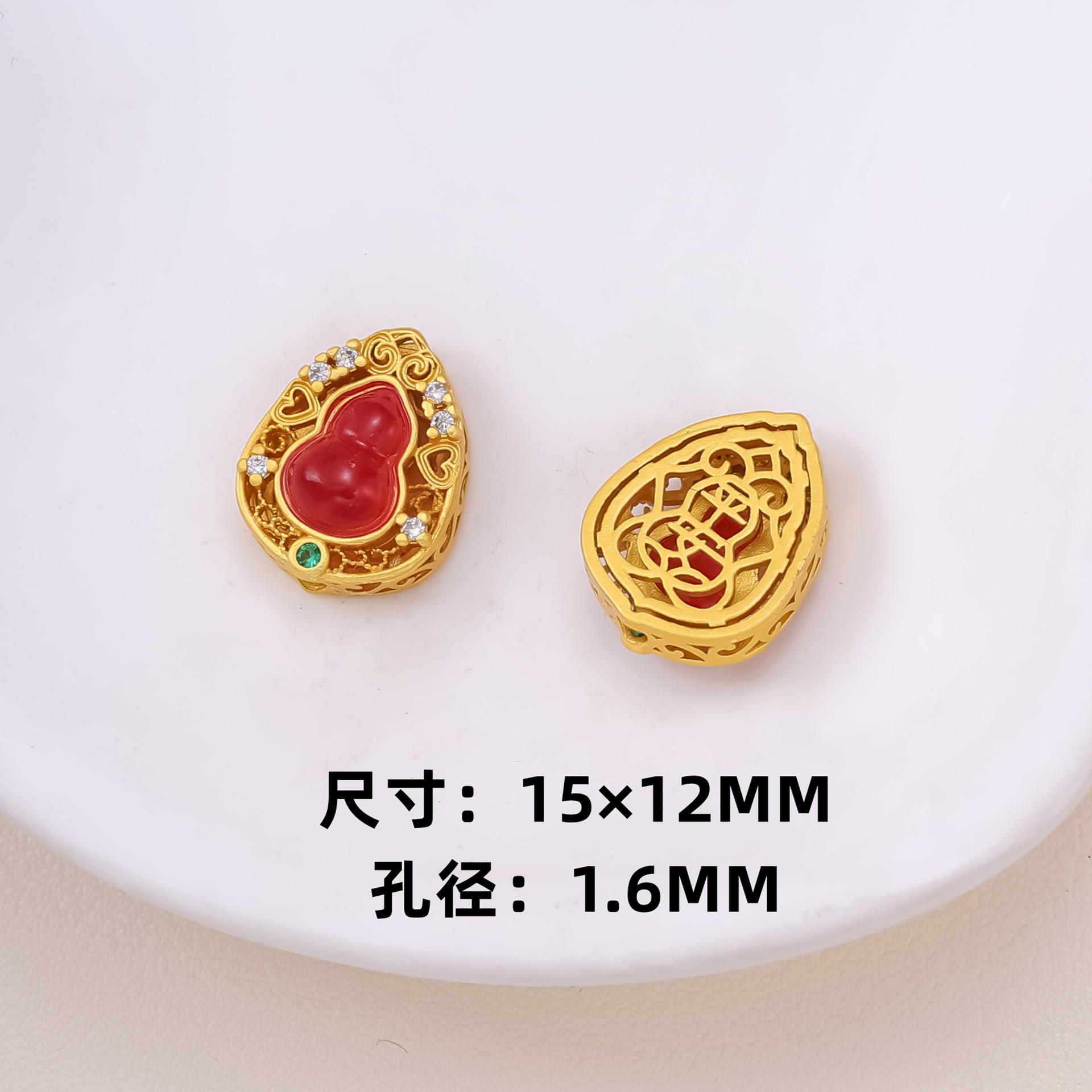 古法沙金葫芦隔珠戒面镶嵌玉石通孔饰品配饰diy手工手链项链配件