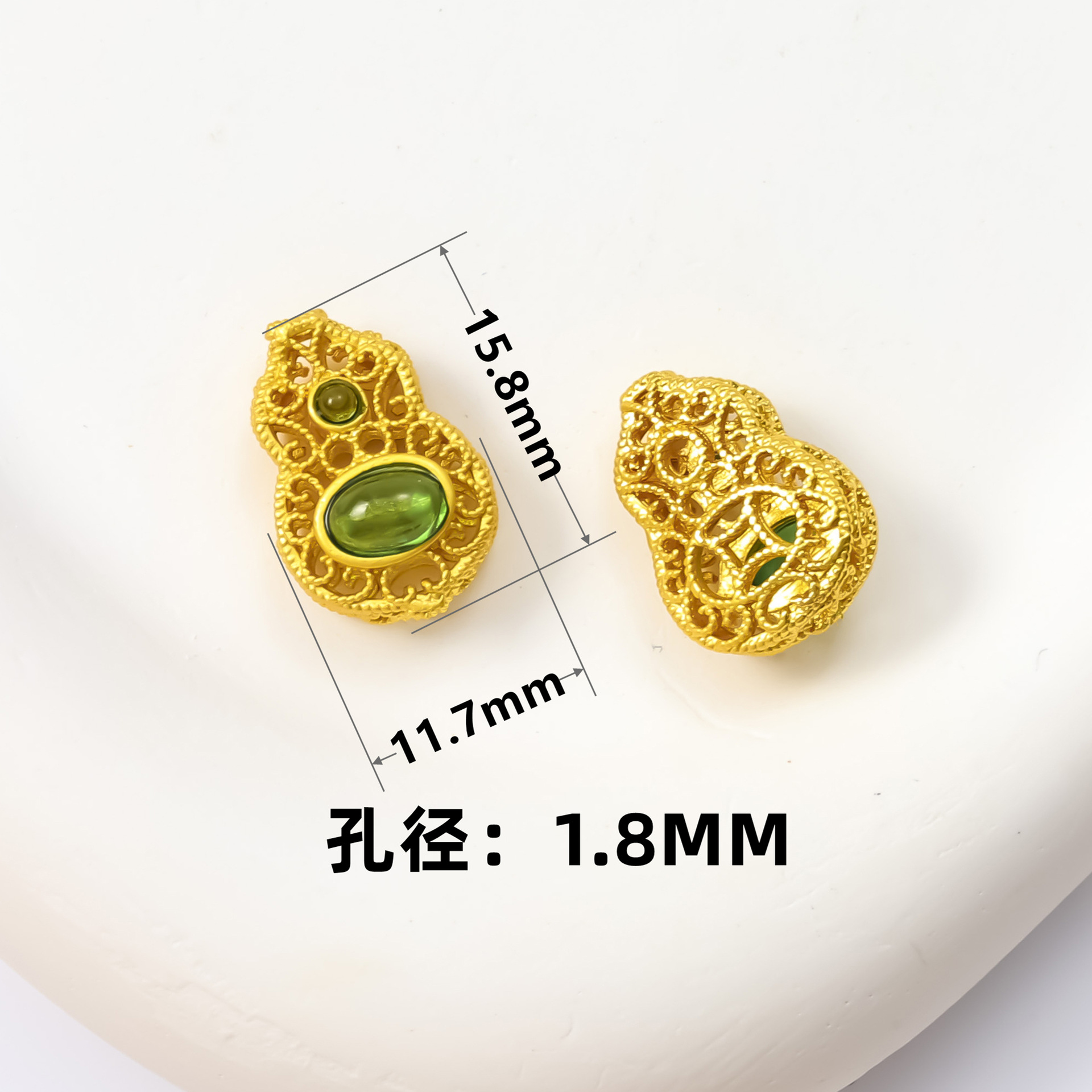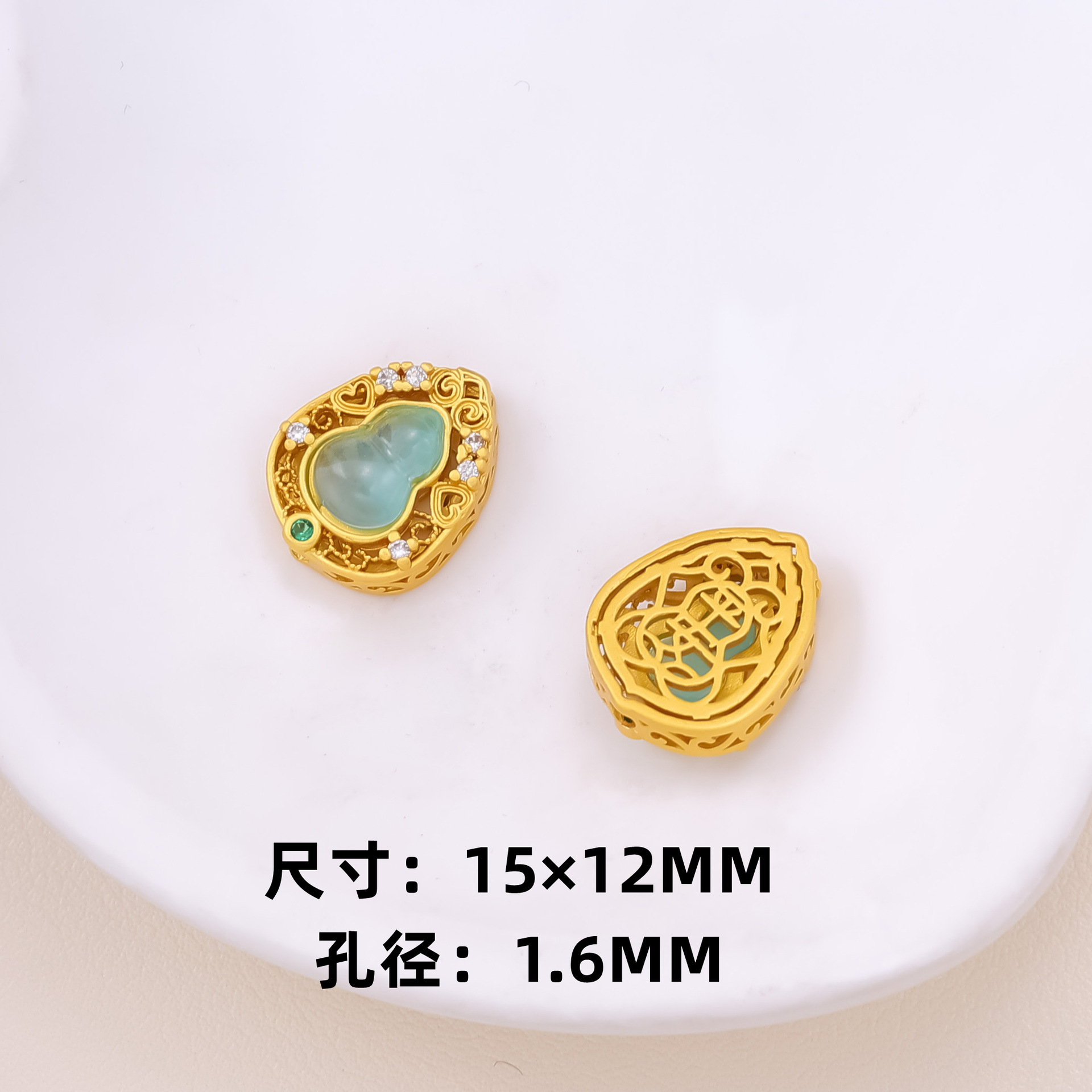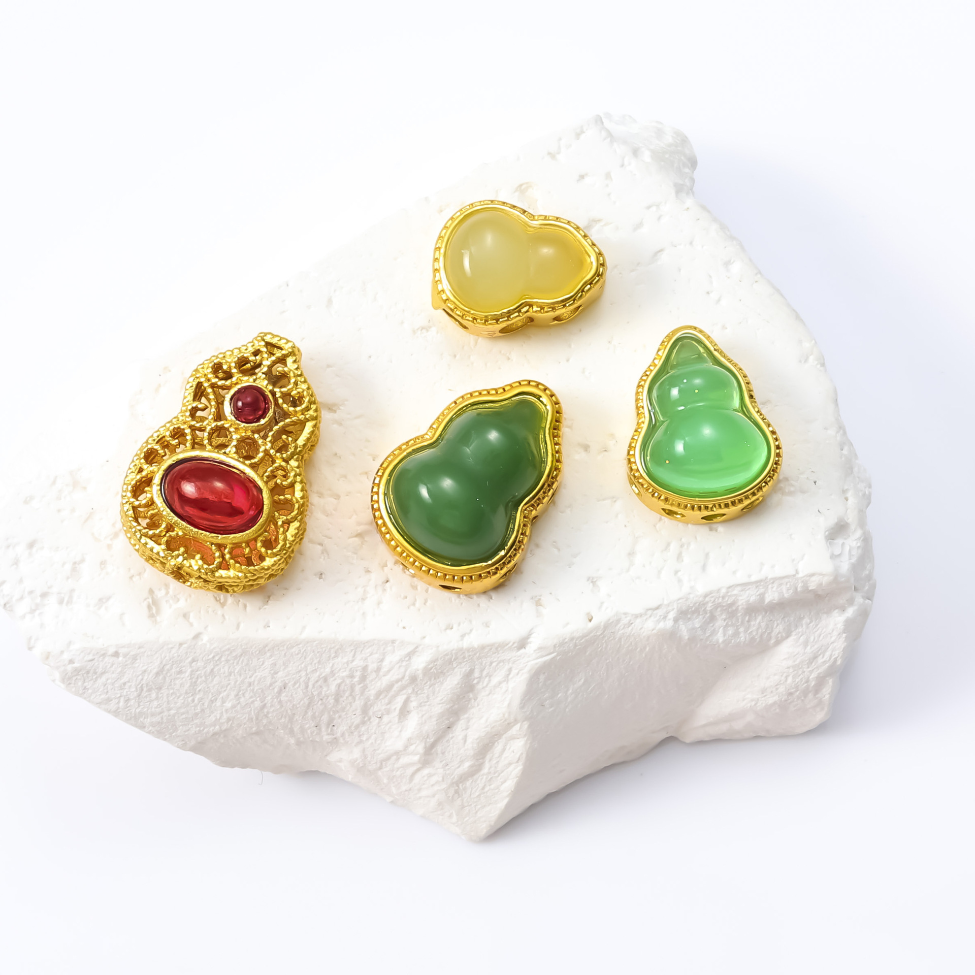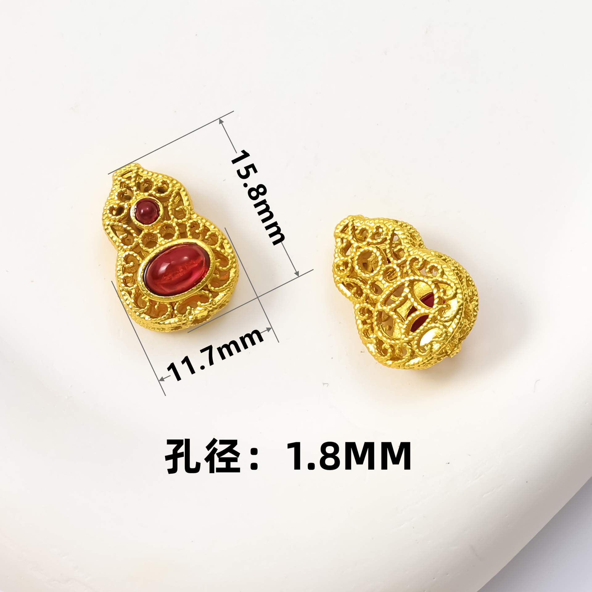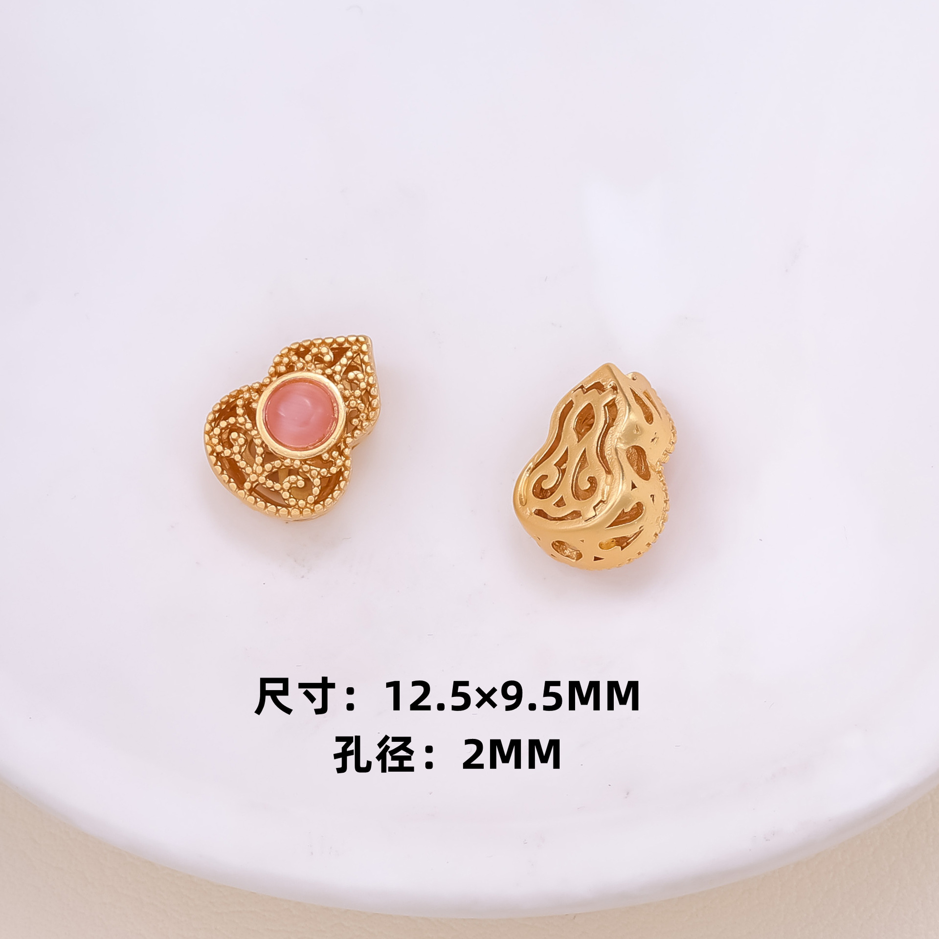 古法沙金葫芦隔珠戒面镶嵌玉石通孔饰品配饰diy手工手链项链配件