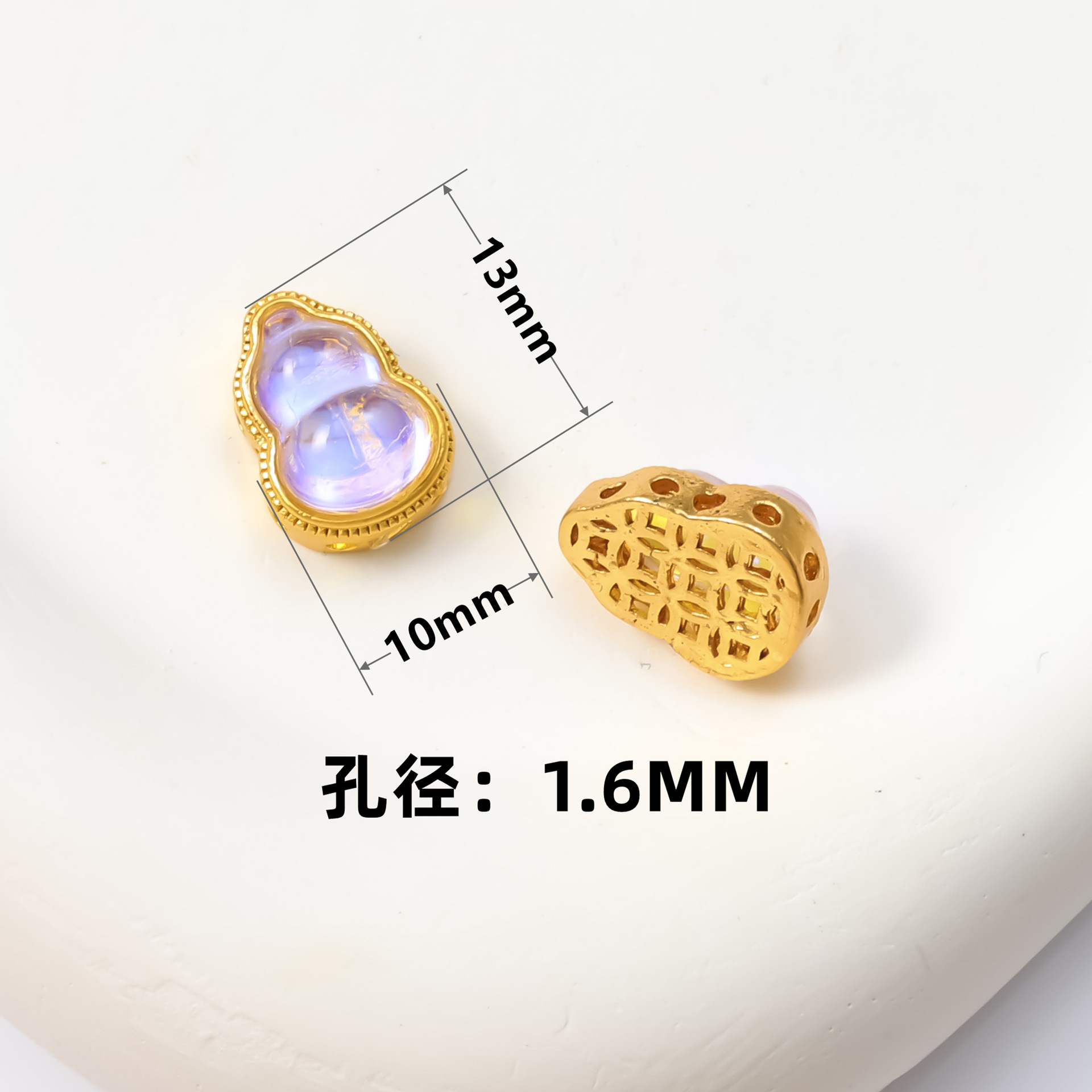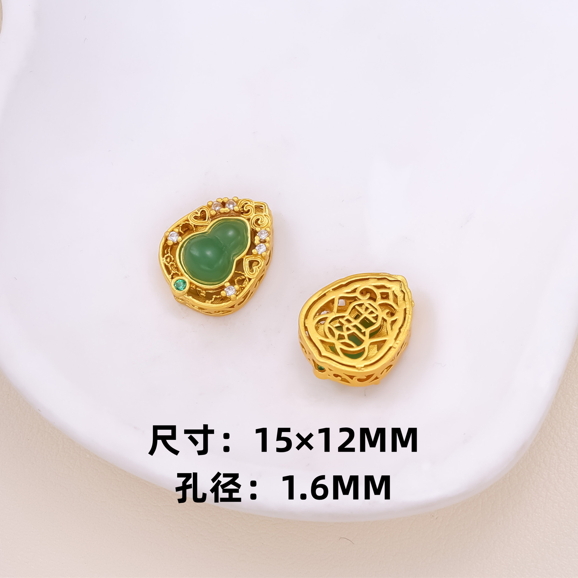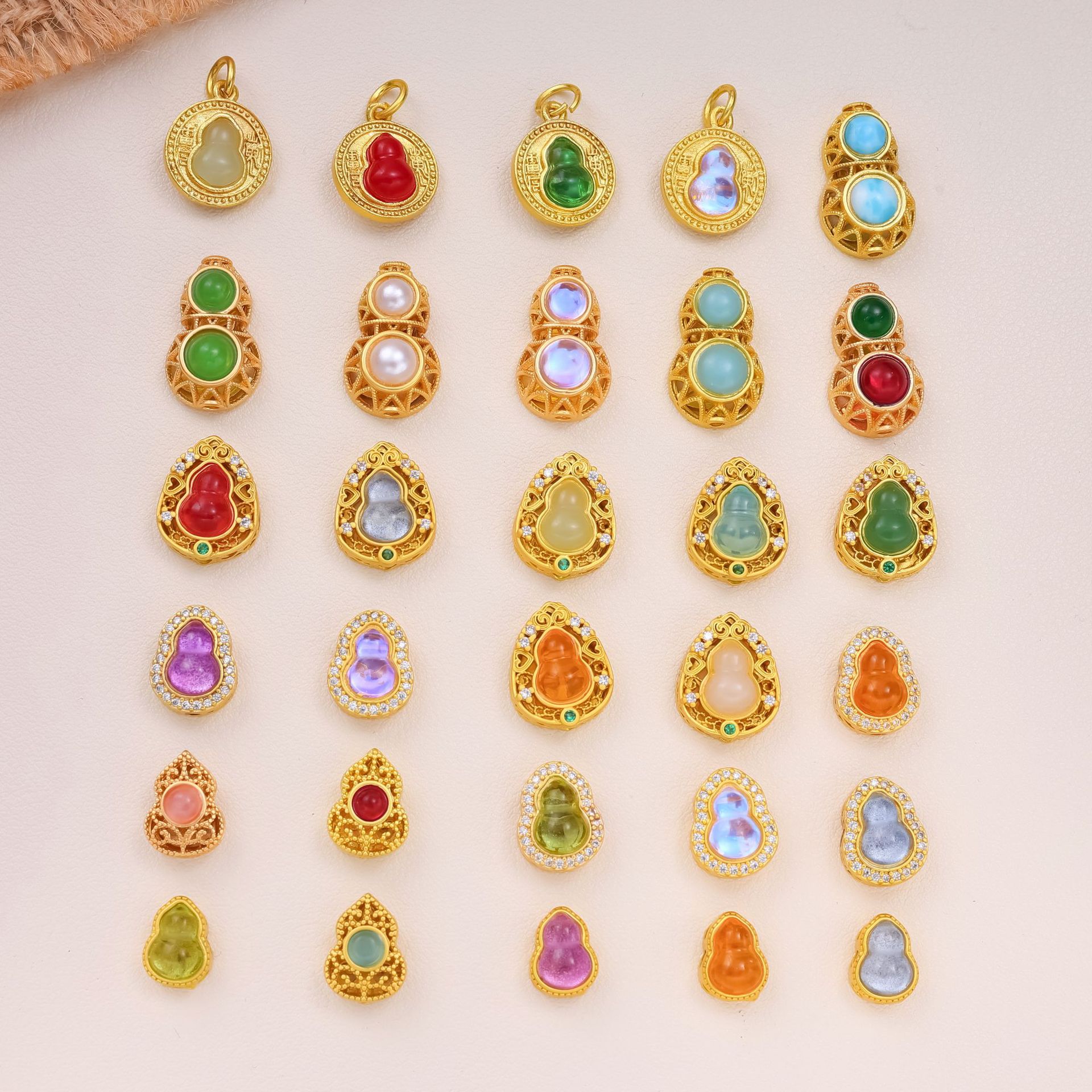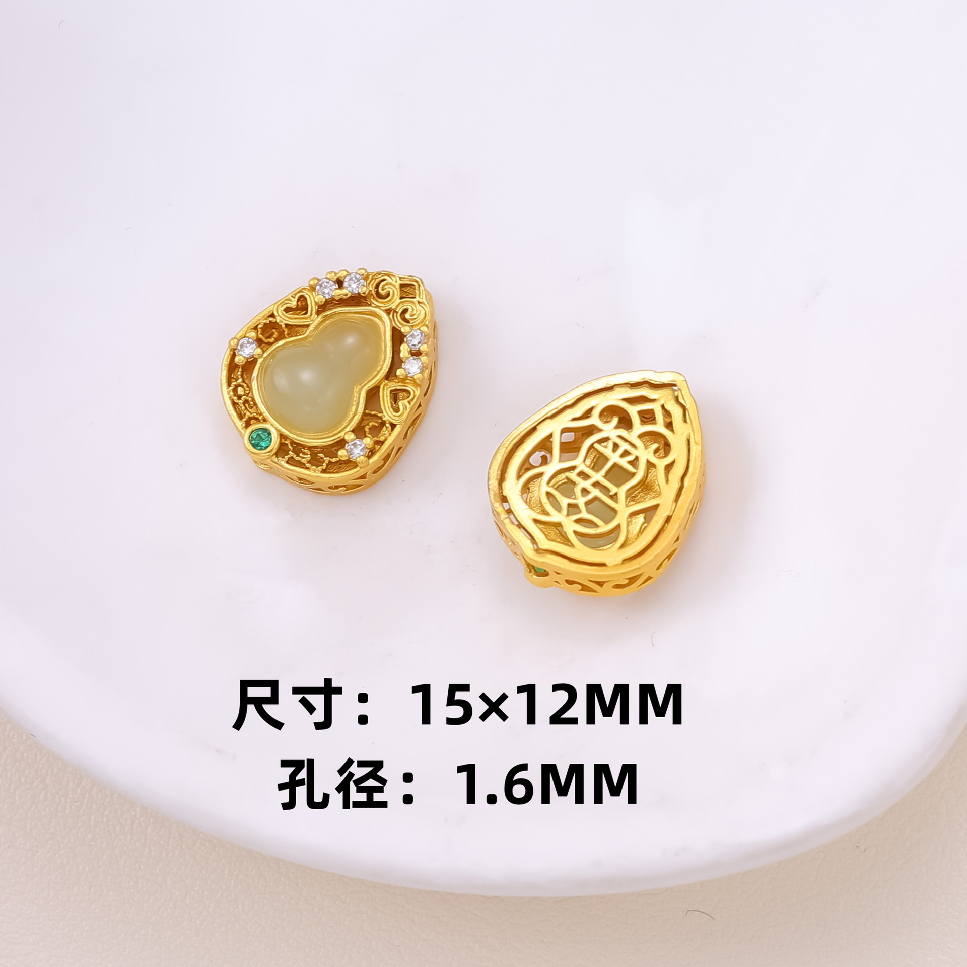 古法沙金葫芦隔珠戒面镶嵌玉石通孔饰品配饰diy手工手链项链配件
