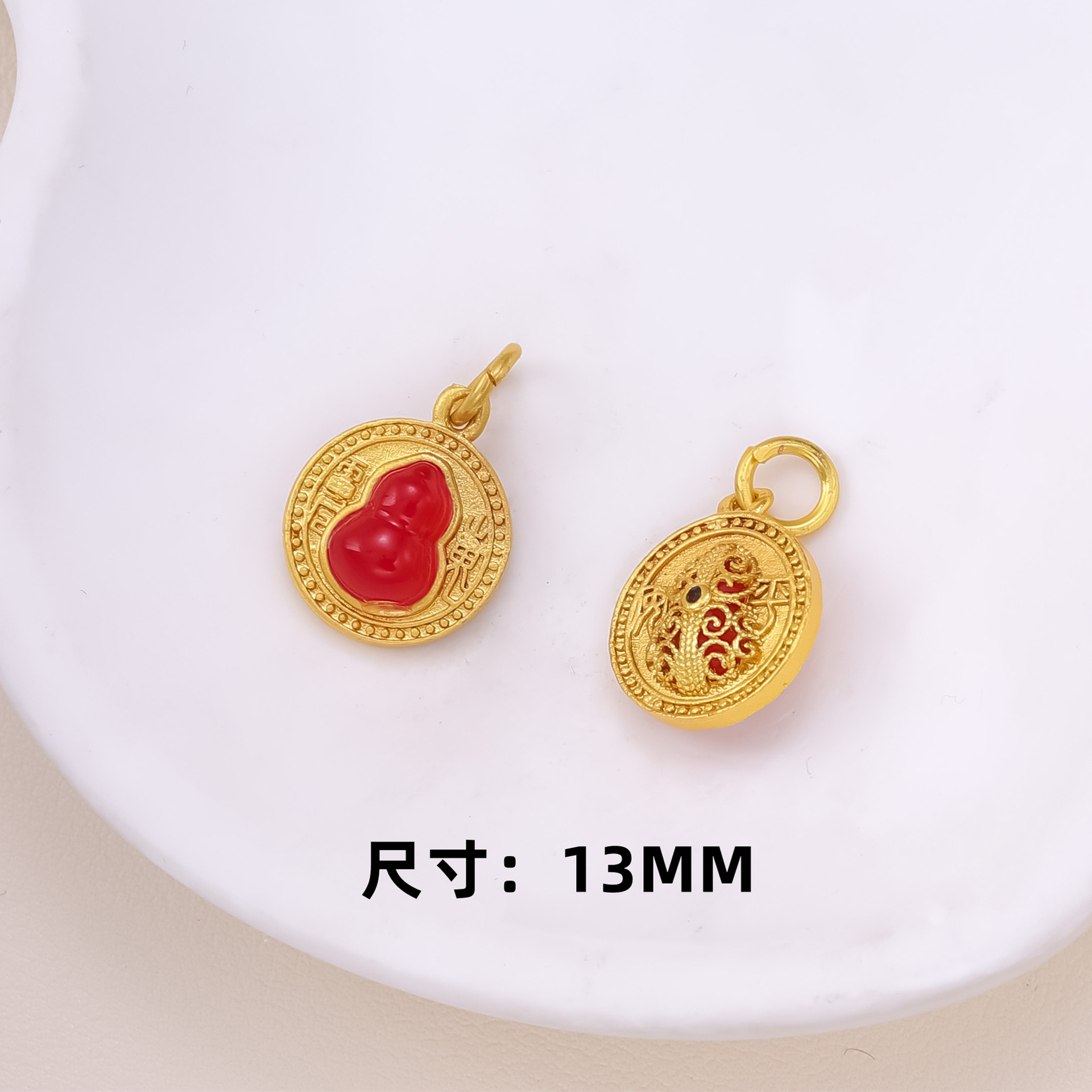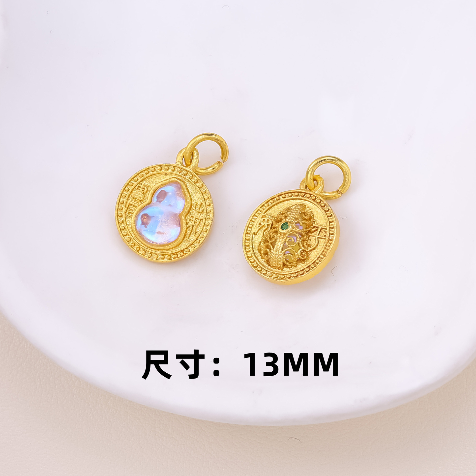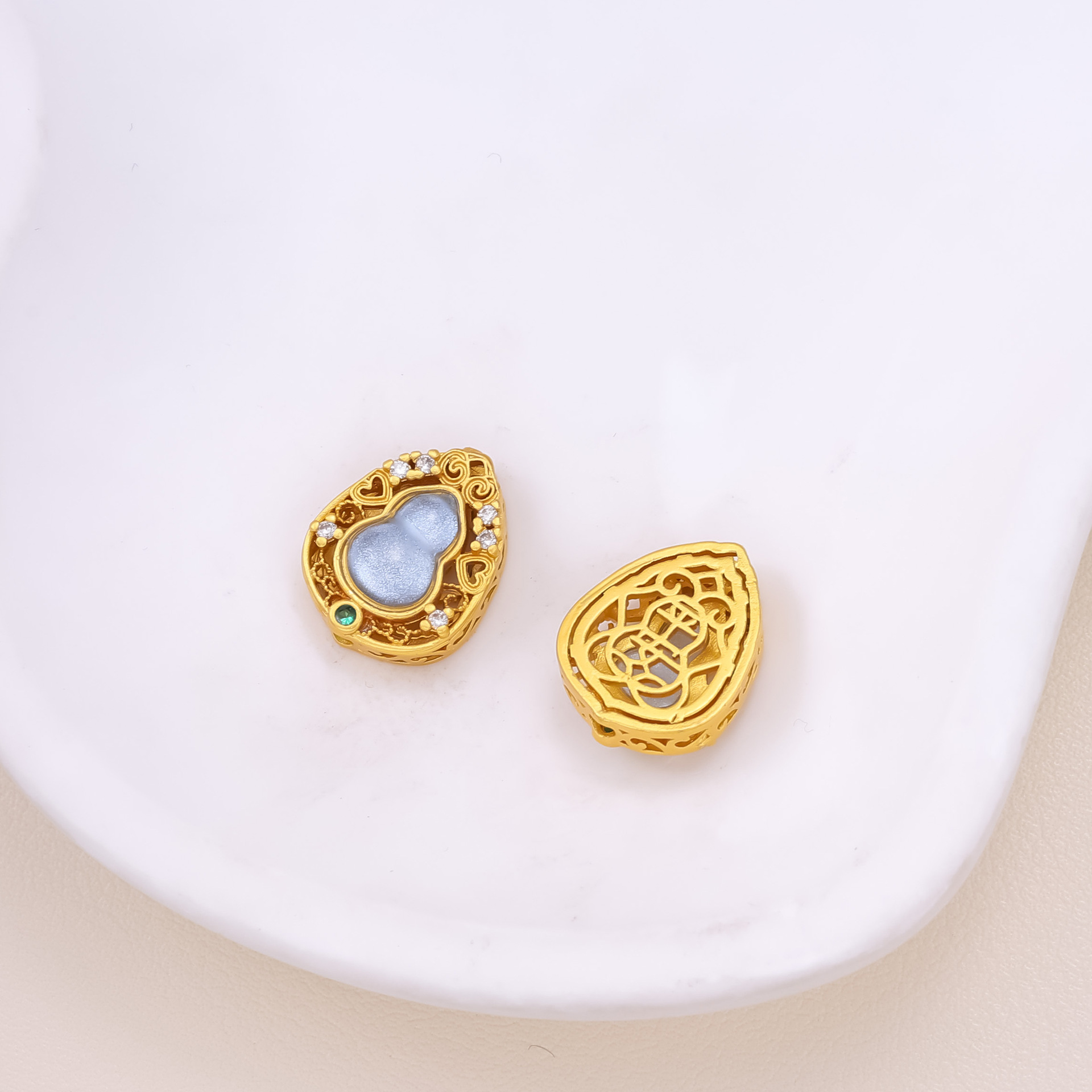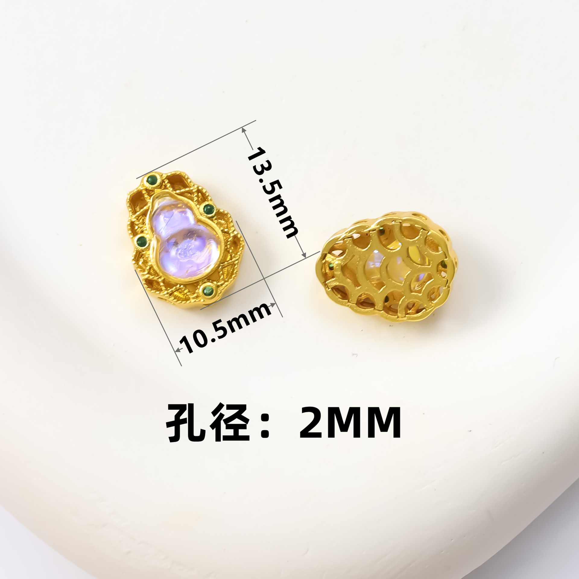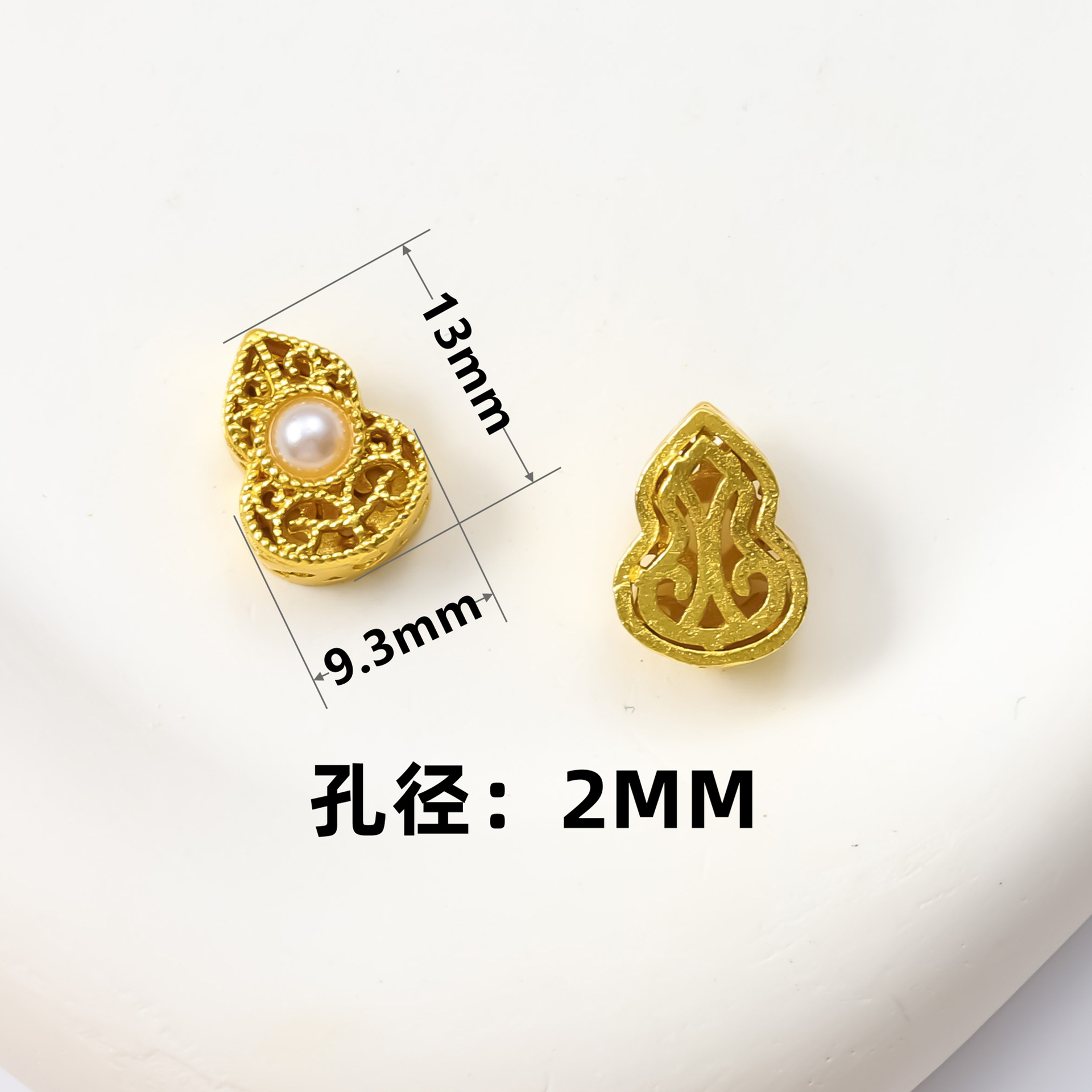 古法沙金葫芦隔珠戒面镶嵌玉石通孔饰品配饰diy手工手链项链配件