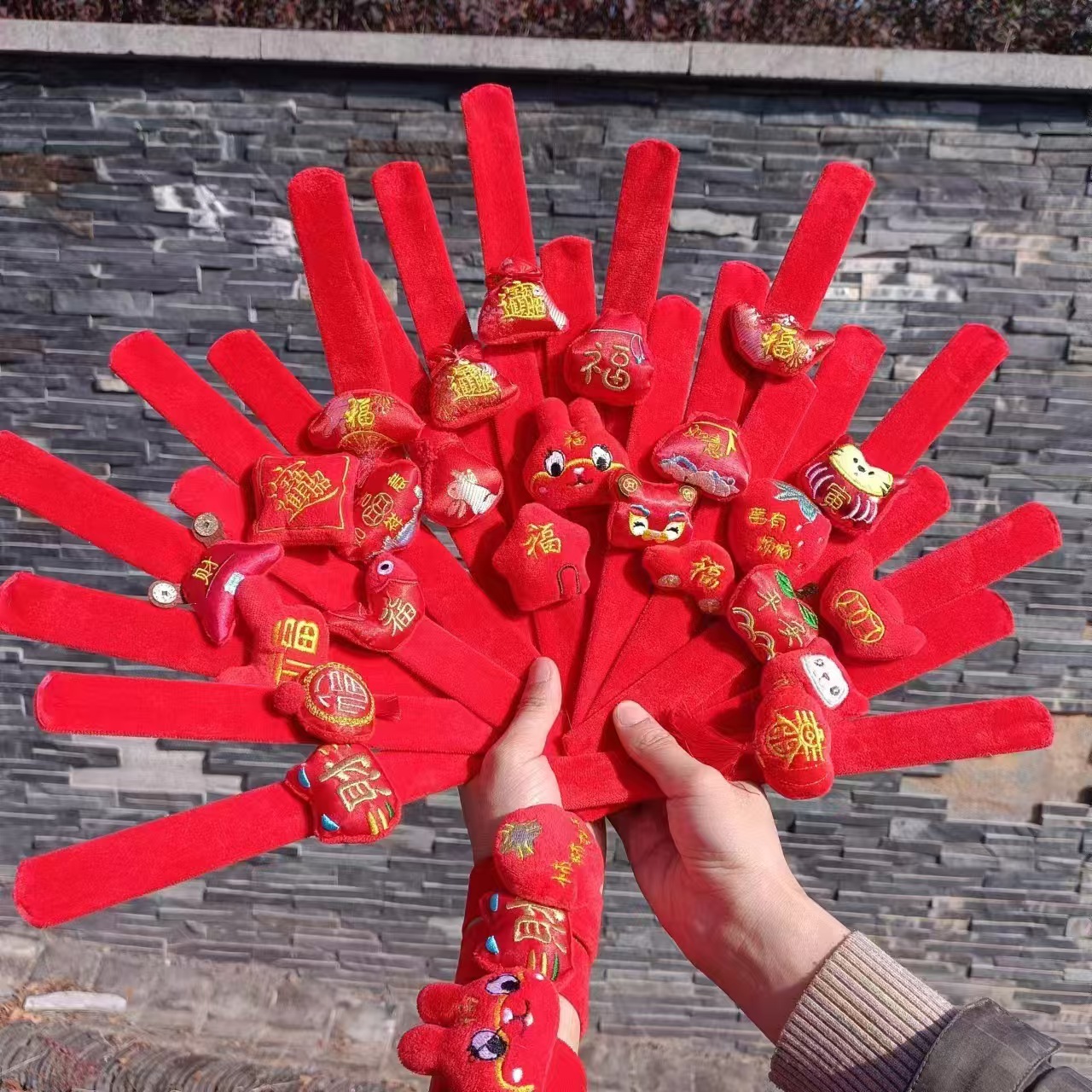 儿童啪啪圈卡通毛绒公仔情侣手环创意装饰品节日发饰婚庆小礼品